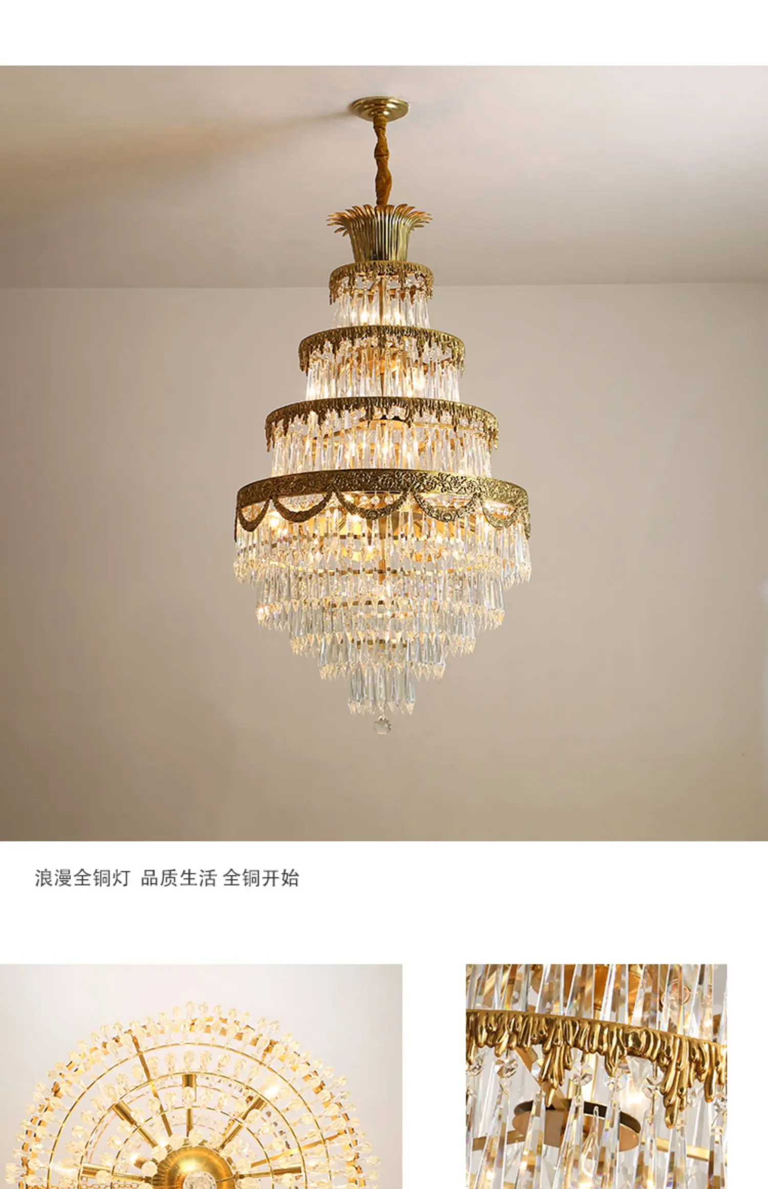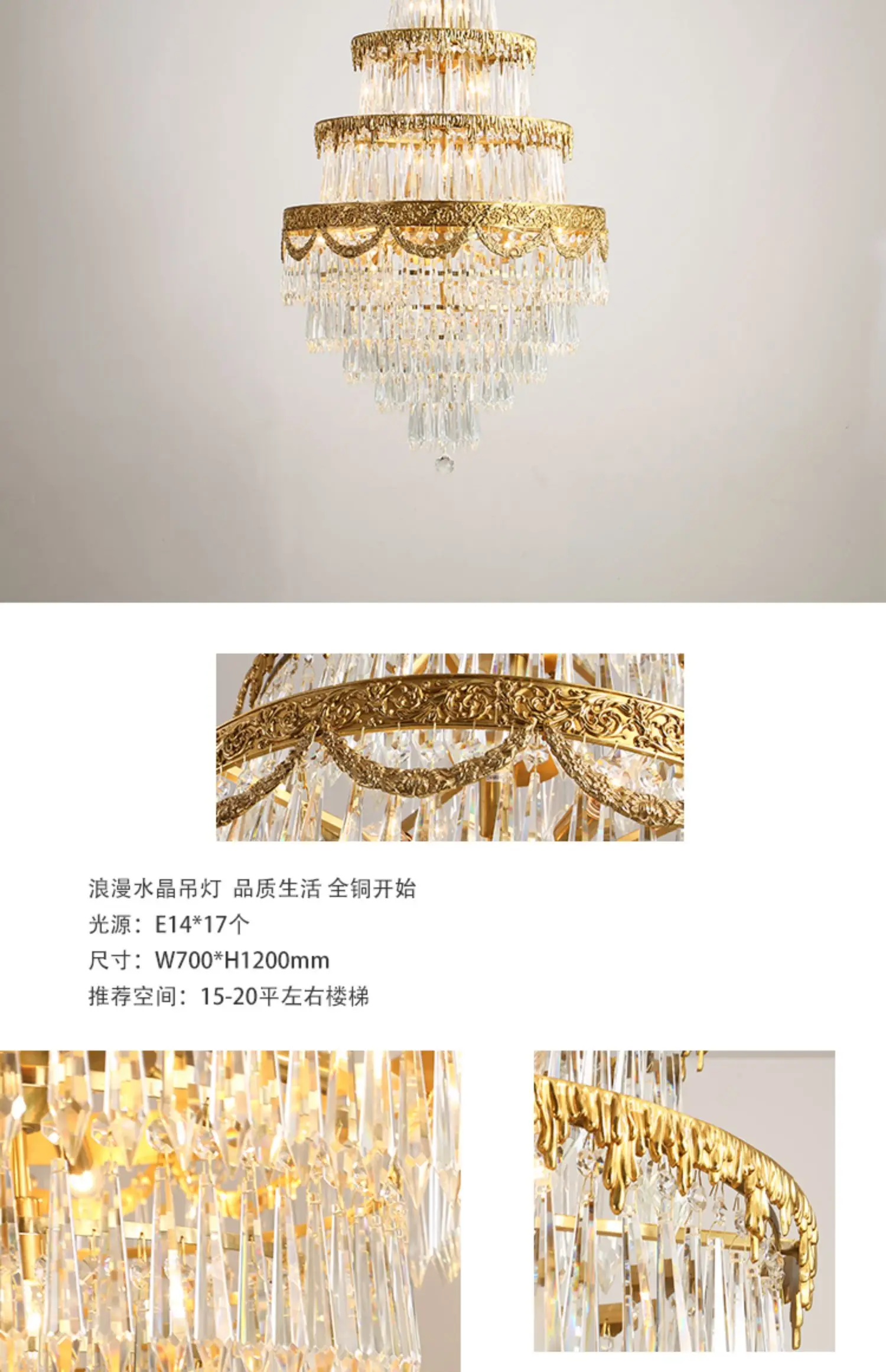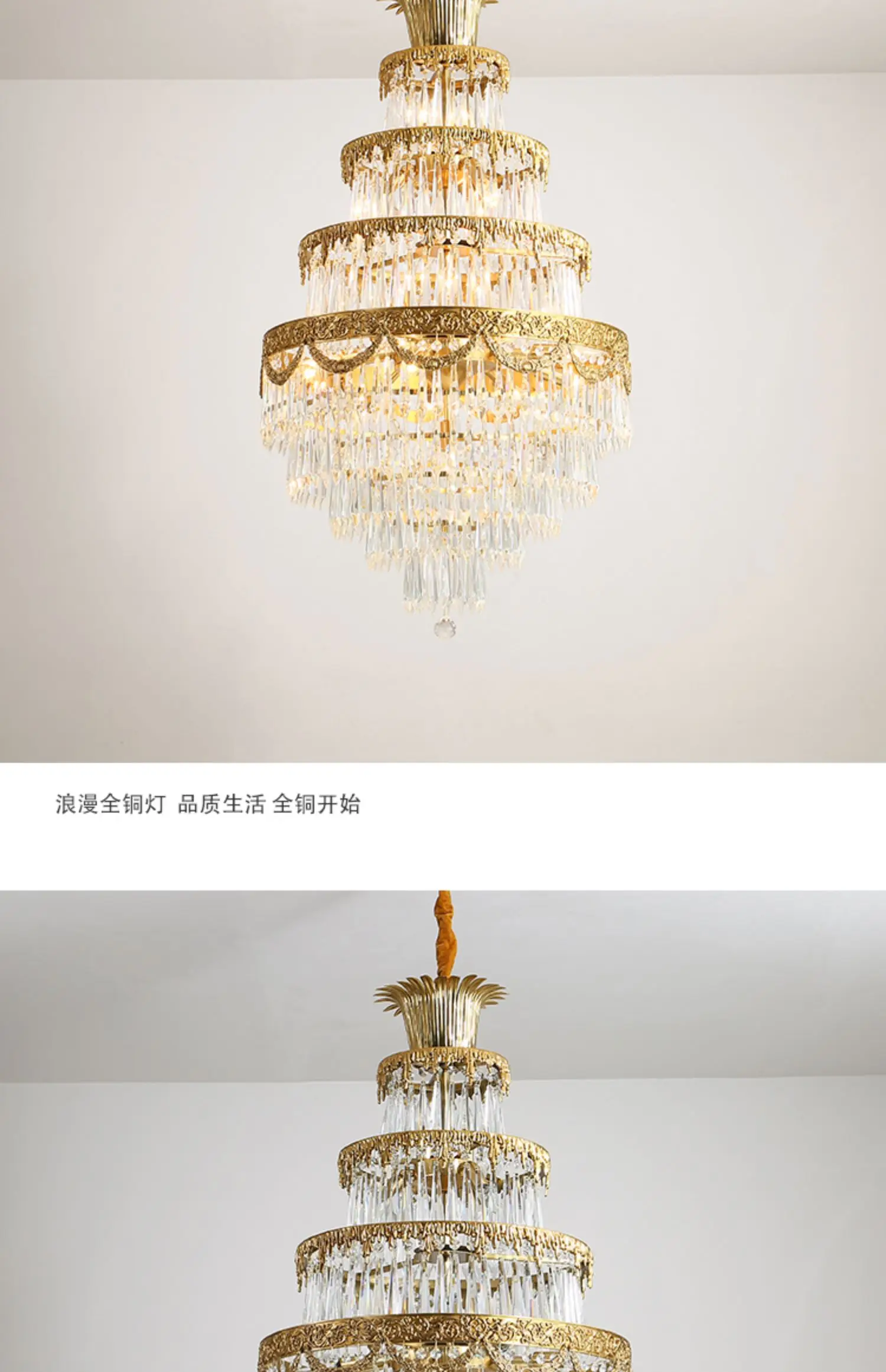 Copper Crystal Chandelier Staircase Duplex Building Luxury Creative High-End Villa Atmospheric Lamps