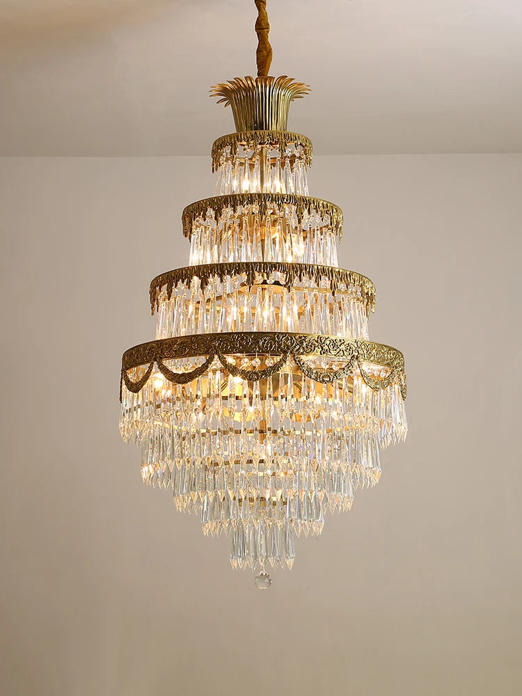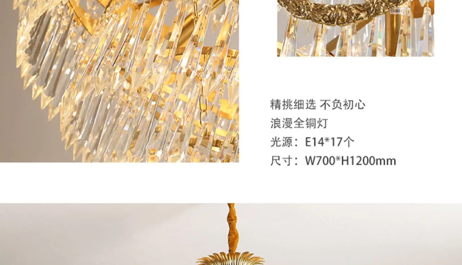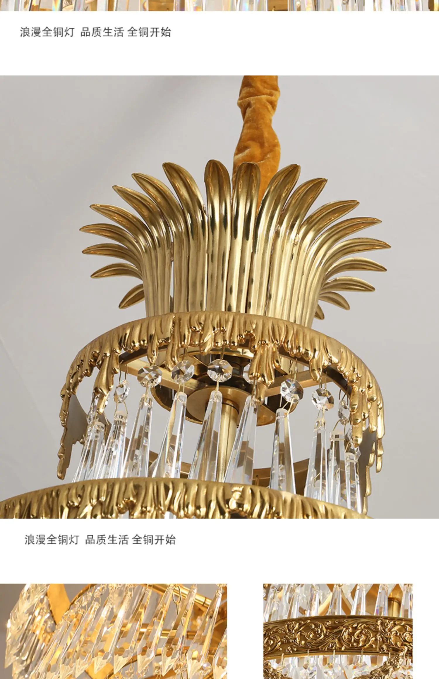 Copper Crystal Chandelier Staircase Duplex Building Luxury Creative High-End Villa Atmospheric Lamps