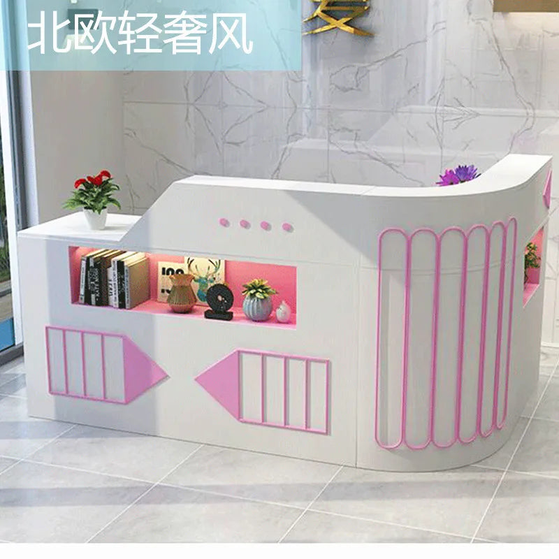 Costume store cashier simple modern milk tea shop beauty salon small shop light luxury counter bar company front desk