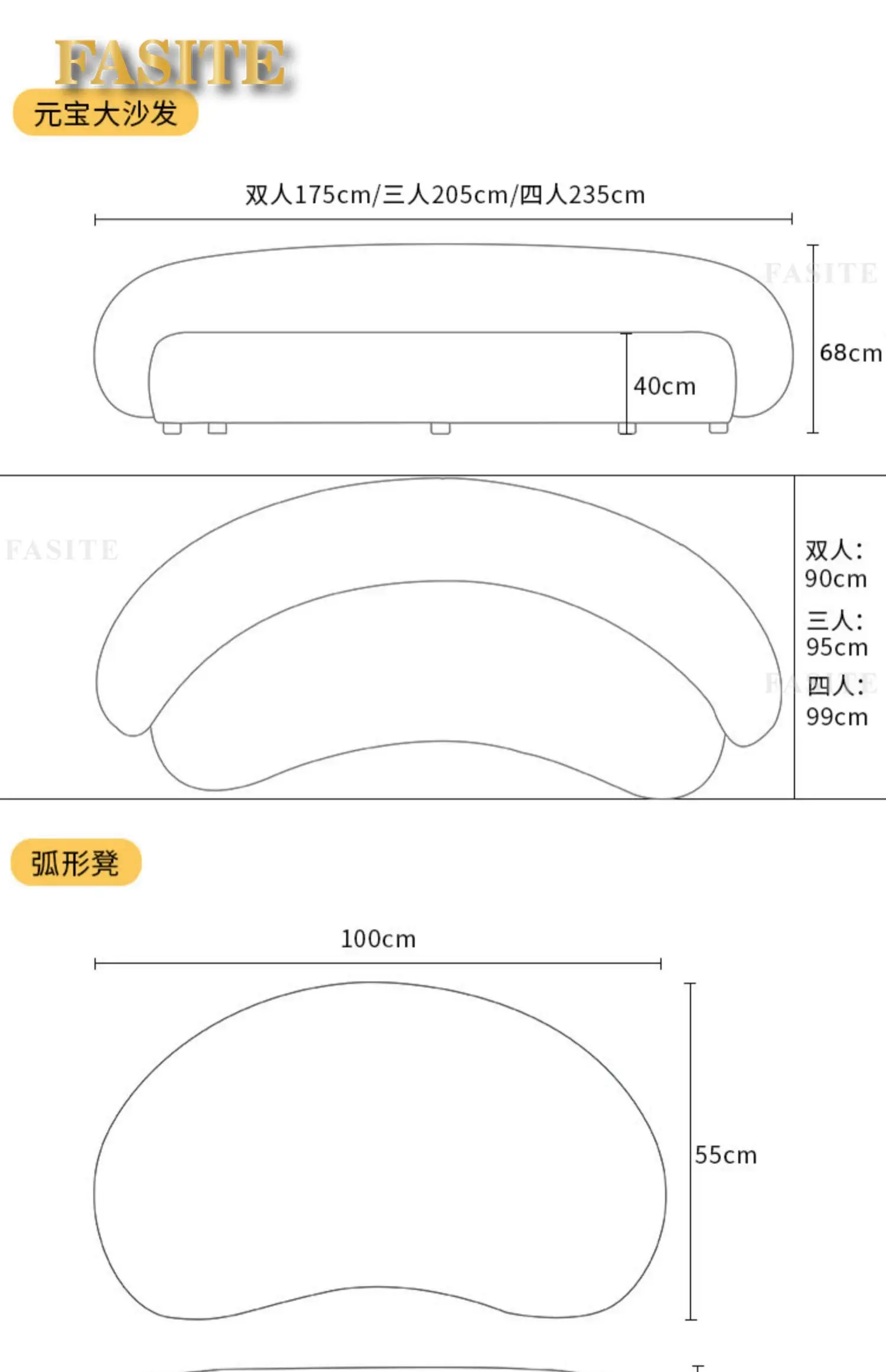 Cream style beauty salon sofa living room reception small apartment simple Nordic clothing store curved sofa