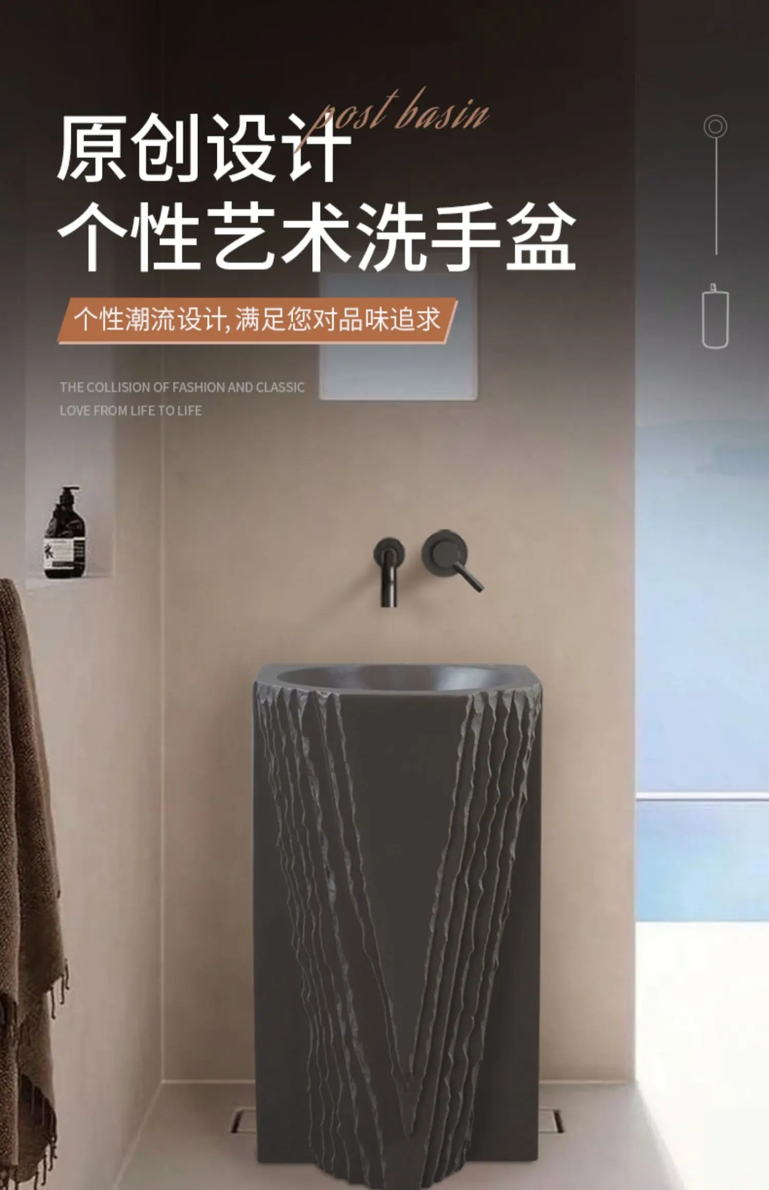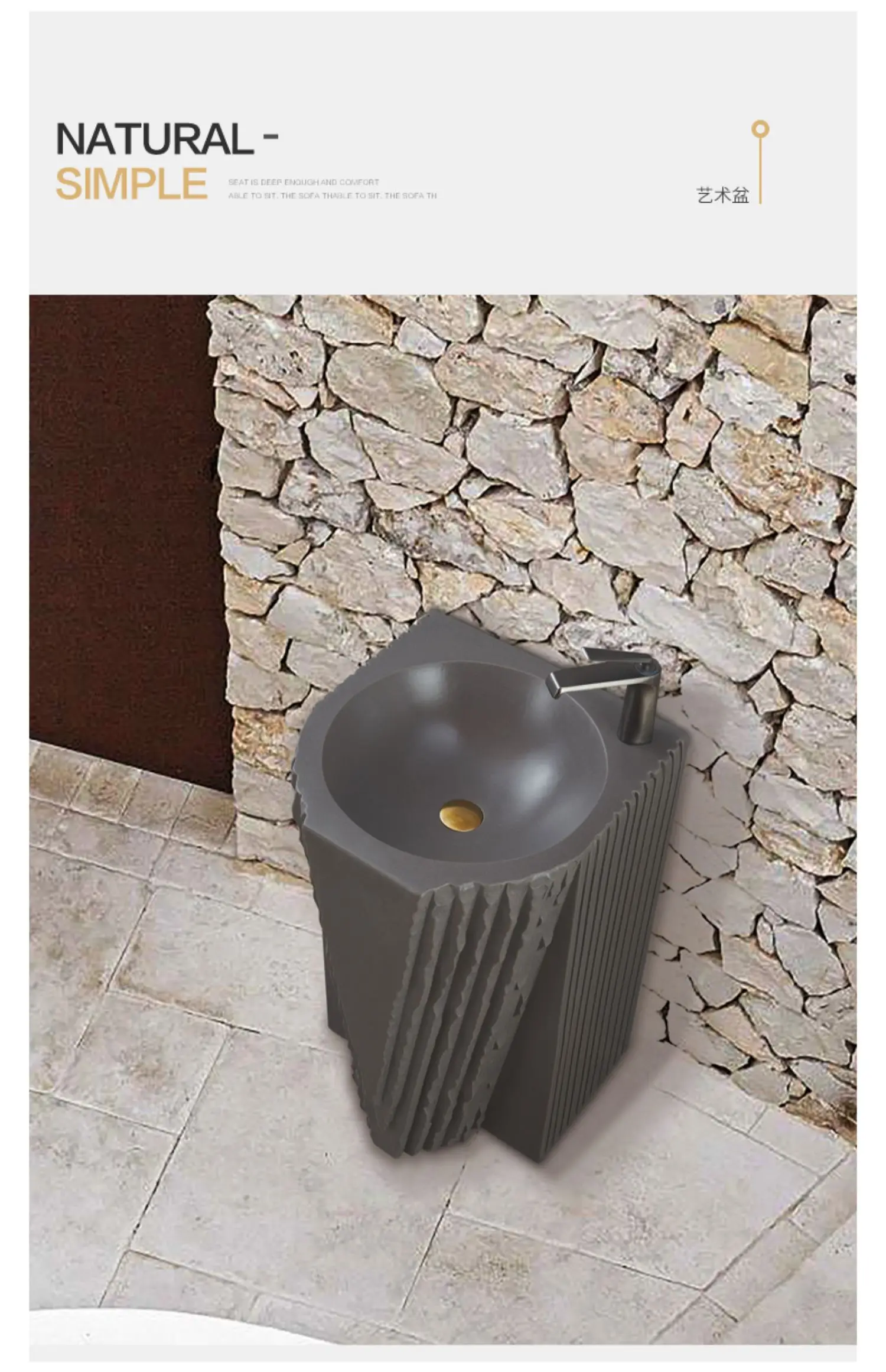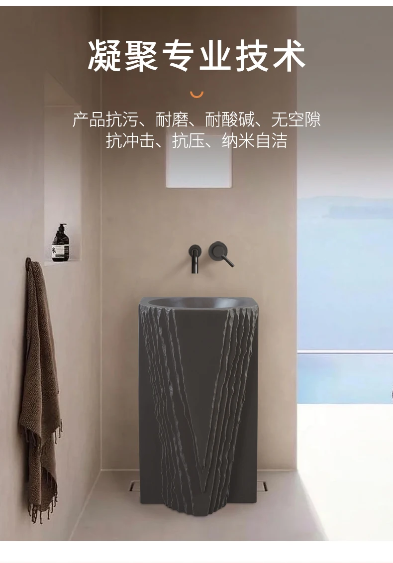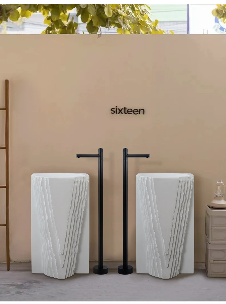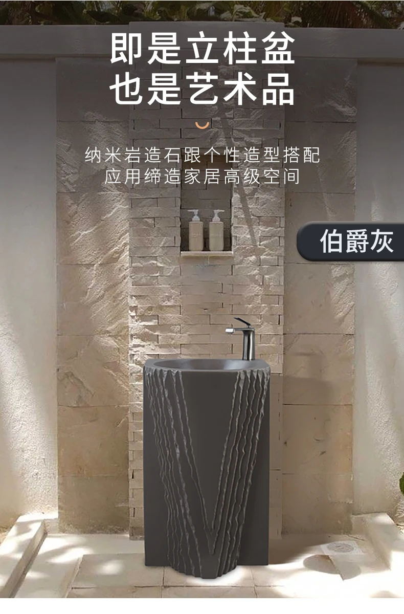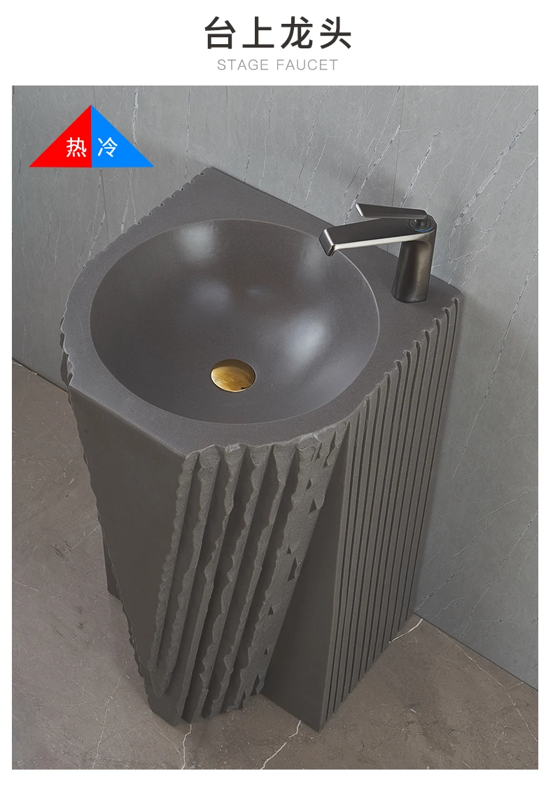 Creative column washbasin outdoor courtyard imitation stone shaped integrated vertical floor standing washbasin