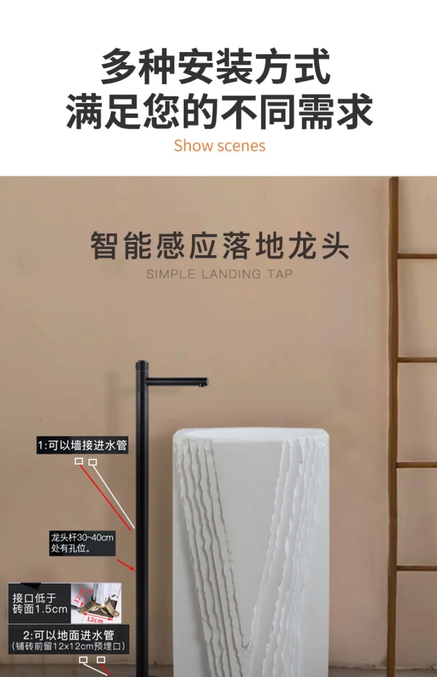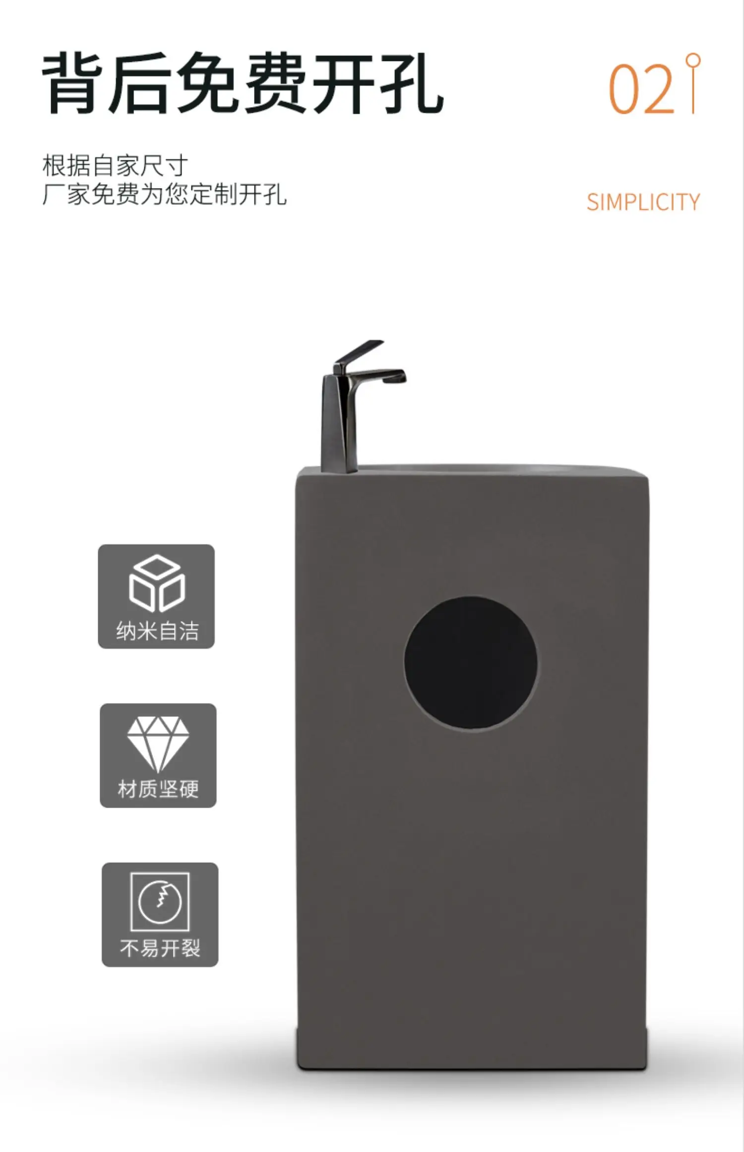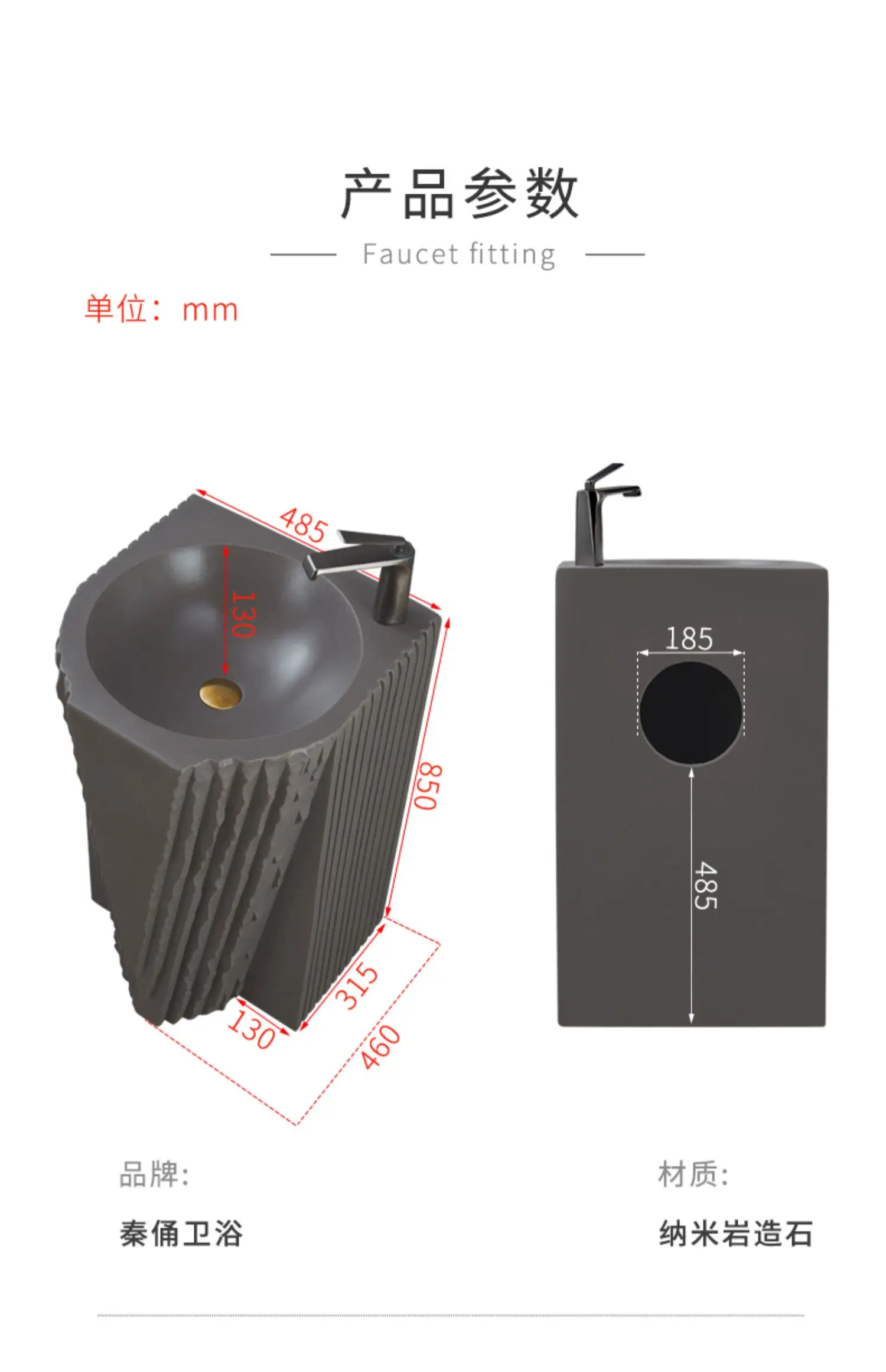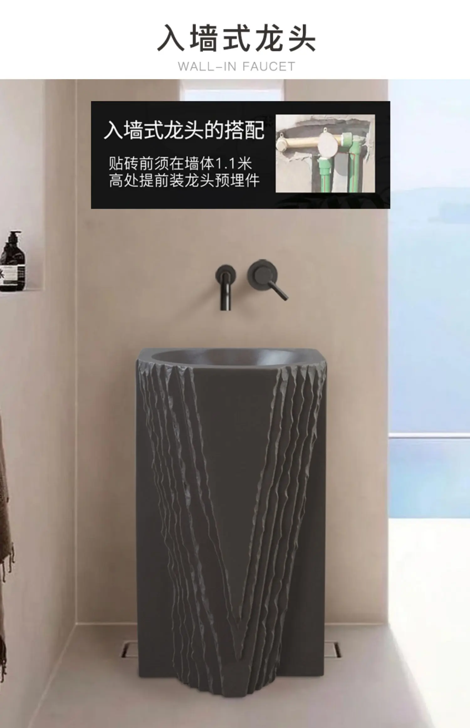 Creative column washbasin outdoor courtyard imitation stone shaped integrated vertical floor standing washbasin