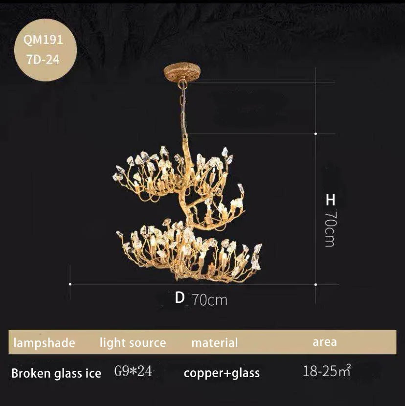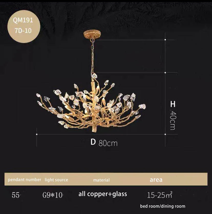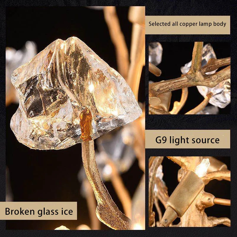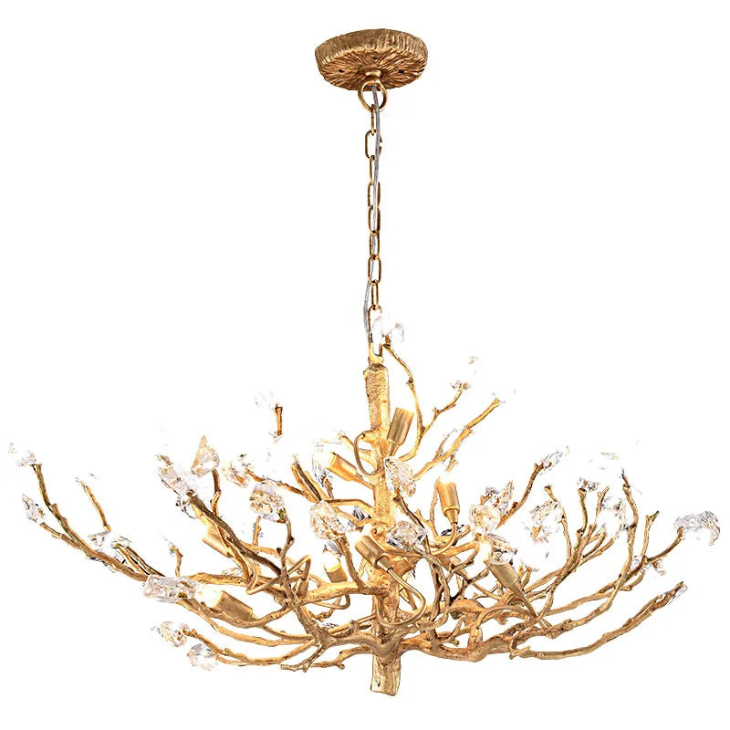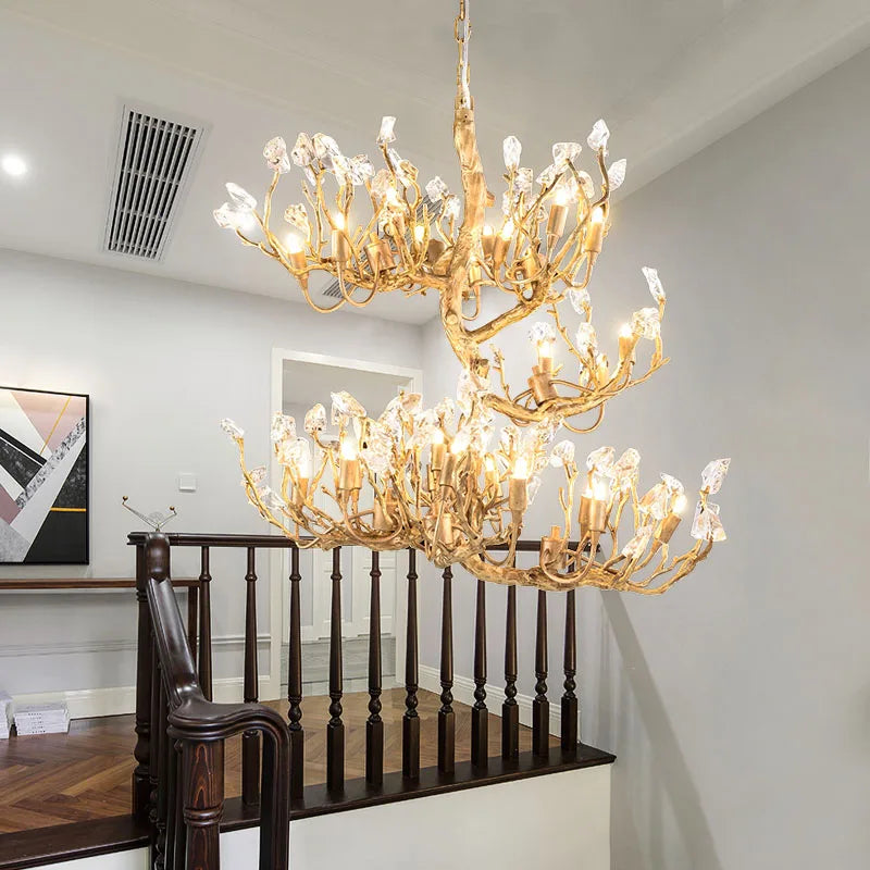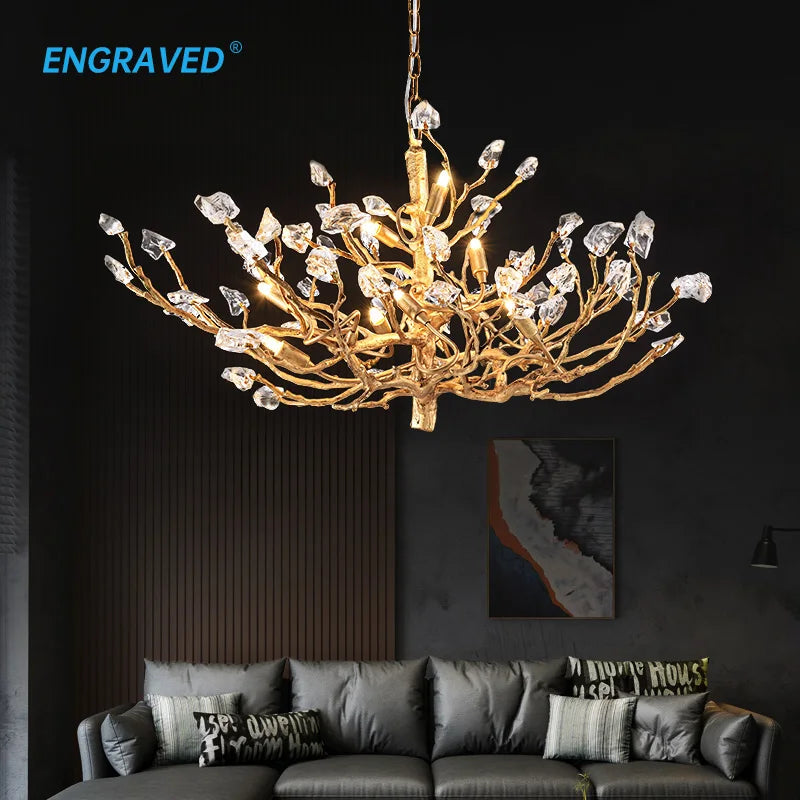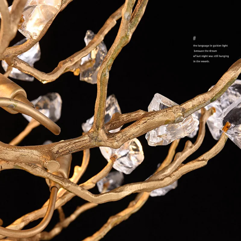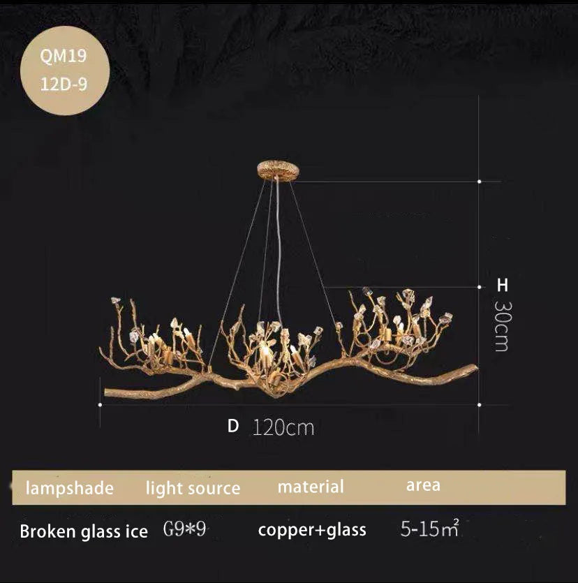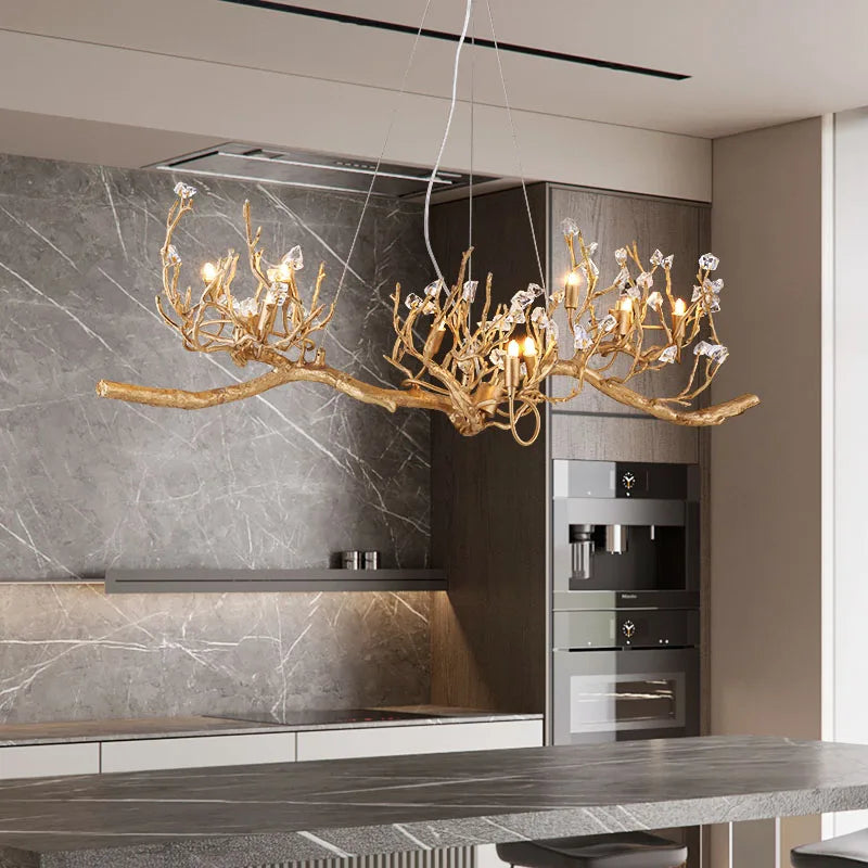 Creative Copper Tree Branches Chandelier for Living Room Bedroom Villa Hall Decorative Lighting Fixture Glass Kitchen Island
