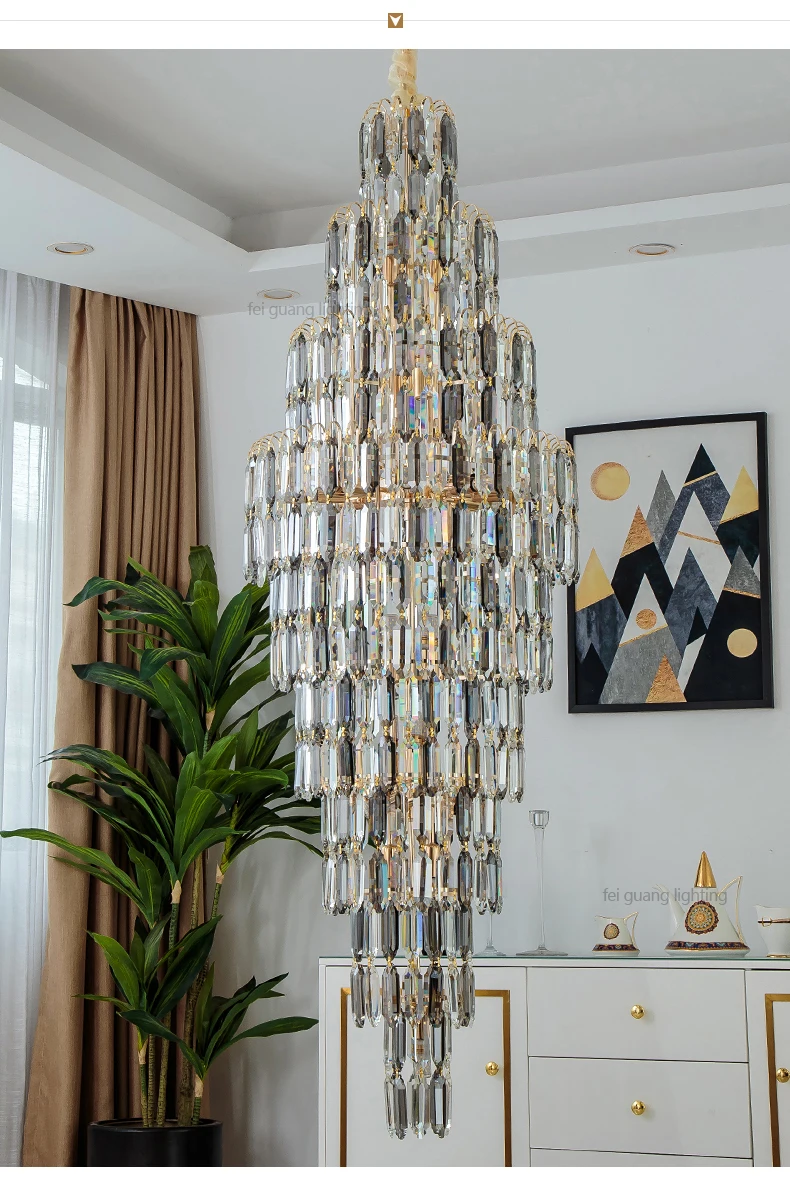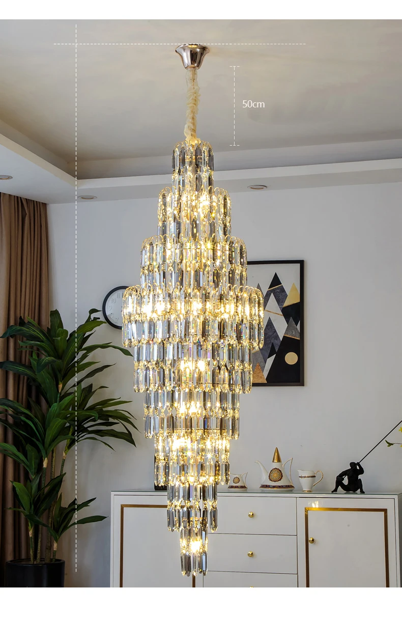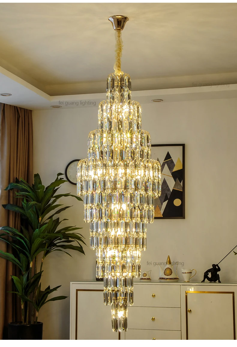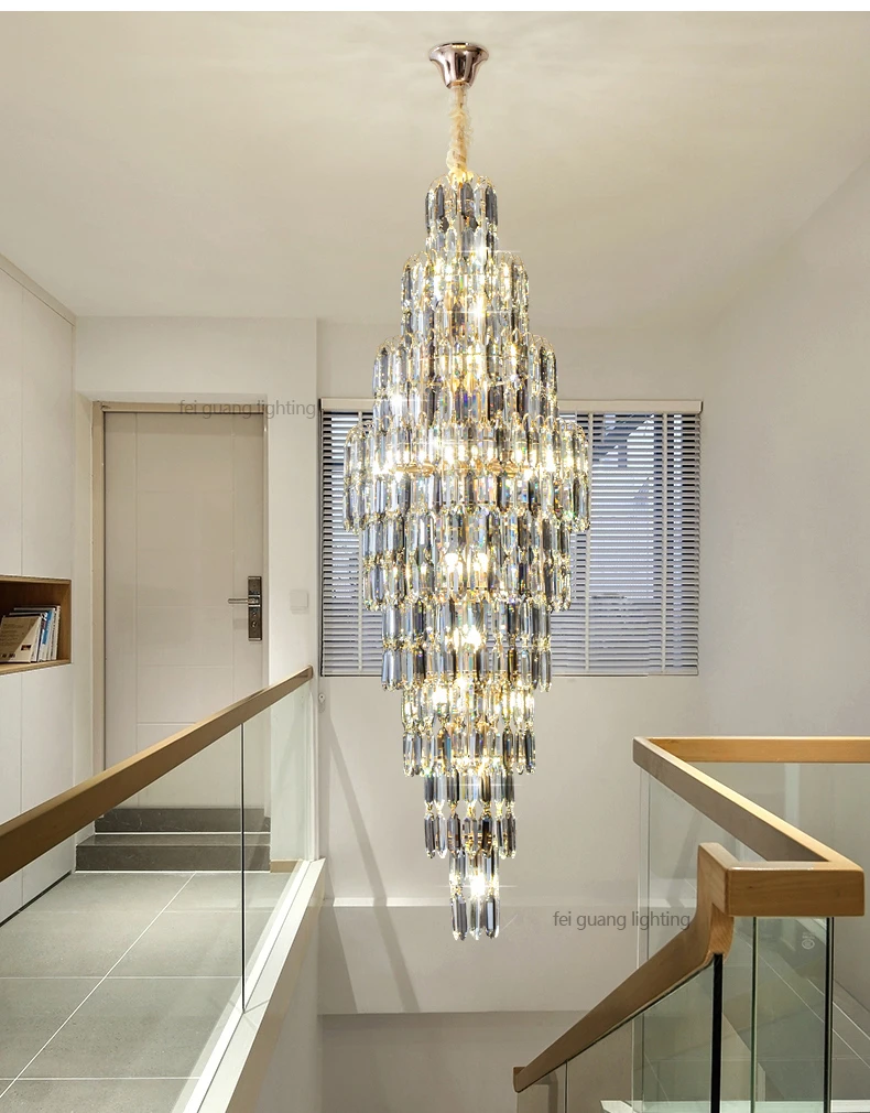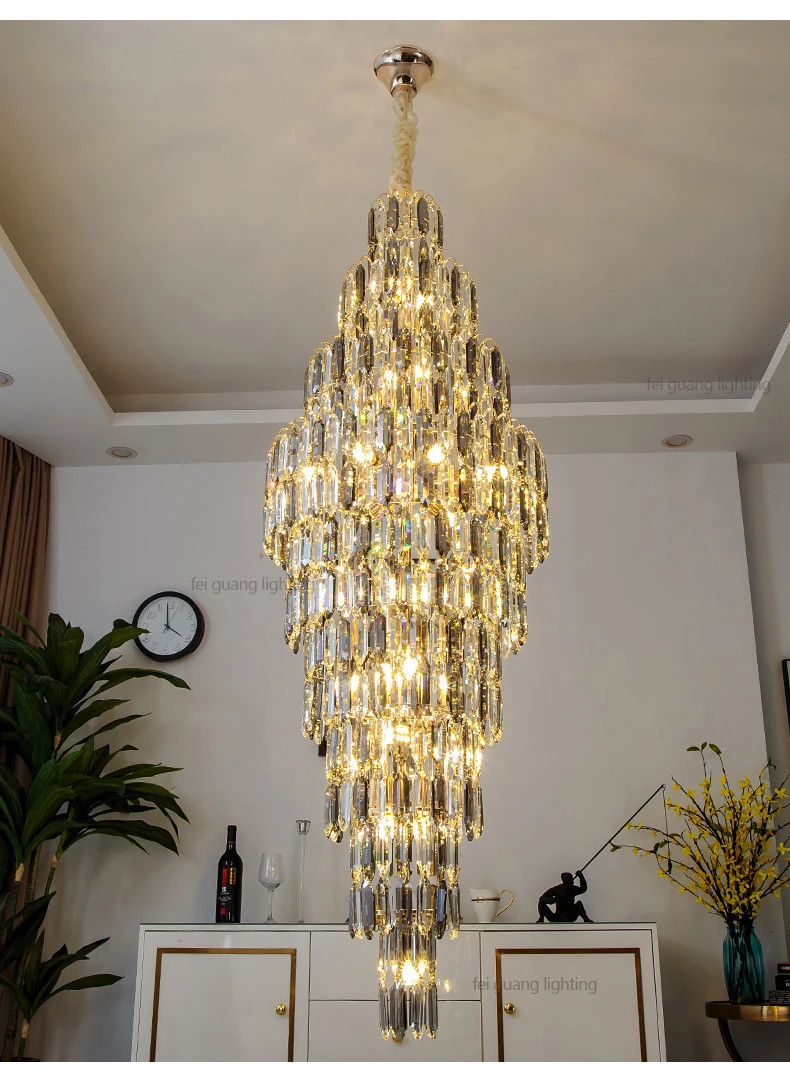 Crystal Chandelier Villa Living Room Hotel Lobby Large Fixtures Duplex Building Simple Revolving Staircase Long Hanging Lamps