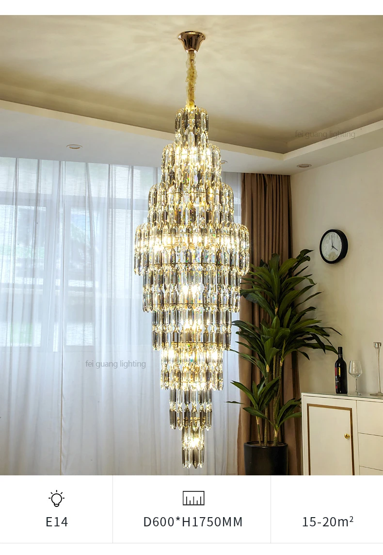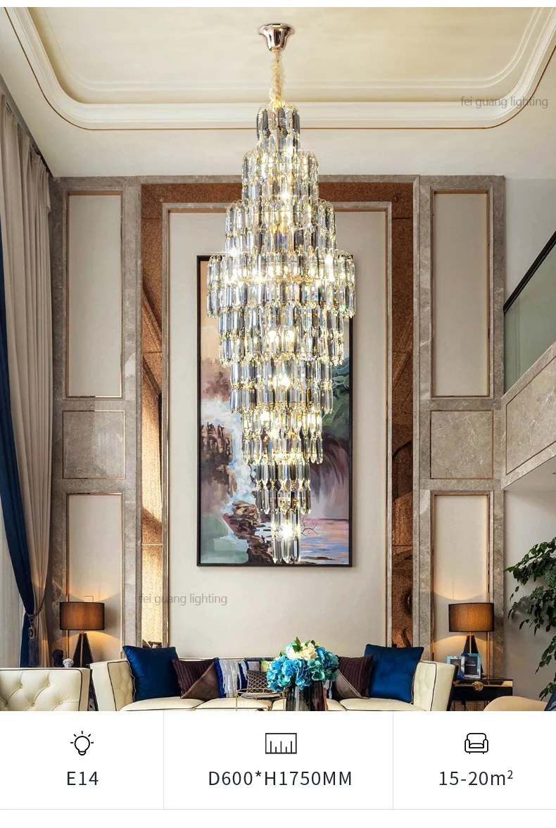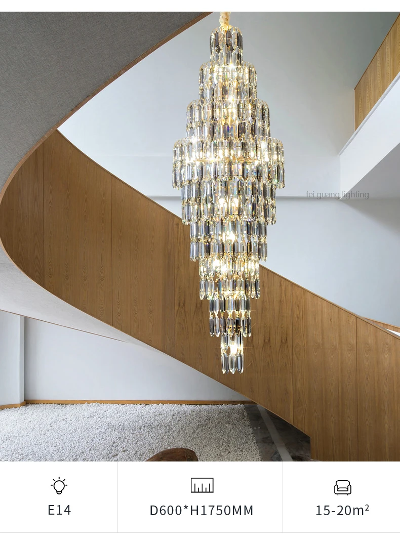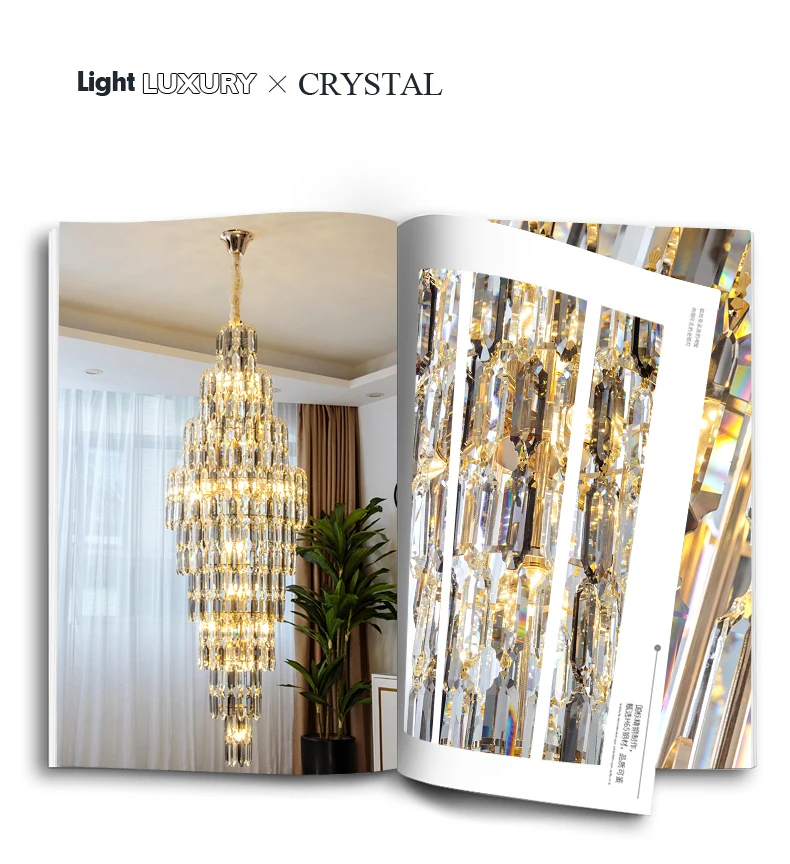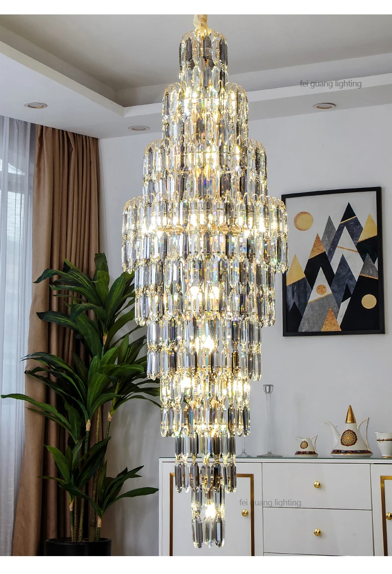 Crystal Chandelier Villa Living Room Hotel Lobby Large Fixtures Duplex Building Simple Revolving Staircase Long Hanging Lamps