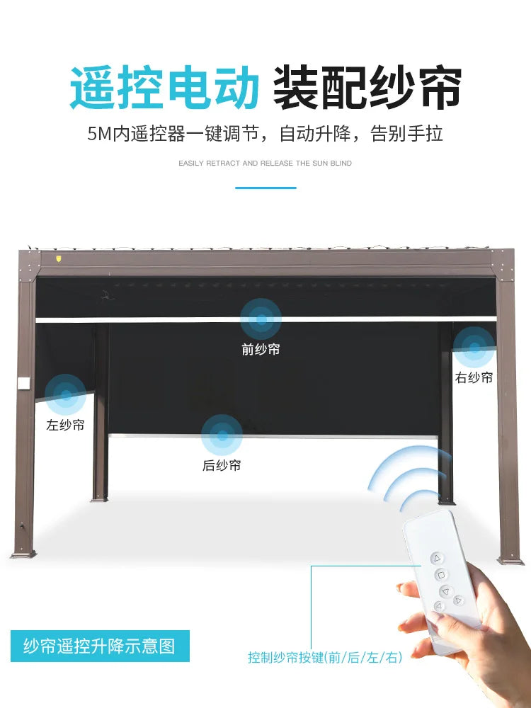 custom size 3m,4m,5m,6m, gazebo outdoor automatic canopy patio garden sun room aluminum alloy electric sunshade