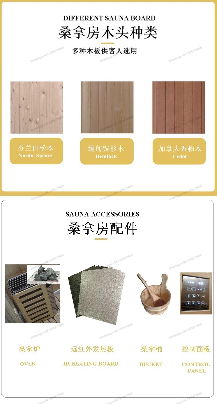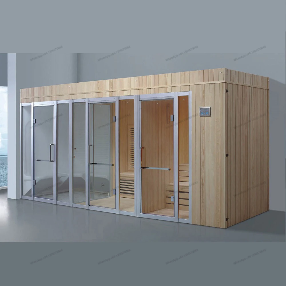 Customization of a multi person wooden dry wet steam beauty salon, sauna, sweat steam integrated room in a villa hotel