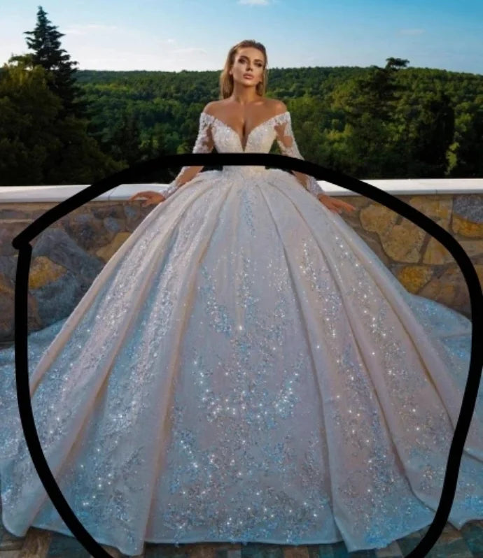 Women Luxury Beaded Bridal Mermaid Wedding Dress Floral Ruffles Sparkly Illusion
