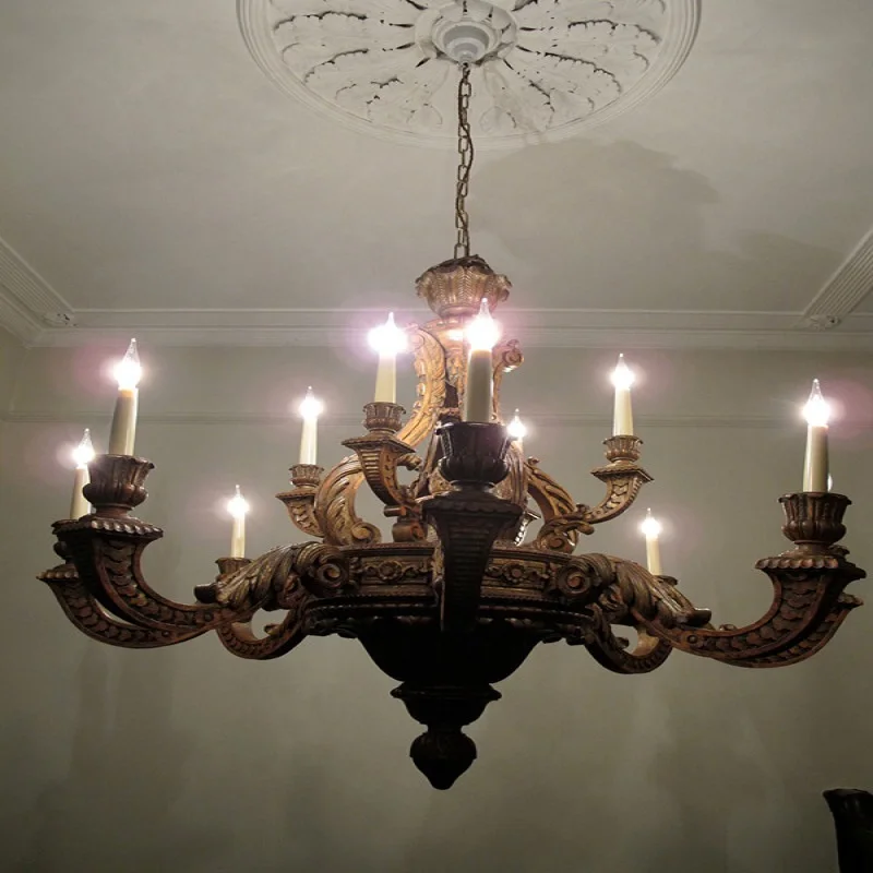 Customized American retro wood carving wooden chandelier villa living room luxury atmosphere Nordic personalized creativity