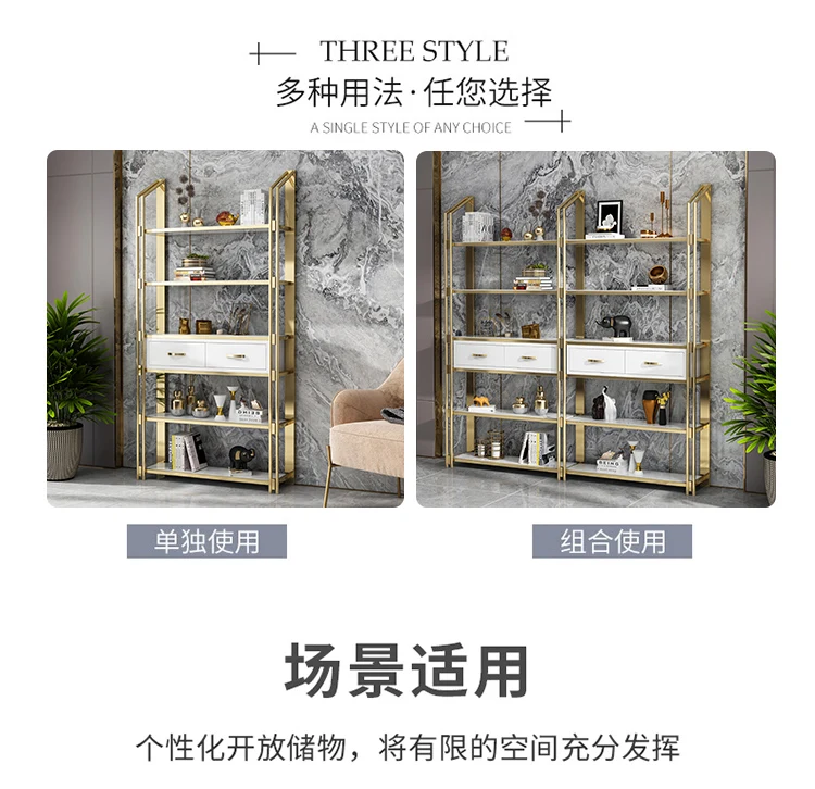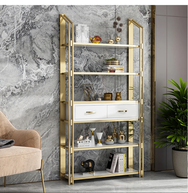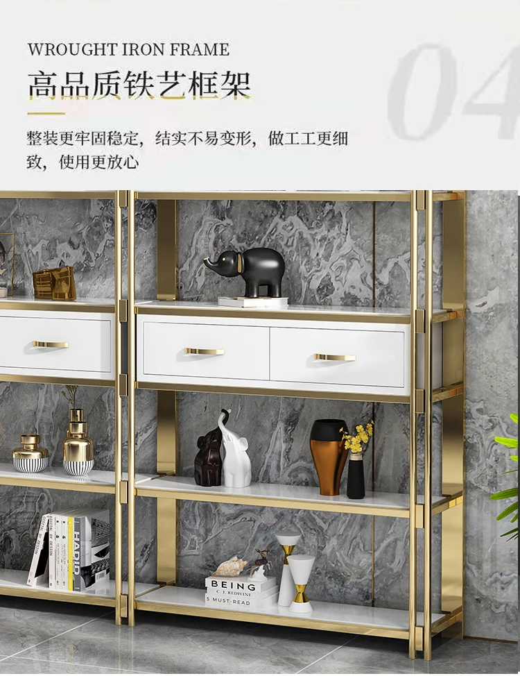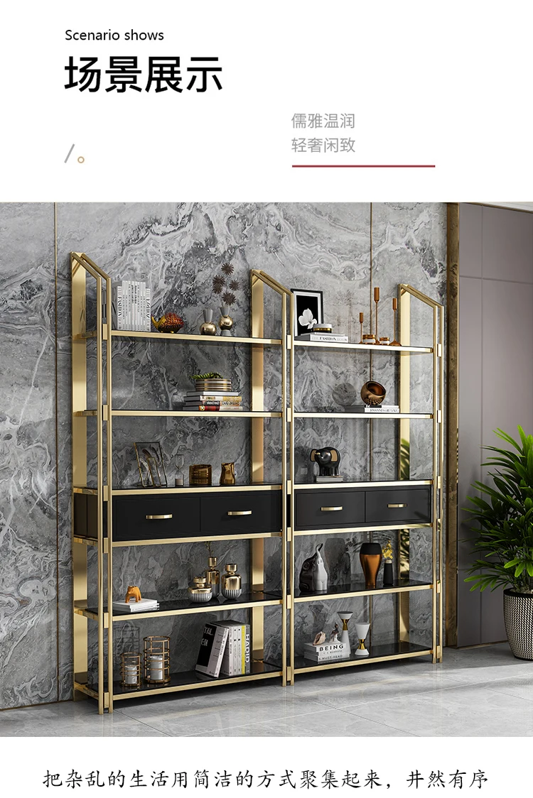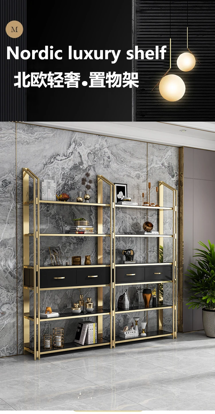 Customized Modern Shelf Affordable Luxury Style Metal Display Shelf Bookshelf Boycase Floor Nordic Display Shelf Living Room
