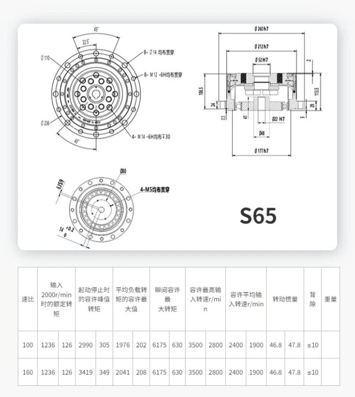 Customized reducer industrial collaboration humanoid robotic arm joint transmission cup type high-precision automation S65