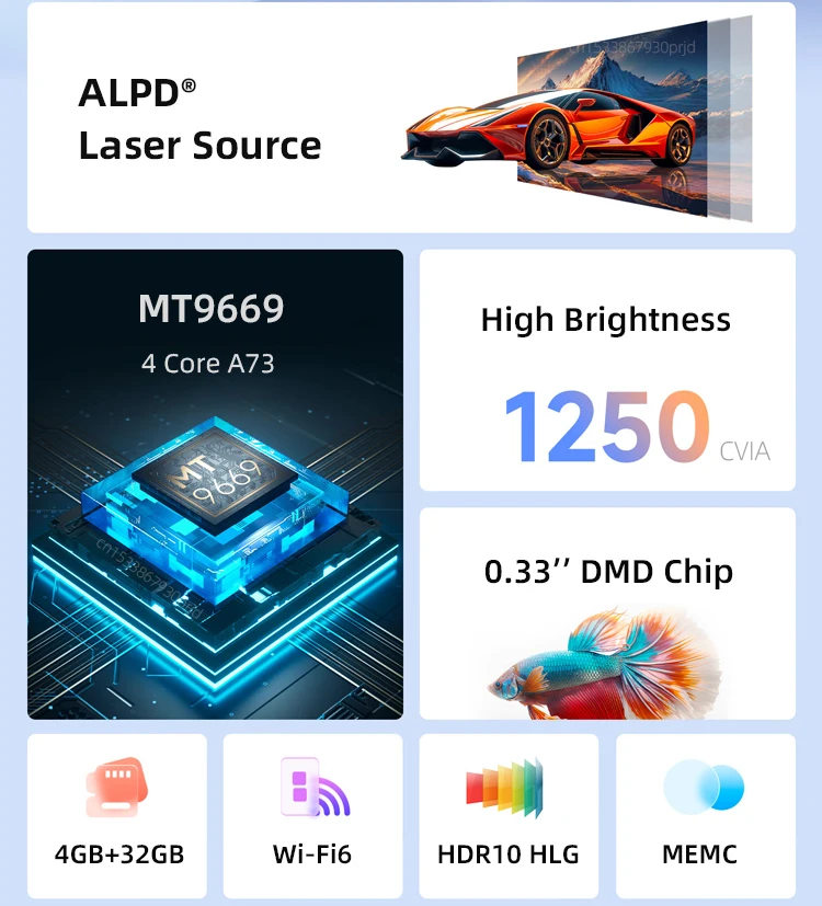 Dangbei D5X Pro 1080P Full HD Laser Projector LED Mini Portable Smart Home Theater 3D Wifi 1800 ANSI Cinema Bluetooth Beamer