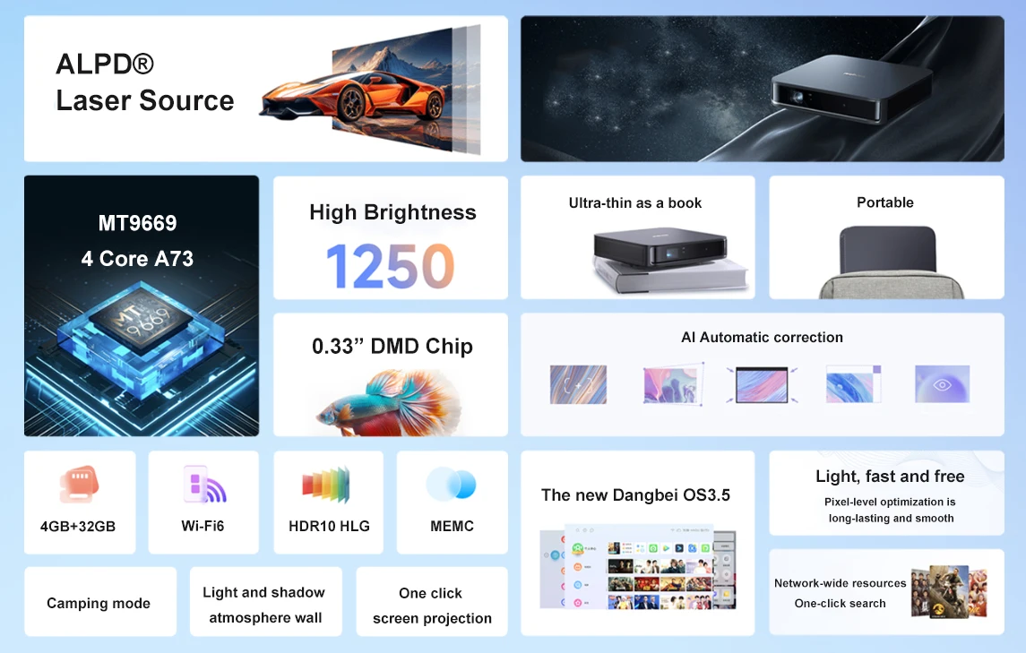 Dangbei D5X Pro Projector High Brightness Full HD Low Blue Light Eye Protection Laser TV Wall Projection Screen Home Theater