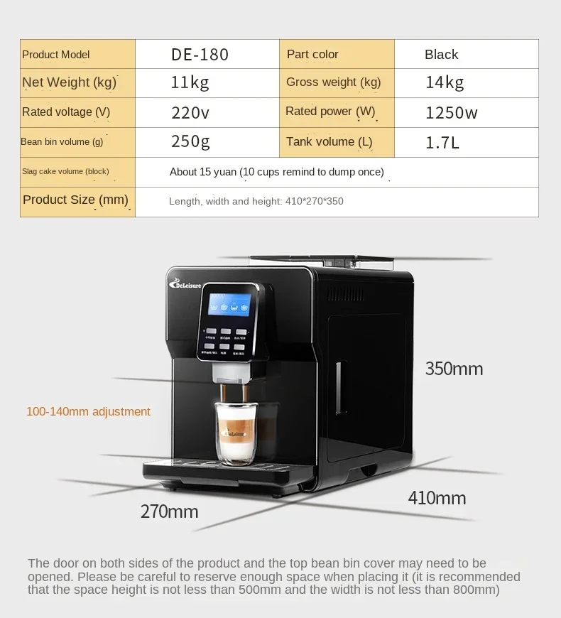 Deleisure DE-180 jeden przycisk automatyczny włoski mały ekspres do kawy home American business office instant ground beans