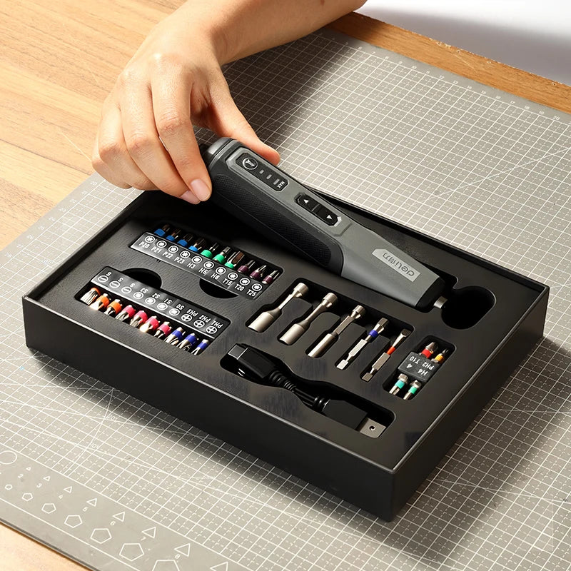 DELI 4V Electrical Screwdriver Sets Smart Cordless Electric Screwdrivers USB Rechargeable Handle 25 Bit Sets Power Tools