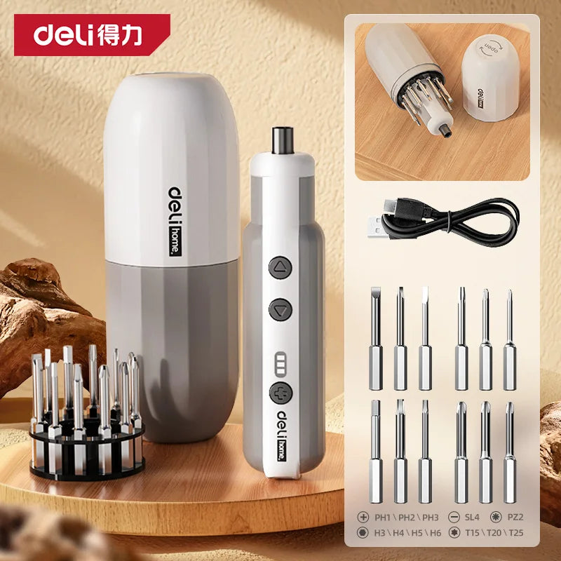 DELI Electric Screwdriver Set Home Cordless Electric Dril USB Rechargeable Multi-function Disassembly Torque Repair Tools Kit