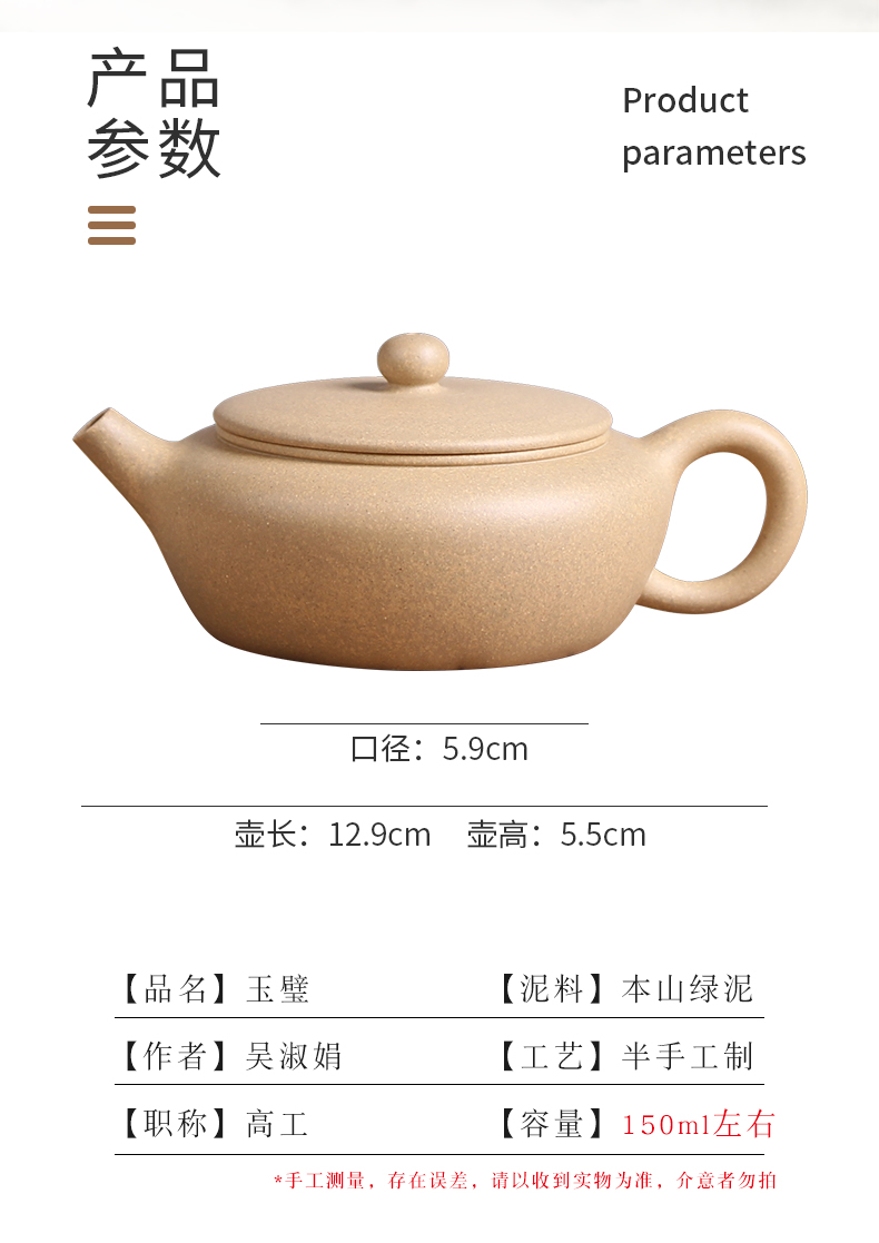 Deyuanchang Yixing Purple Clay Pot Handmade Benshan Green Clay Jade Pot Made by Senior Engineer Wu Shujuan Half-Handmade