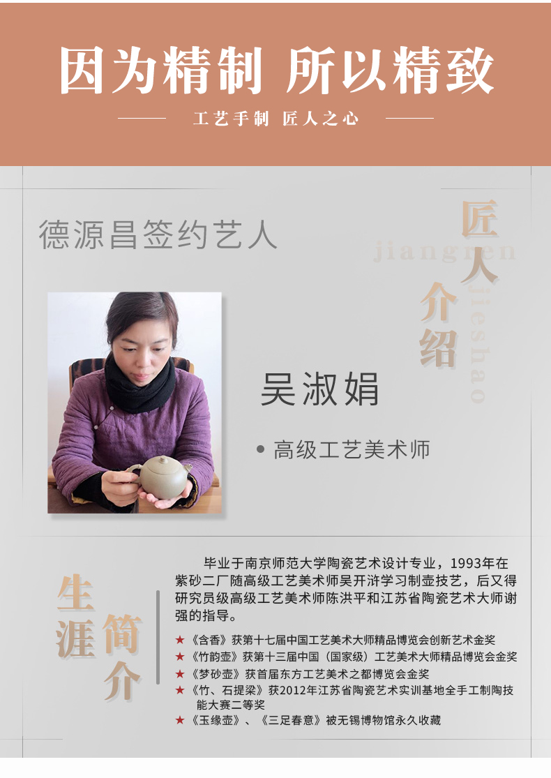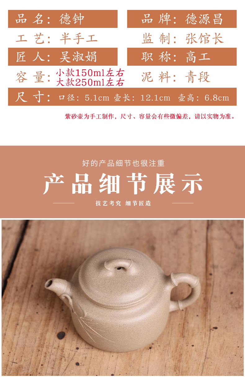 Deyuanchang Yixing Purple Clay Pot Handmade Raw Ore Green Section Dezhong Teapot Senior Engineer Wu Shujuan Half-Handmade Produc