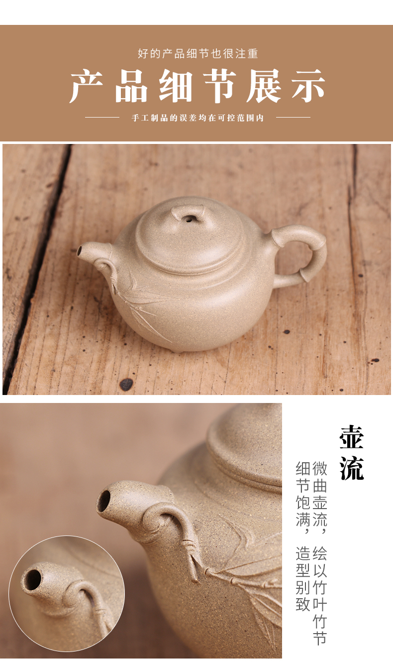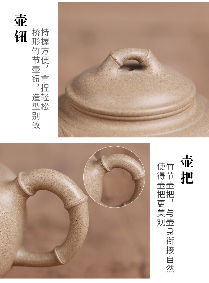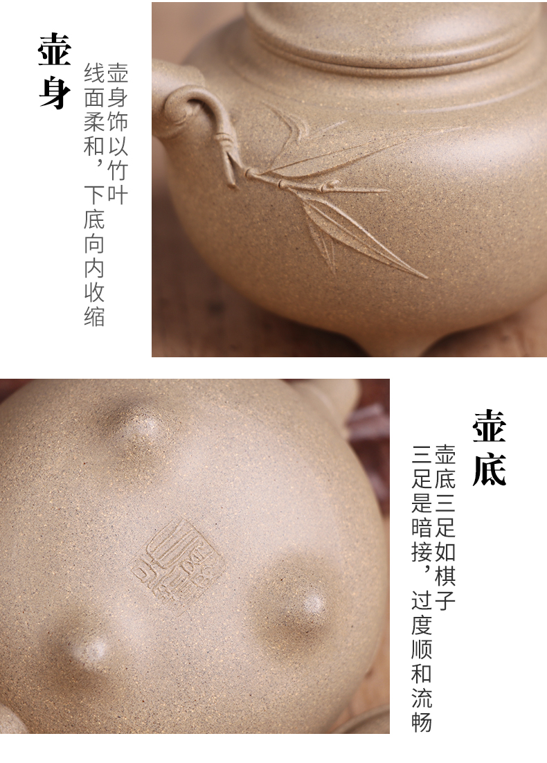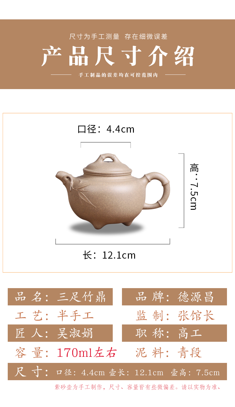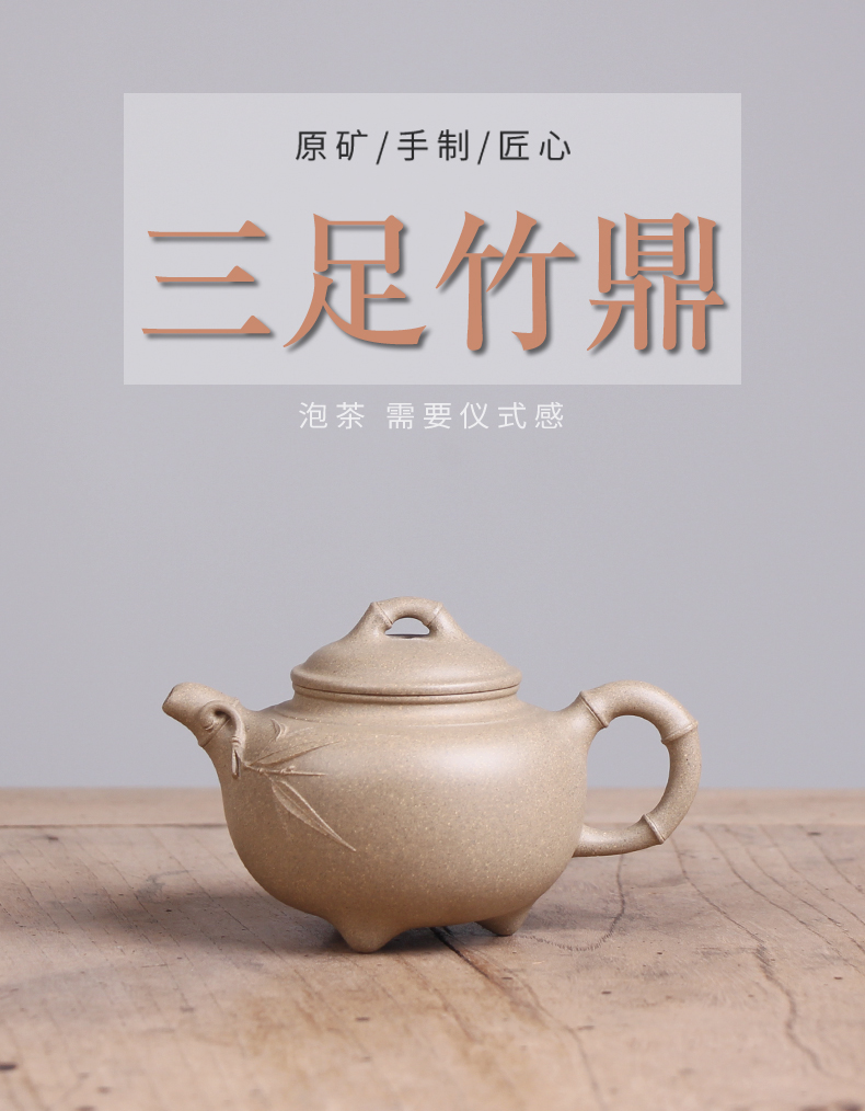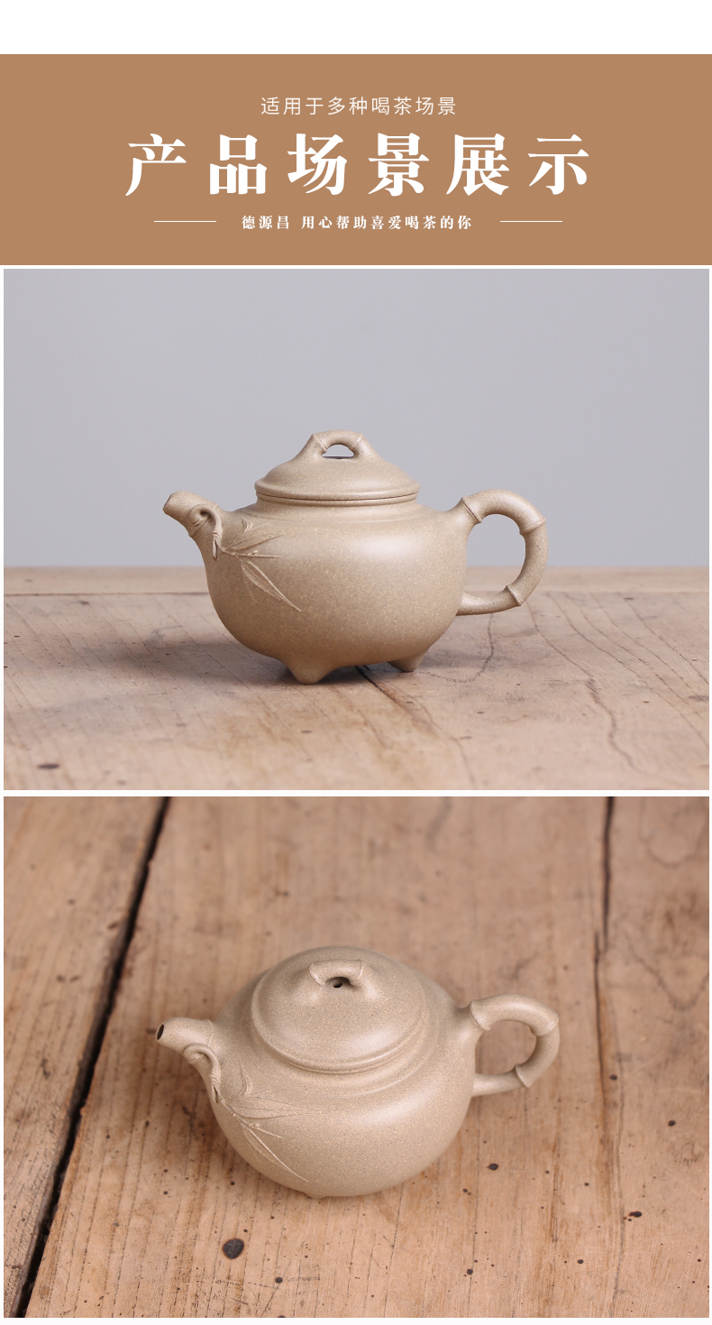 Deyuanchang Yixing Purple Clay Pot Handmade Raw Ore Green Section Three-Legged Bamboo Dinggao Gong Wu Shujuan Semi-Handmade
