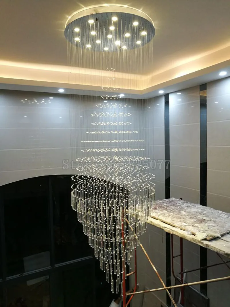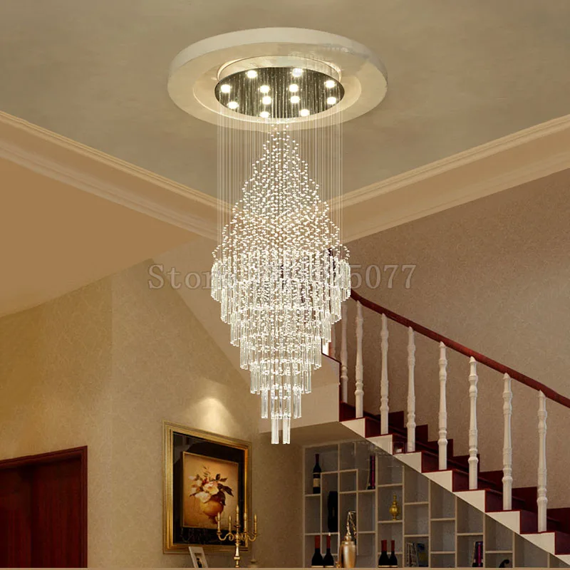 DHL Customize Dia800*H2600mm villa crystal chandeliers duplex stairs hall led ceiling light hotel crystal chandeliers JF1298