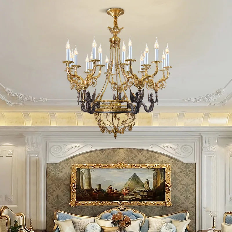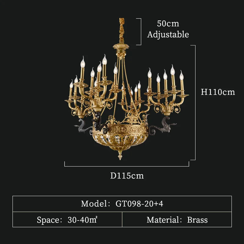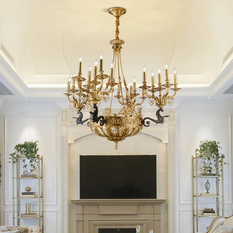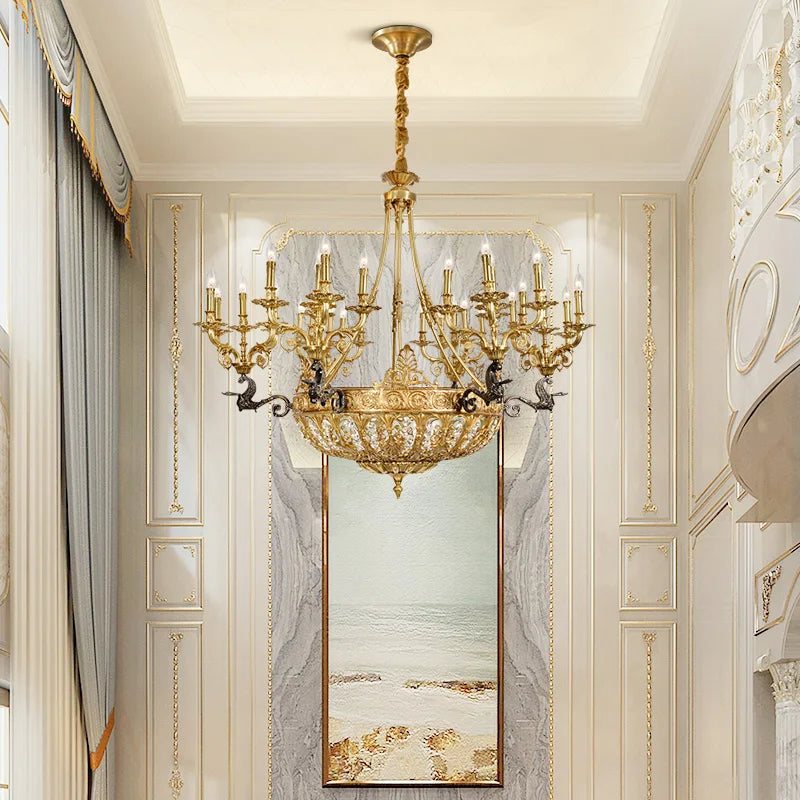 DINGFAN European Style All Copper Chandelier Hotel Restaurant Banquet Hall Lobby Villa Living Room Decorative Pendent Light