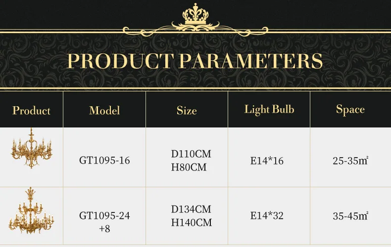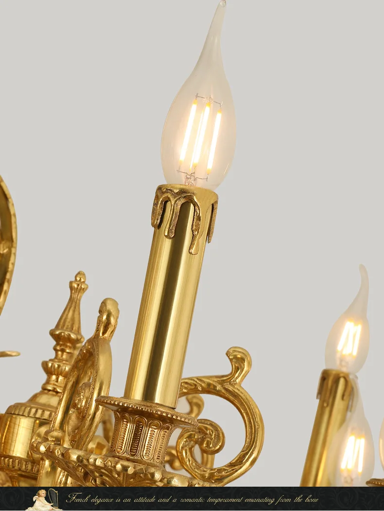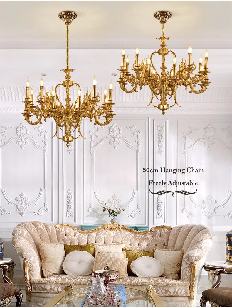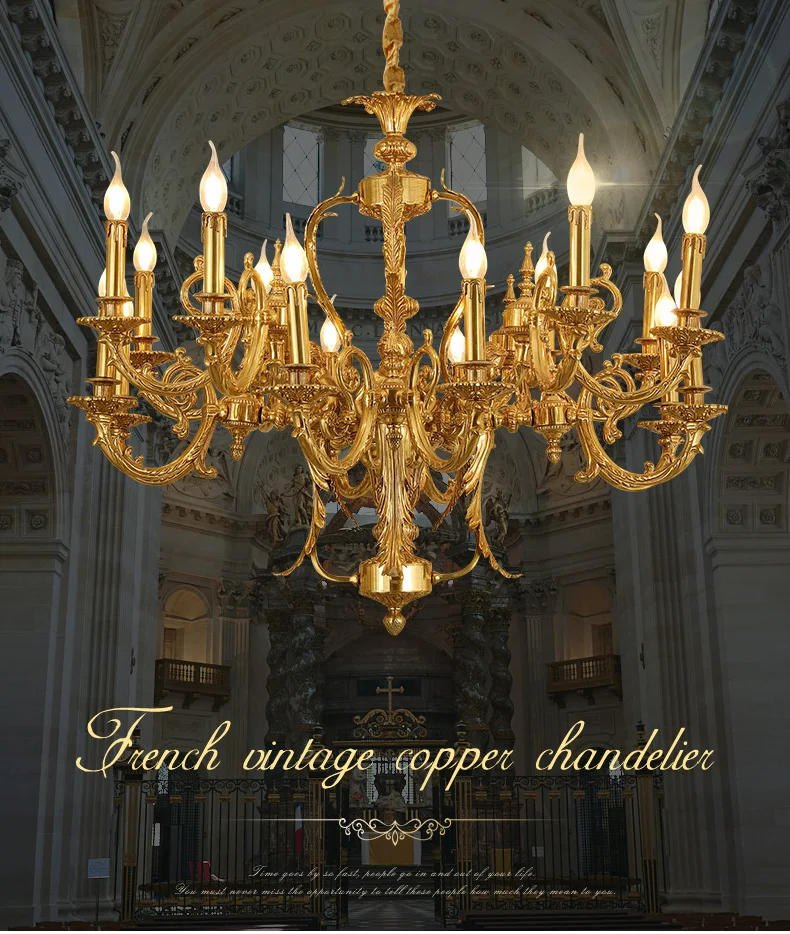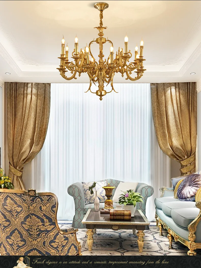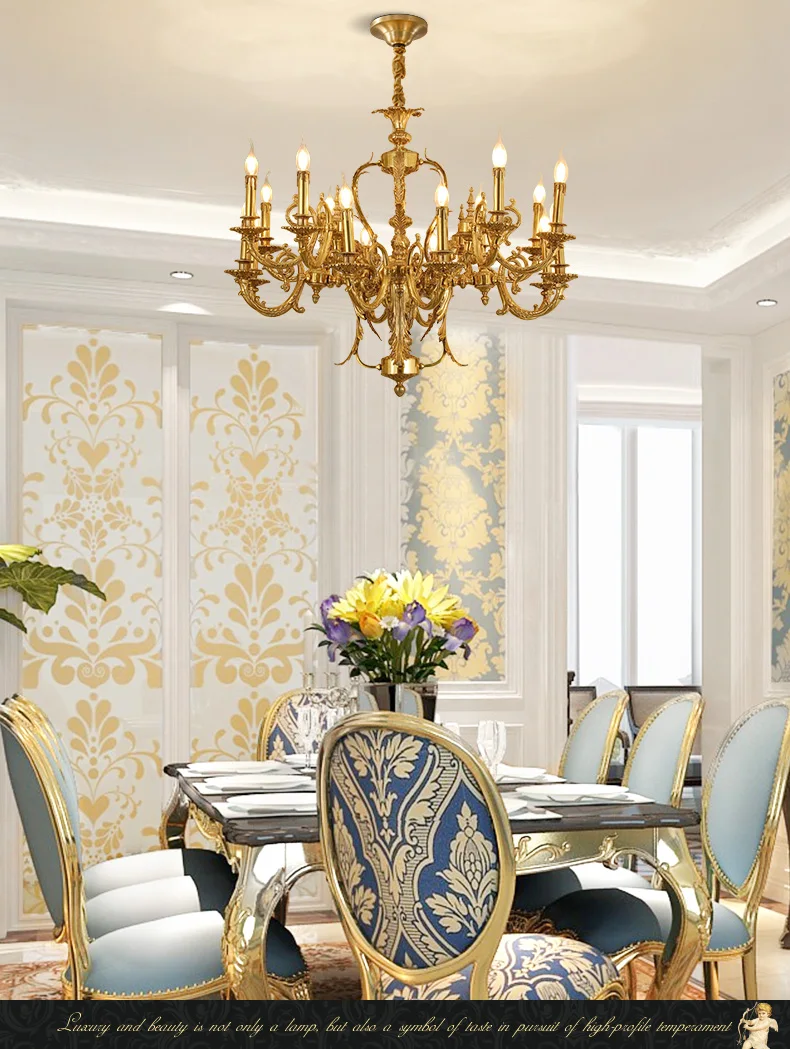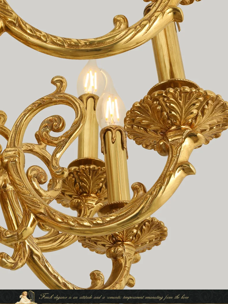 DINGFAN European Style Living Room Villa Duplex Luxury Dining Room Bedroom Copper Lamp French Vintage Brass Chandelier