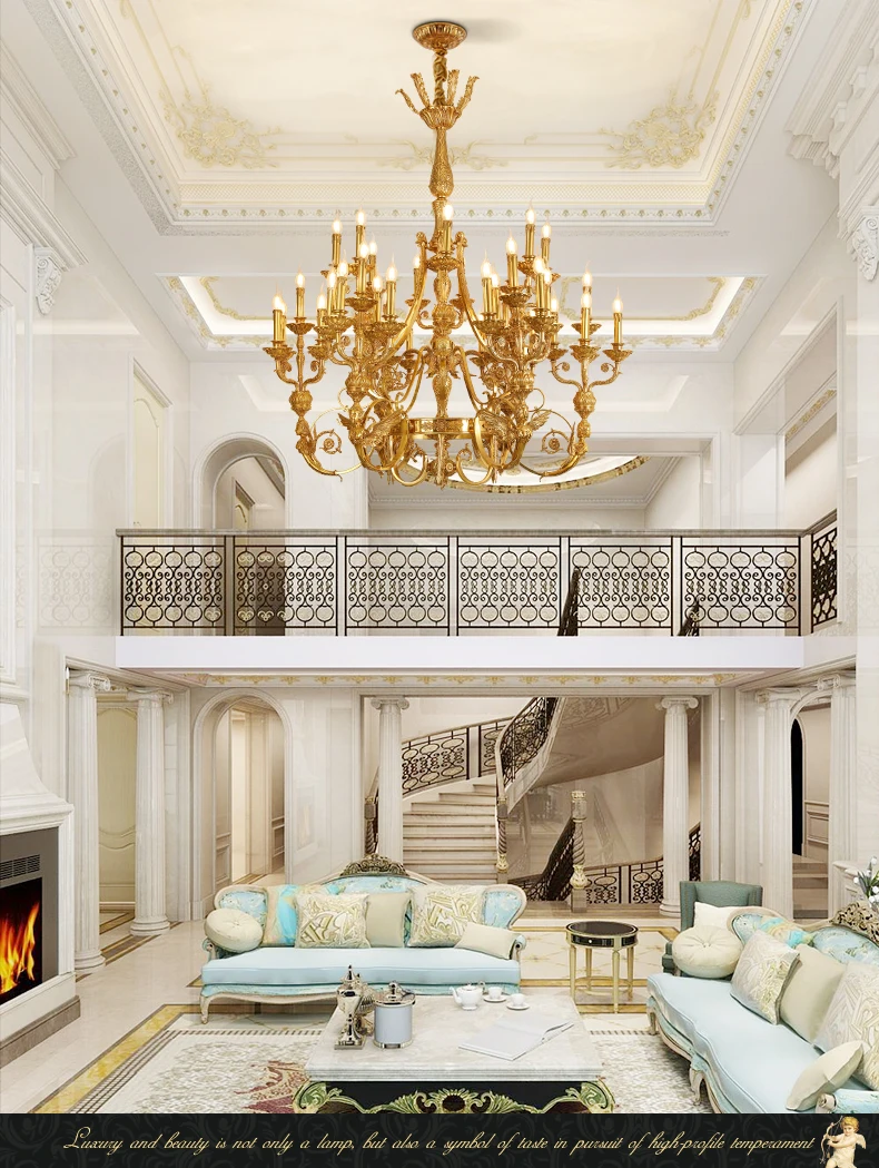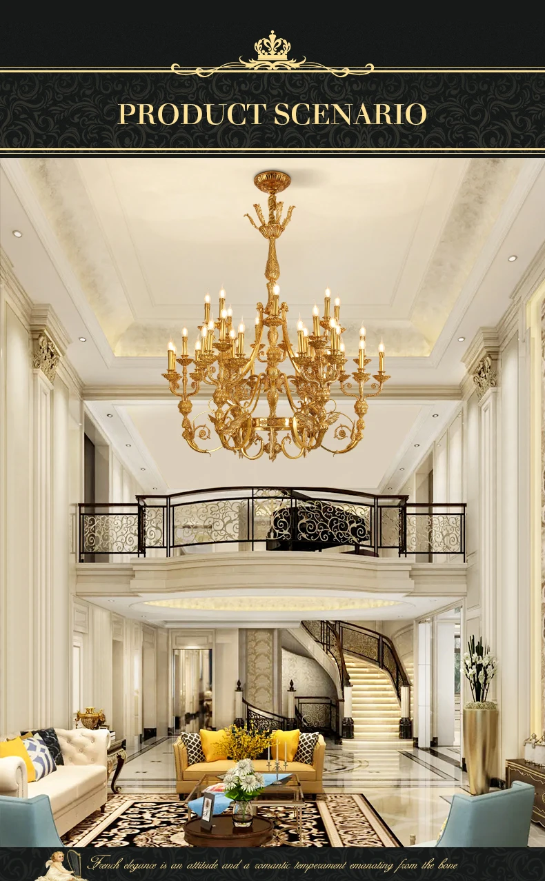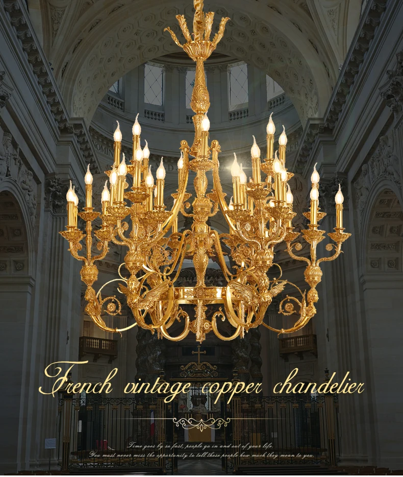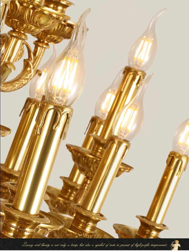 DINGFAN European Style Luxury Villa Hotel Lobby Chandelier, French High Quality Full Copper Candle Chandelier