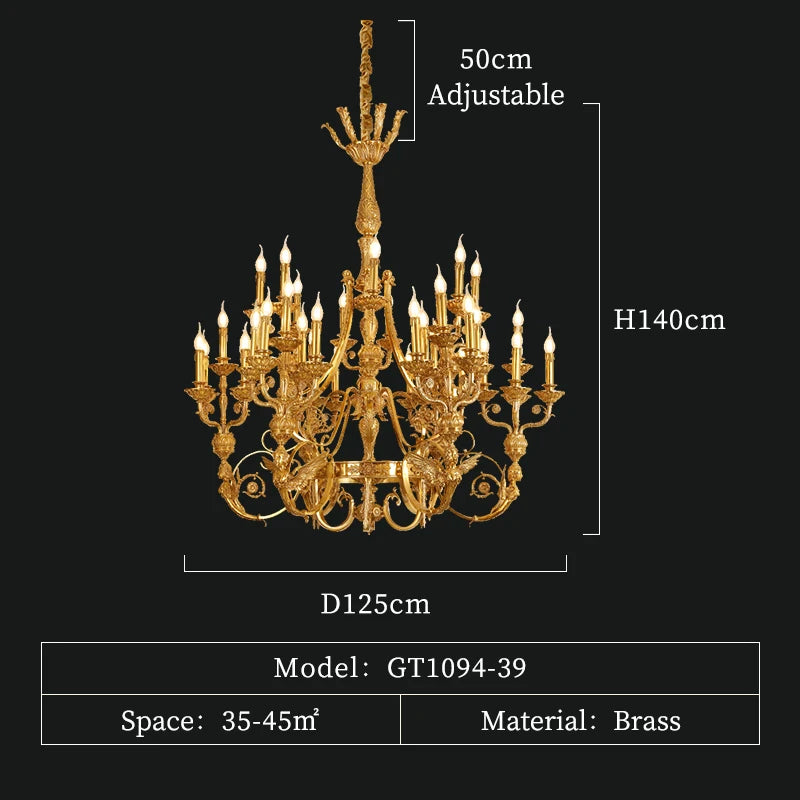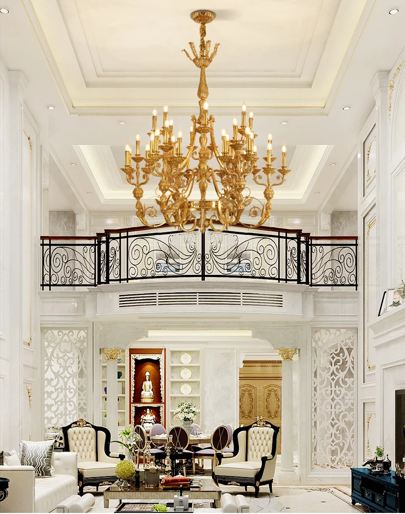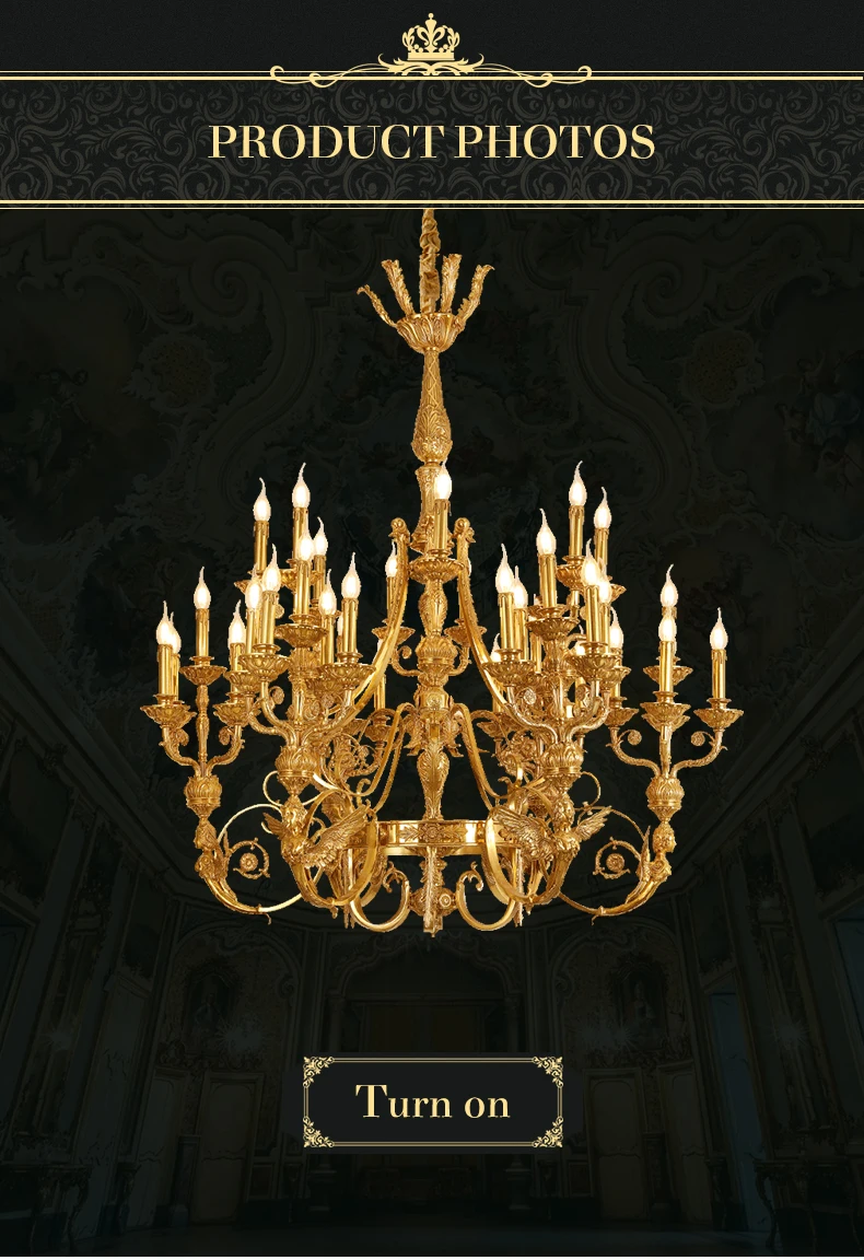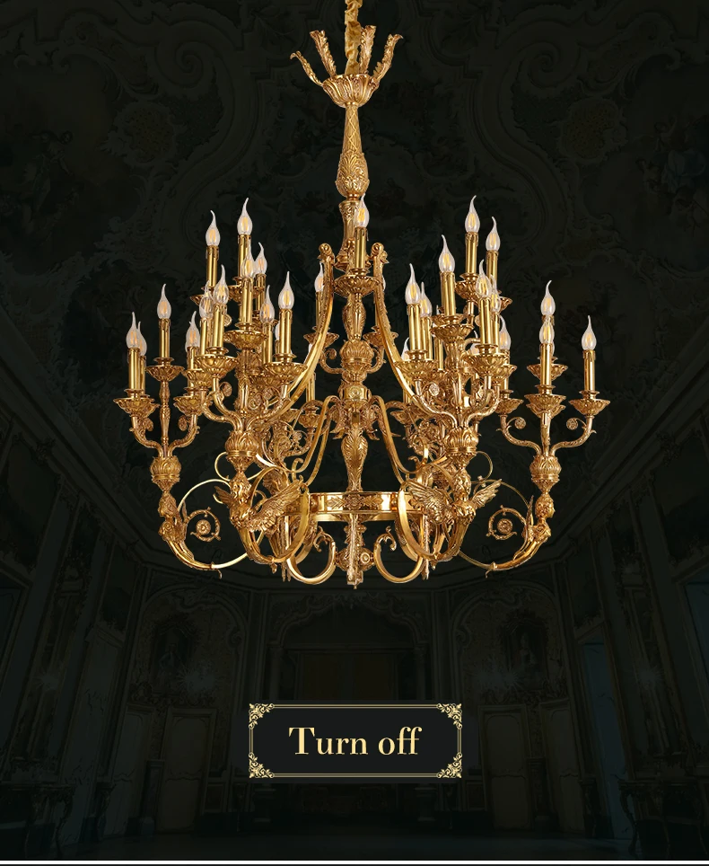 DINGFAN European Style Luxury Villa Hotel Lobby Chandelier, French High Quality Full Copper Candle Chandelier