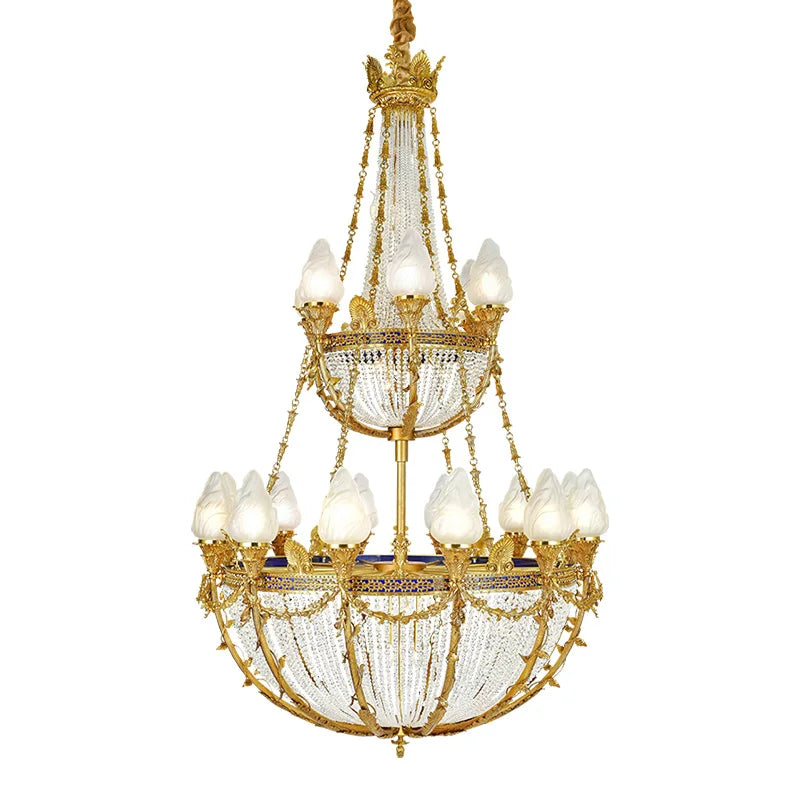 DINGFAN French Luxury Hall Crystal Chandelier Villa Living Room Full Copper Lamp European Style Hotel Lobby Pendent Light