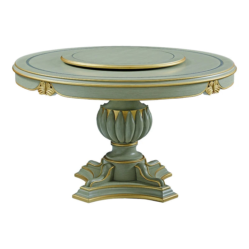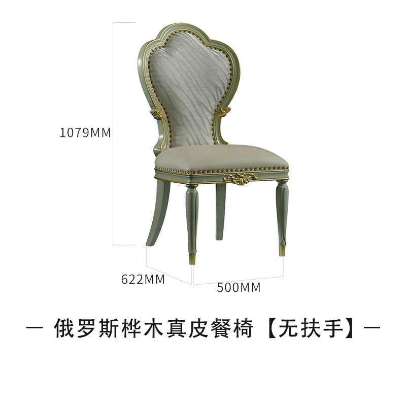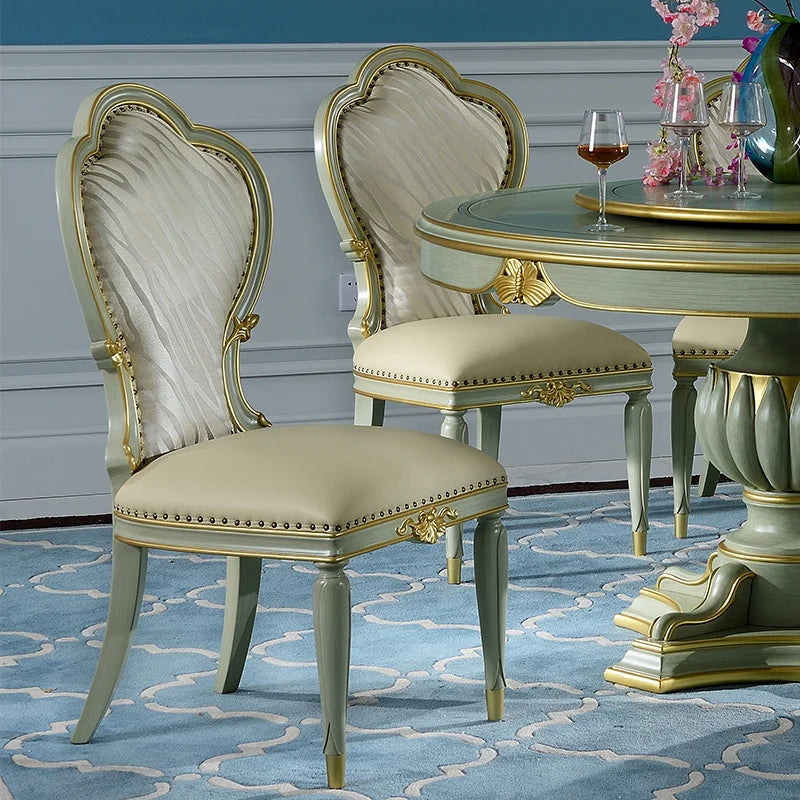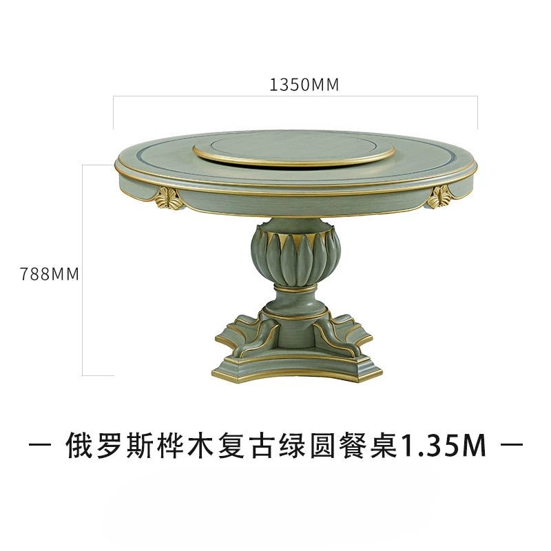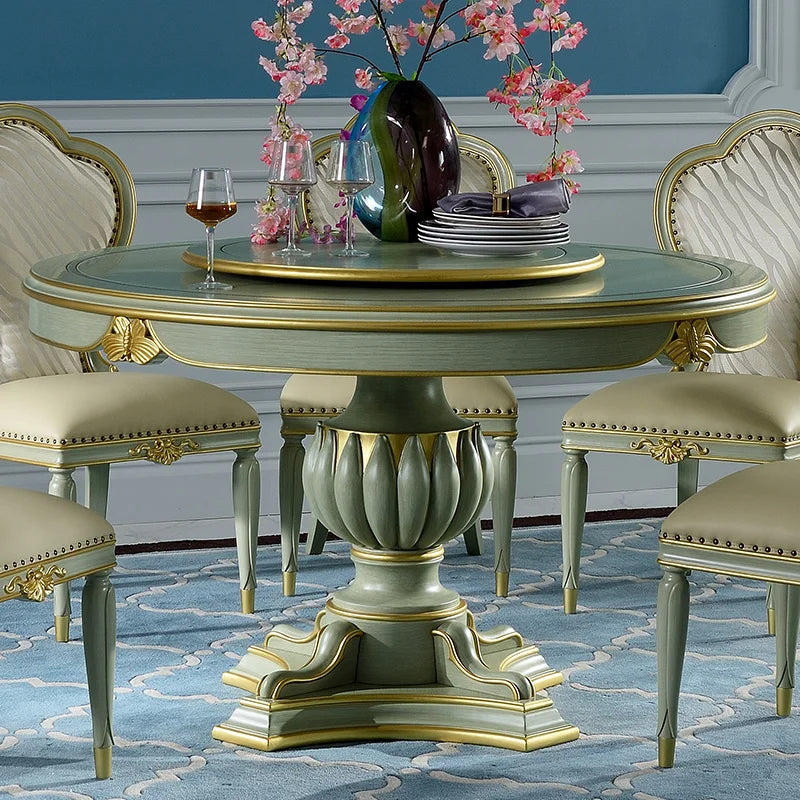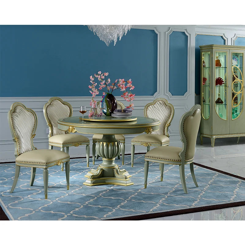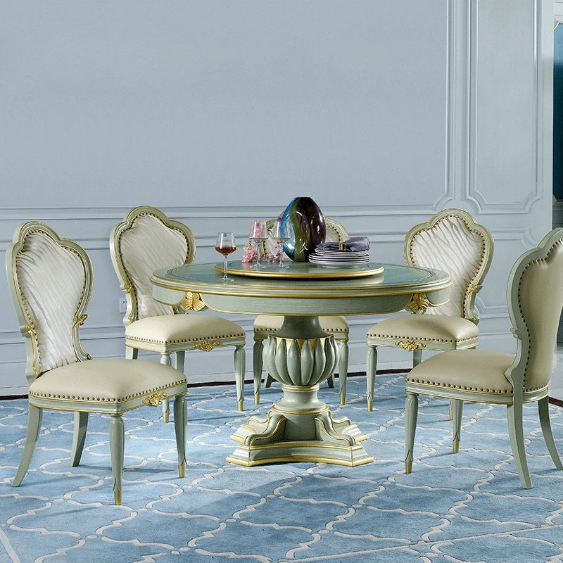 Dining table and chair combination European solid wood carved round dining table dining chairs