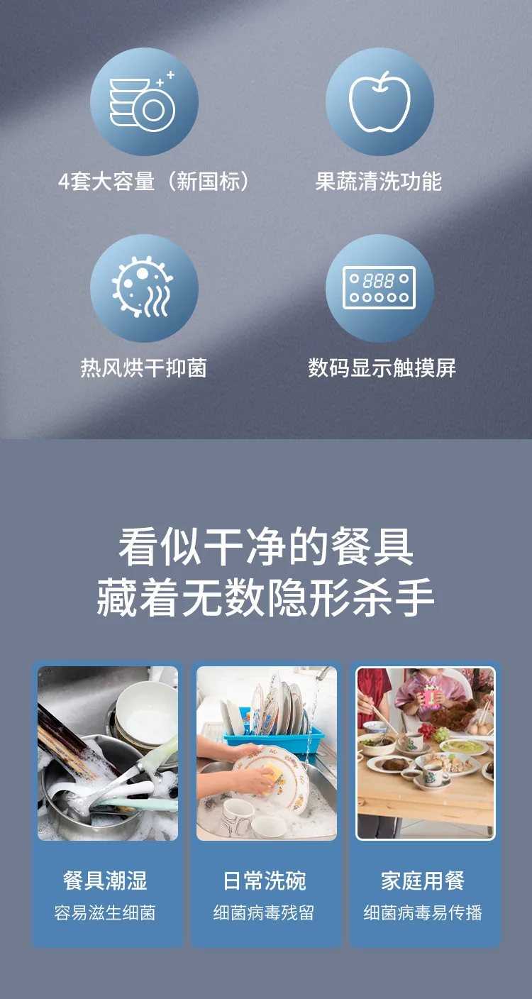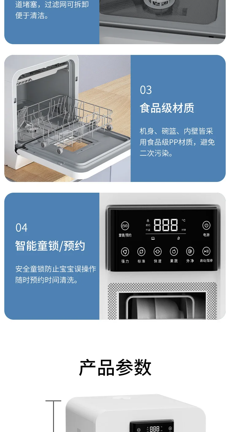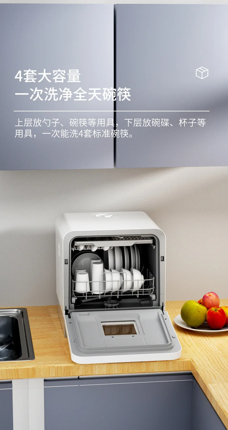 Dishwasher fully automatic household small desktop installation free 4 sets of mini sterilization drying table intelligent dishw