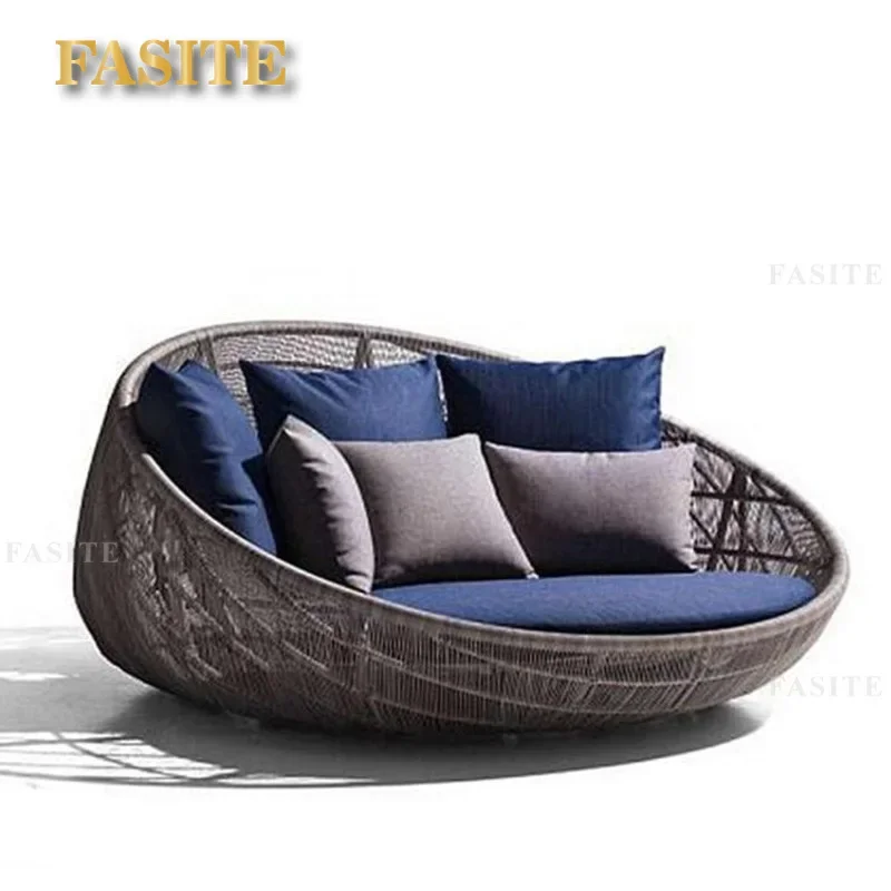 Divano letto in Rattan Patio pigro divano letto rotondo mobili per giardino cortile piscina all'aperto Rattan vimini lettini