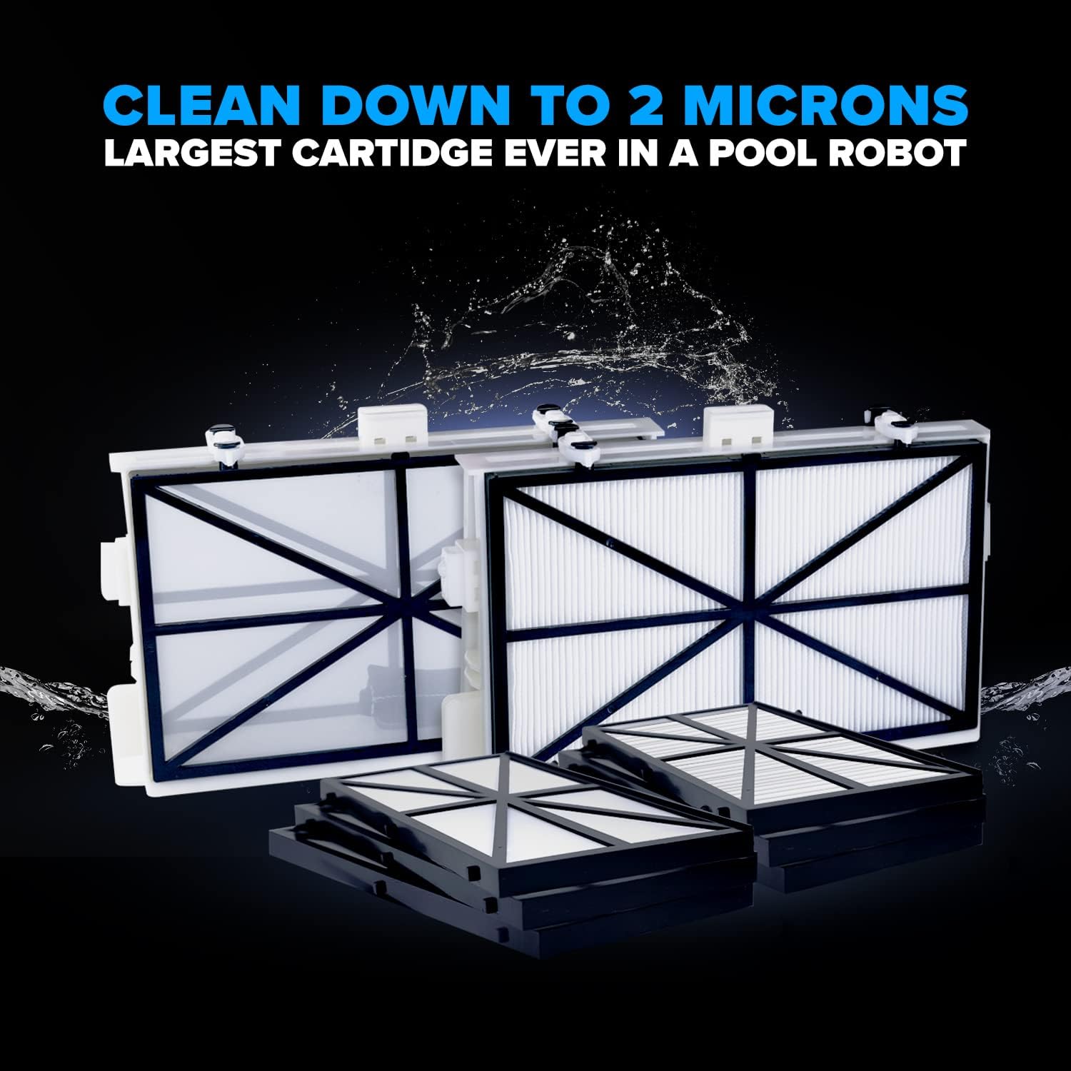 Dual High Capacity FiltersDual massive top-loading filtration cartridges help you take control of your pool. The larger size of the filters allow Sigma to maintain higher flow rates and suction through the cleaning cycle. |