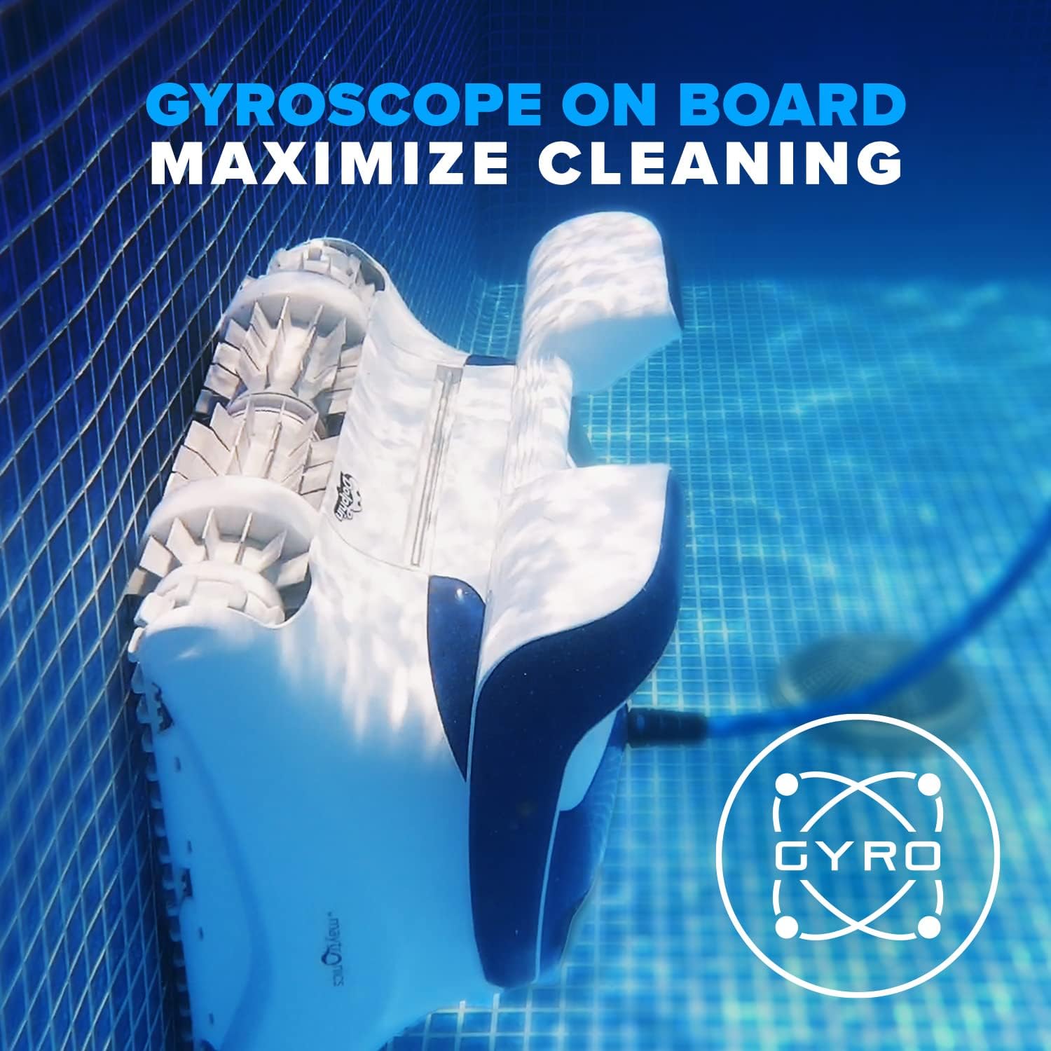 Smart Navigation with GyroNext generation Smart Nav Software with Gyroscope delivers highly optimized scanning and coverage for a new level of clean. Advanced algorithms clean off the pool floor, wall & tile/waterline. |