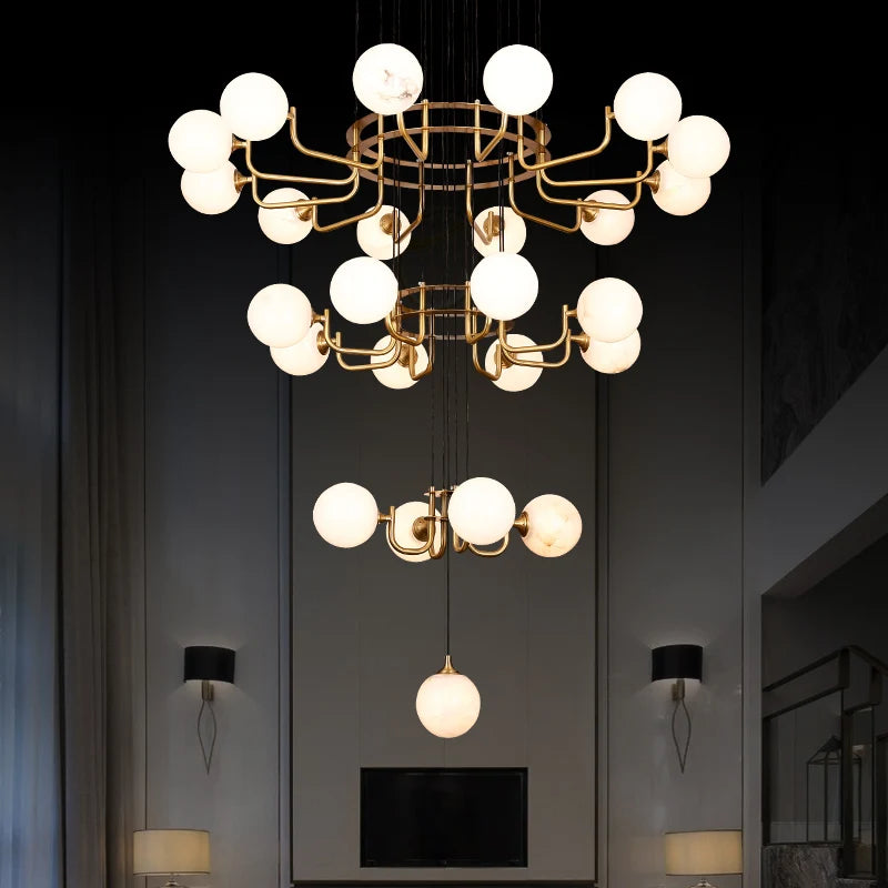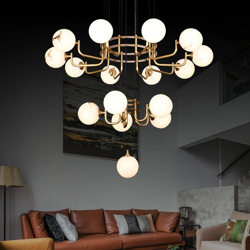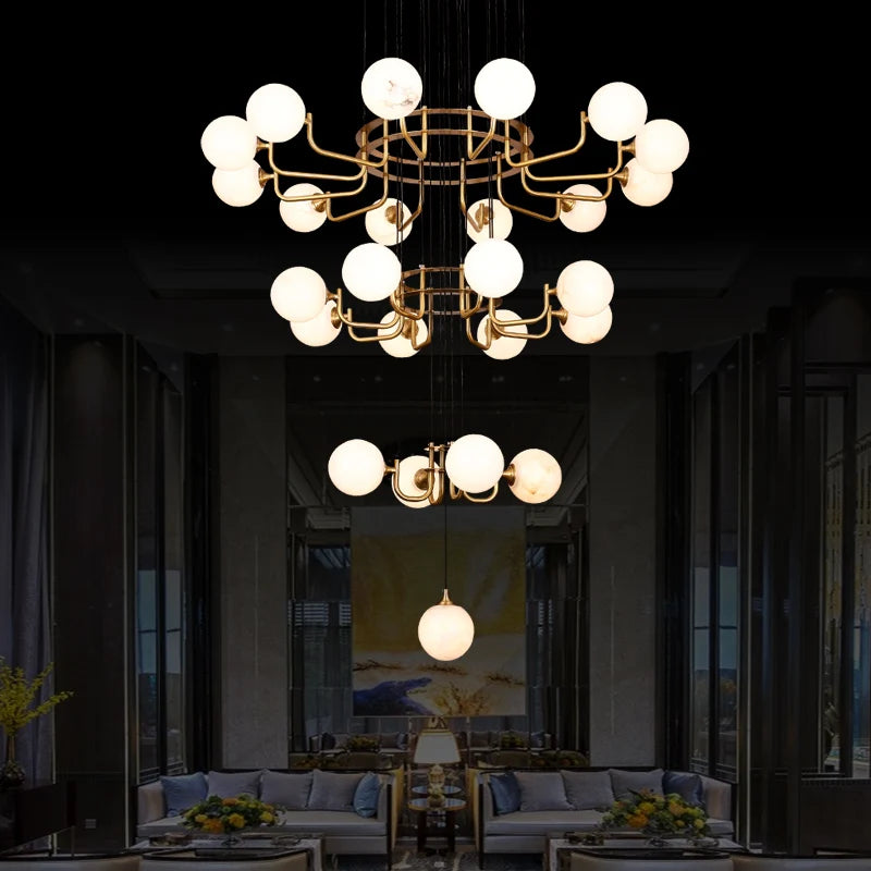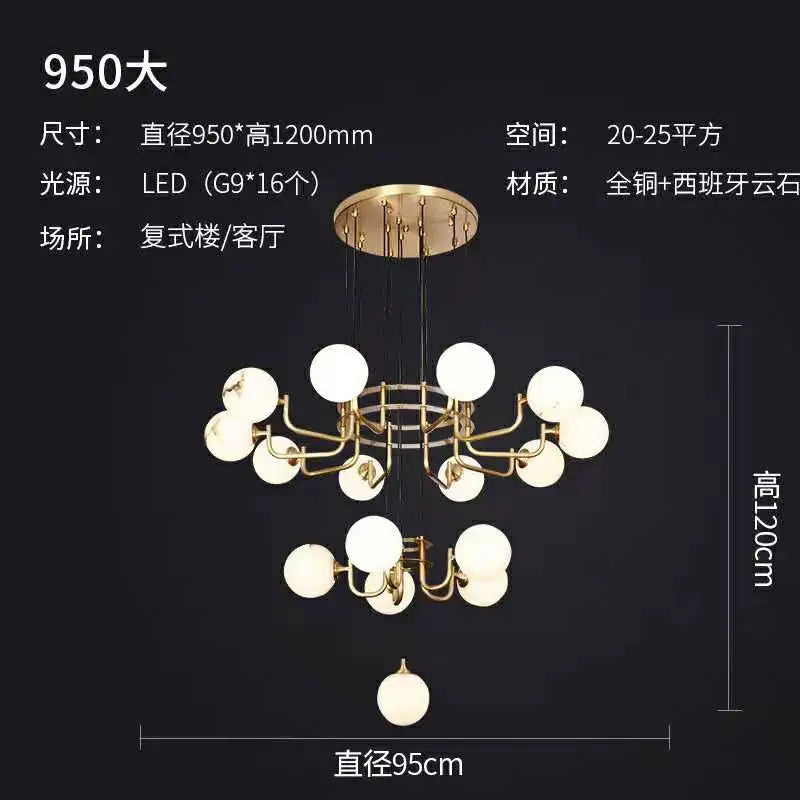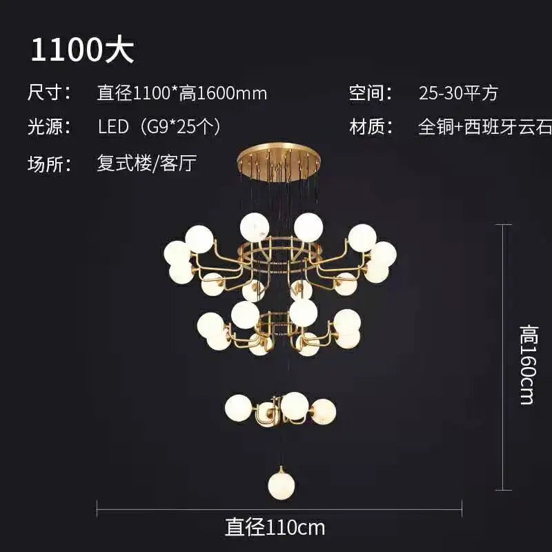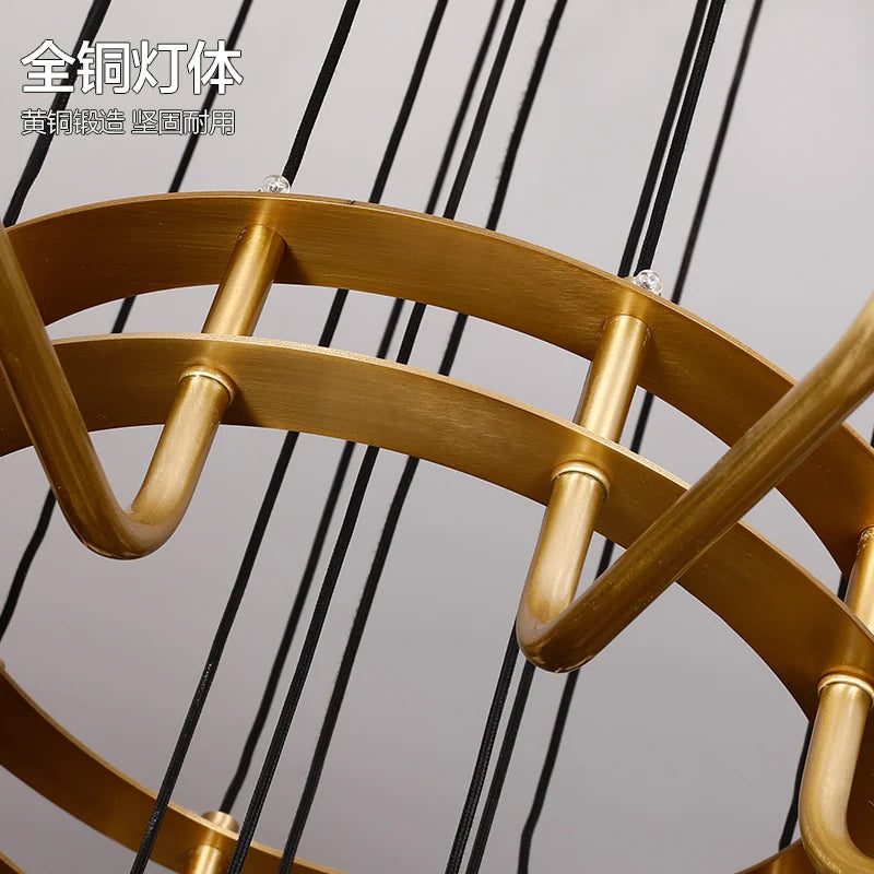 Double-storey marble chandelier Modern simple living room empty villa middle building light luxury copper staircase chandelier