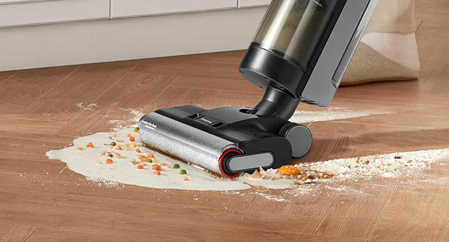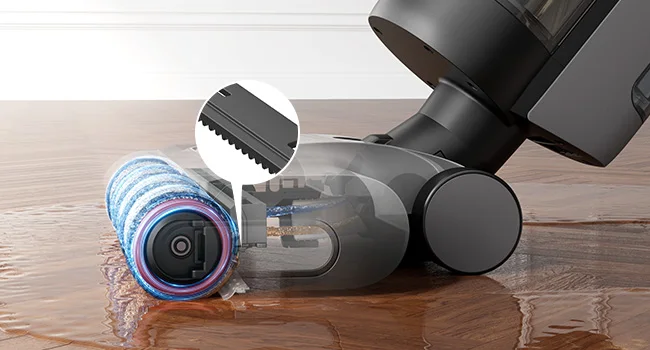 [Edge-to-edge Cleaning] With an enhanced dual-edged cleaning brush, M13 beta vacuum mop specializes in dealing with hard-to-reach region and cleaning close to baseboards and deep into corners.