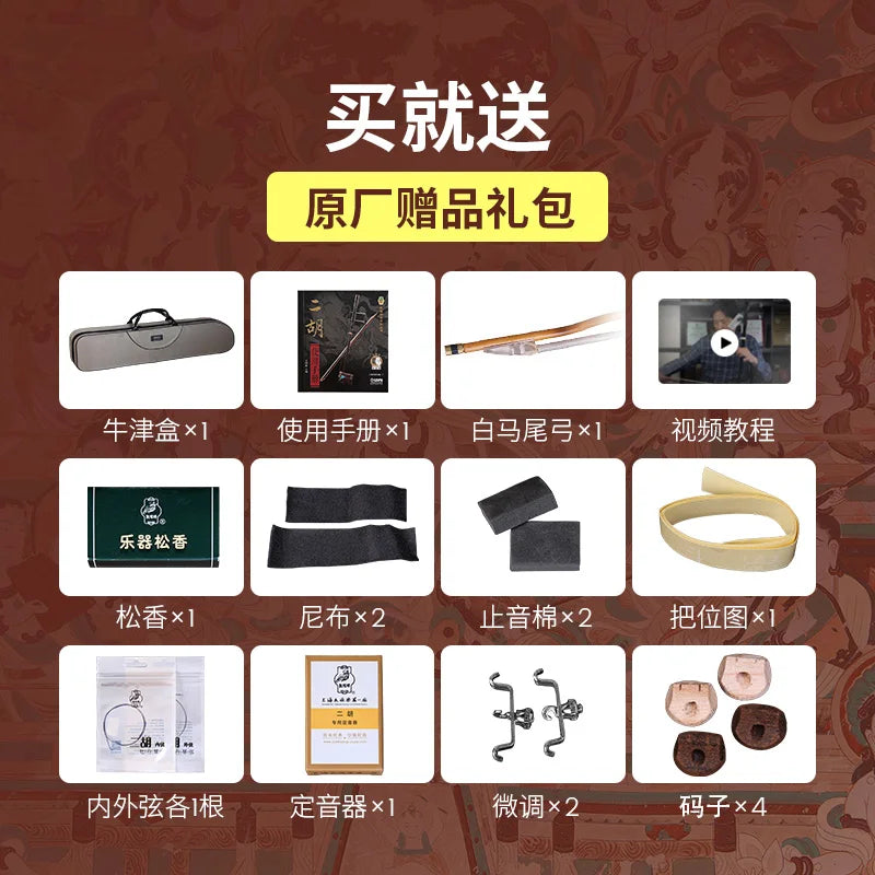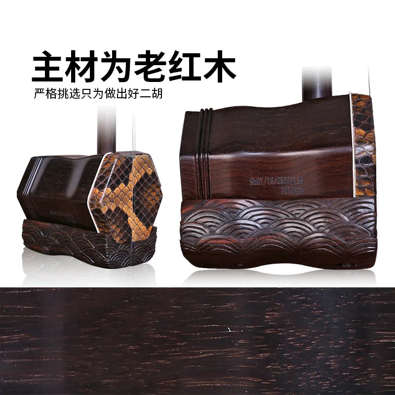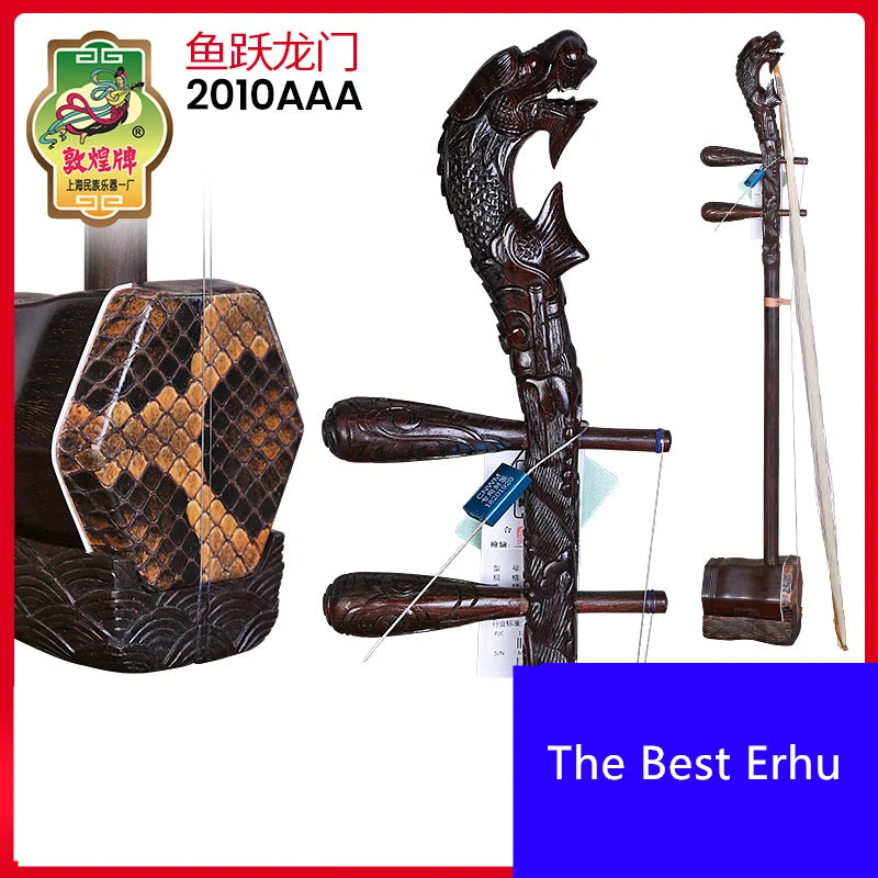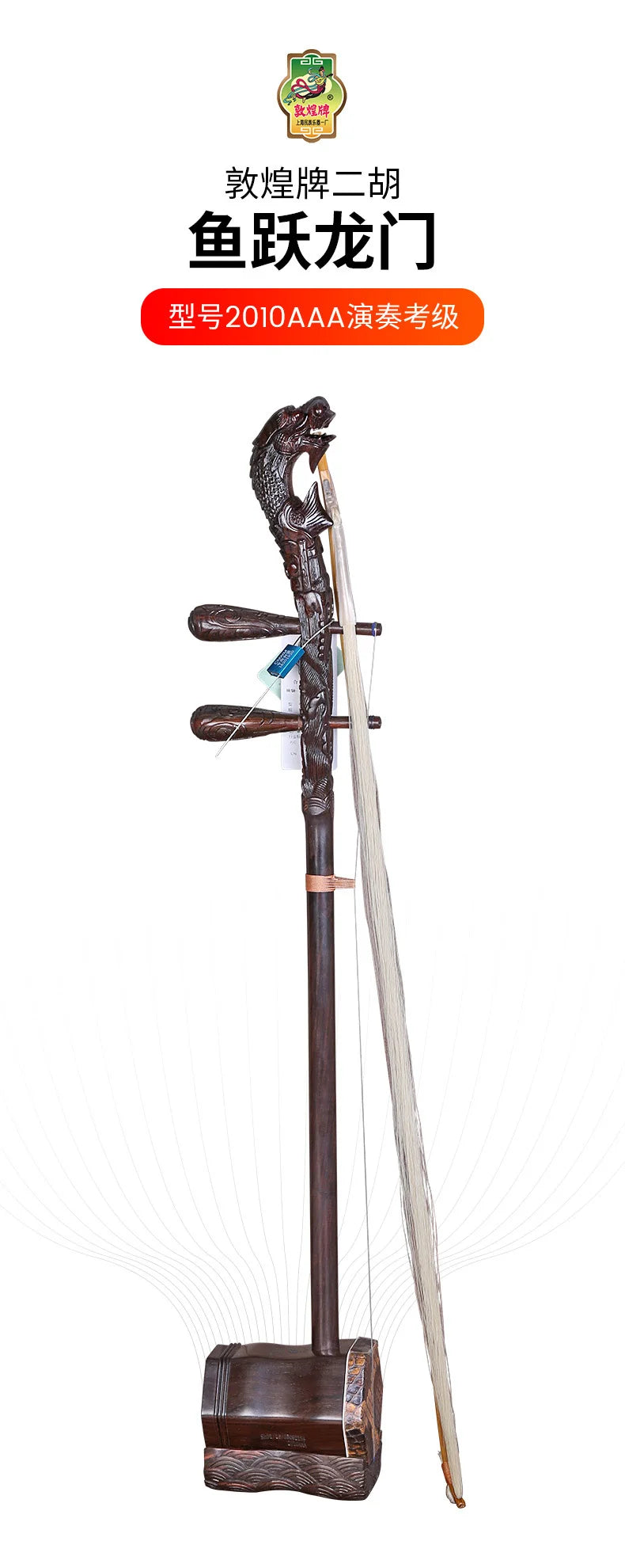 Dunhuang Brand Old Mahogany Erhu 2010AAA Fish Leaping Dragon Gate White Horsetail Bow Hexagonal Huqin Folk Musical Instrument