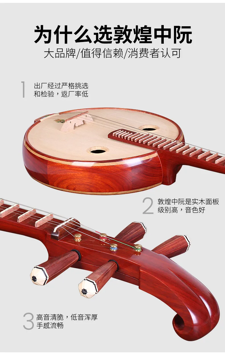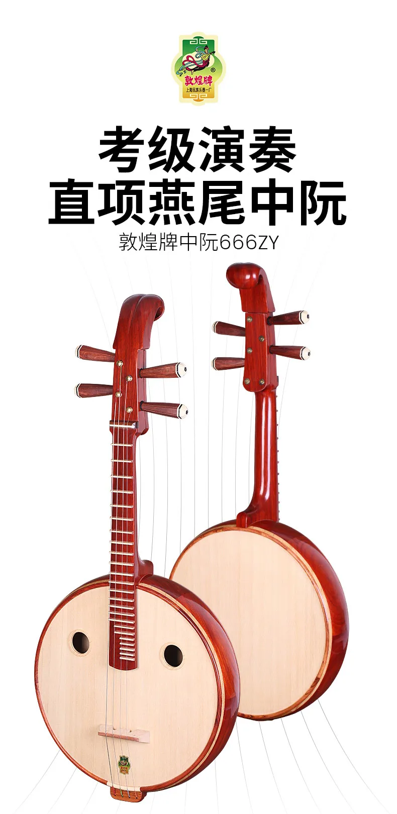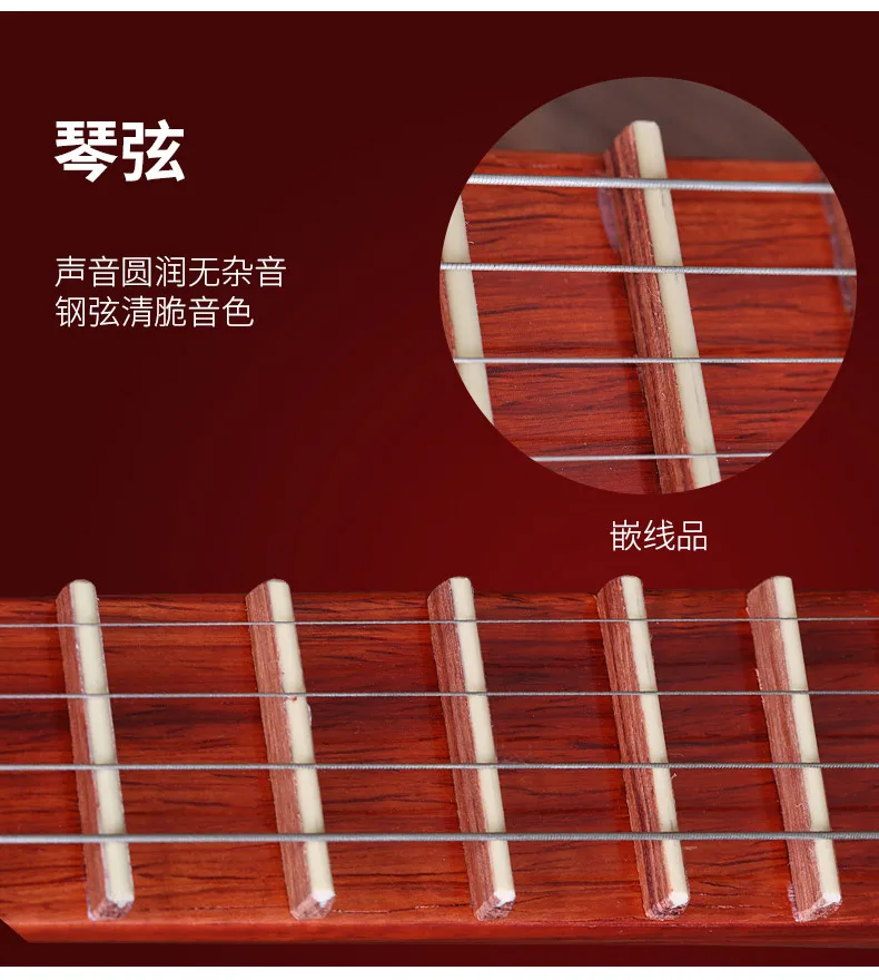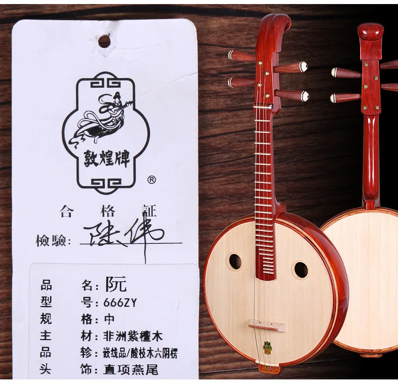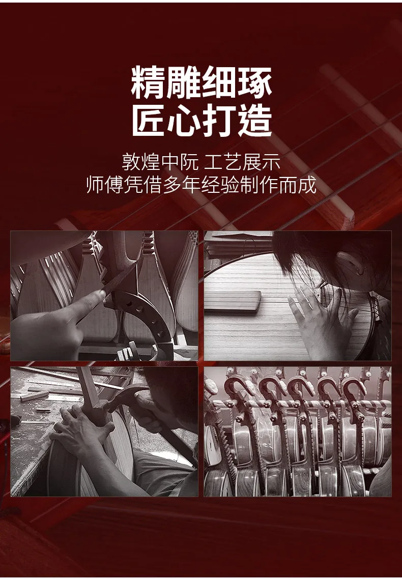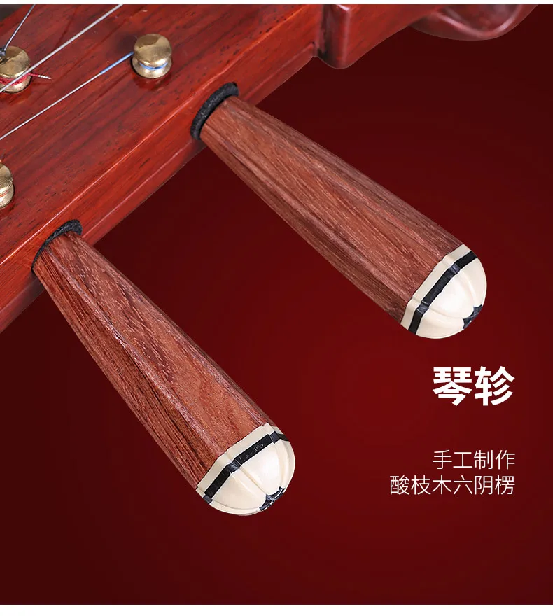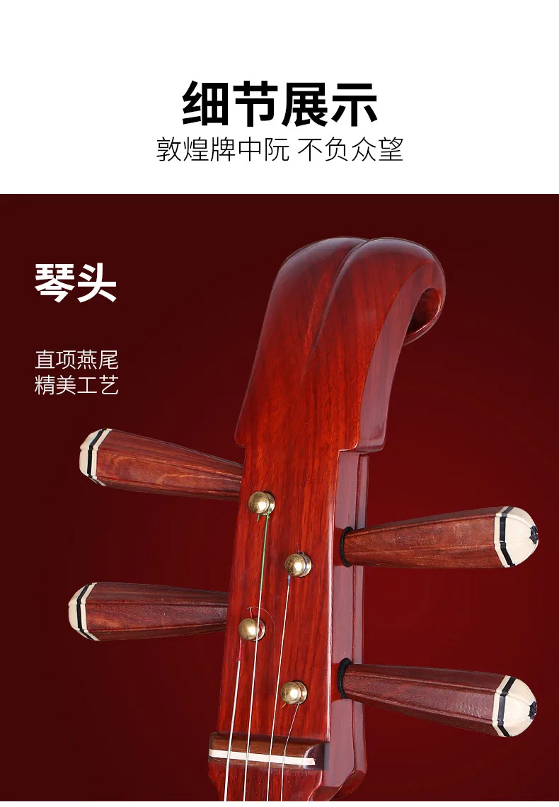 Dunhuang Brand Zhongruan 666ZY African Red Sandalwood Qin Straight Crown Dovetail Inlaid Rosewood Folk Musical Instrument