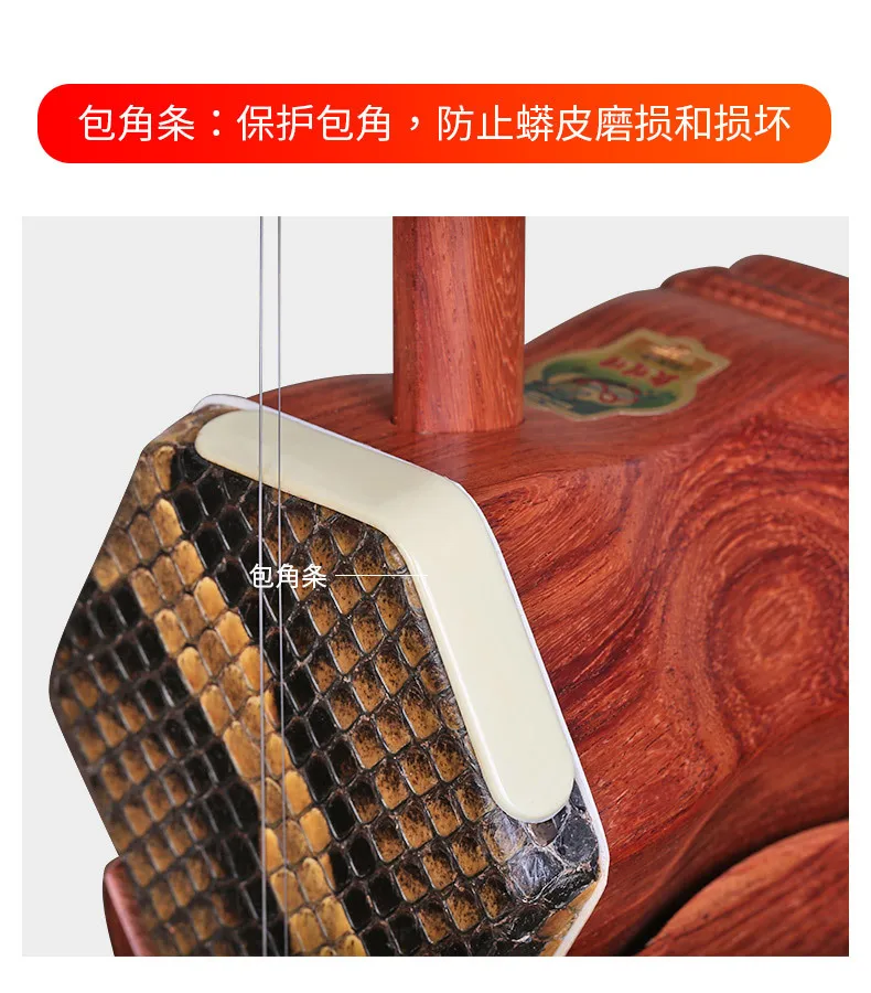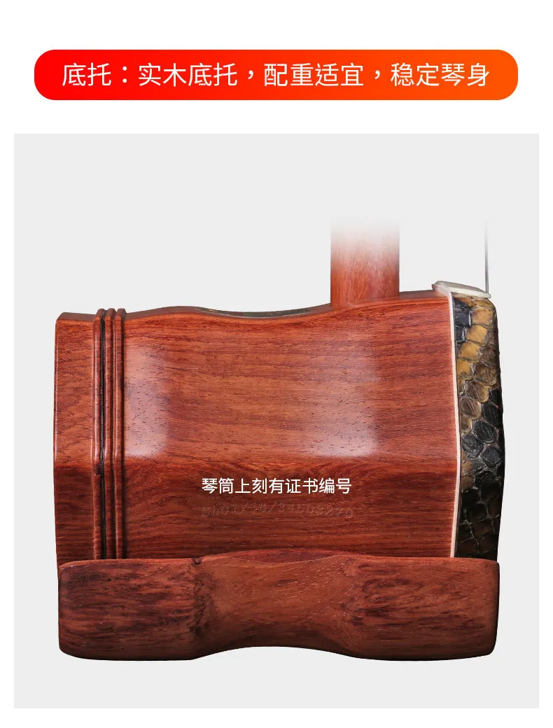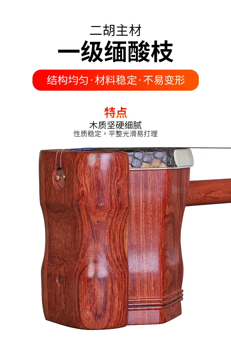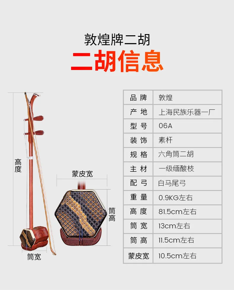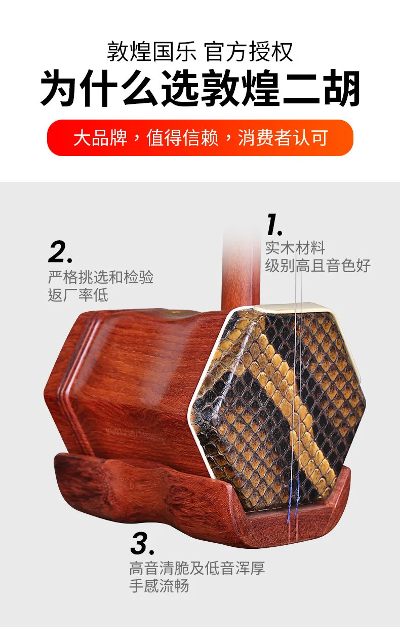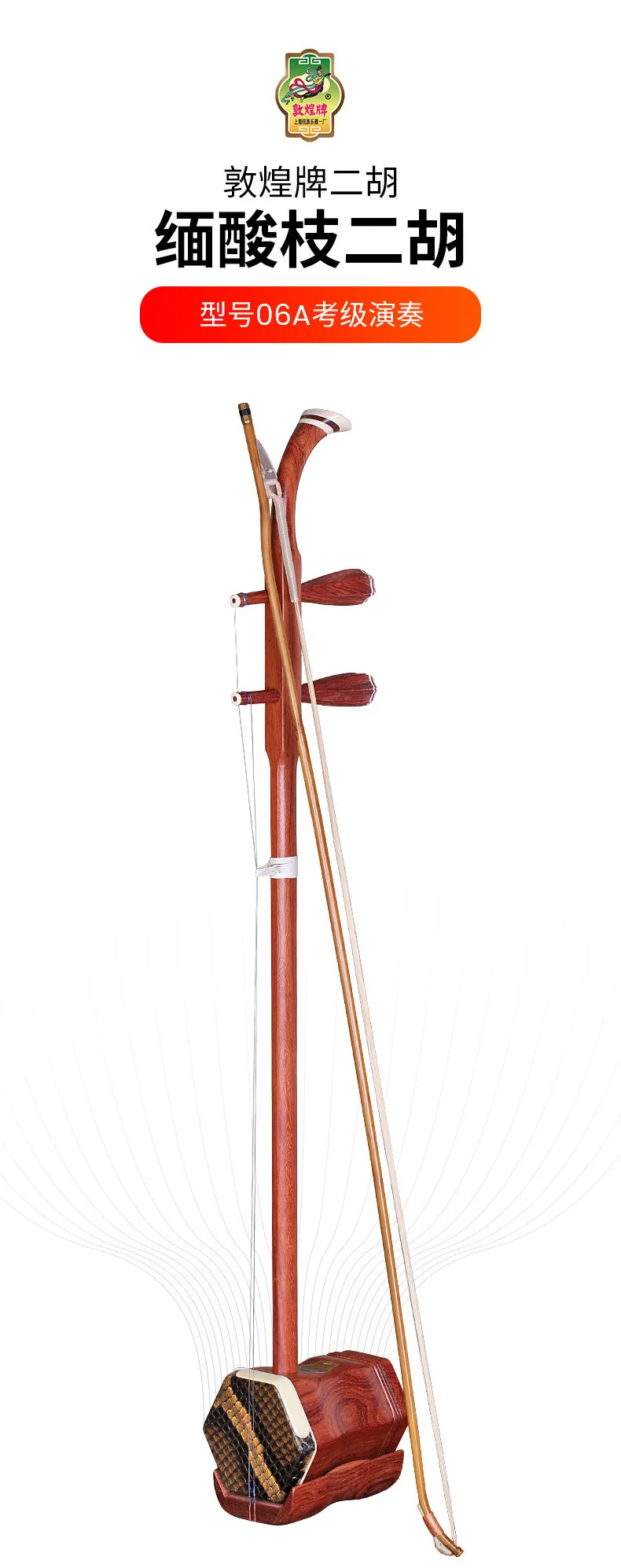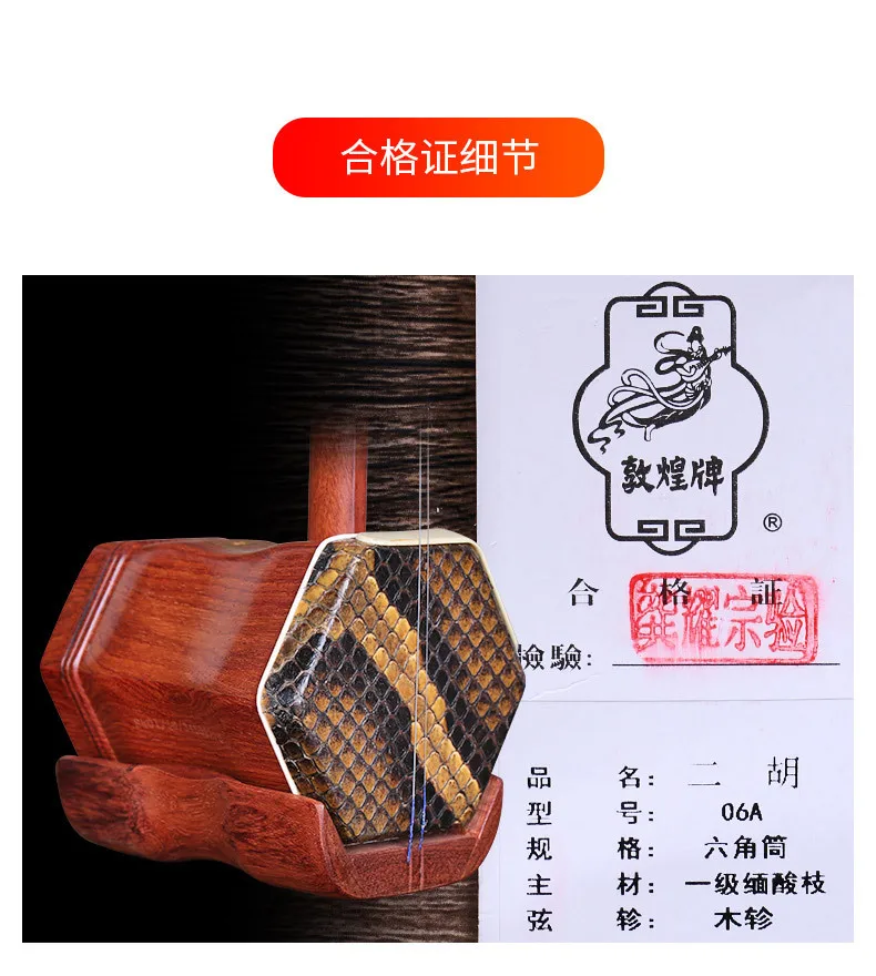 DunHuang Erhu 06A Chinese Two Strings Violin Hexagonal Redwood Erhu Solid Wood Performance Examination Ethnic Musical Instrument