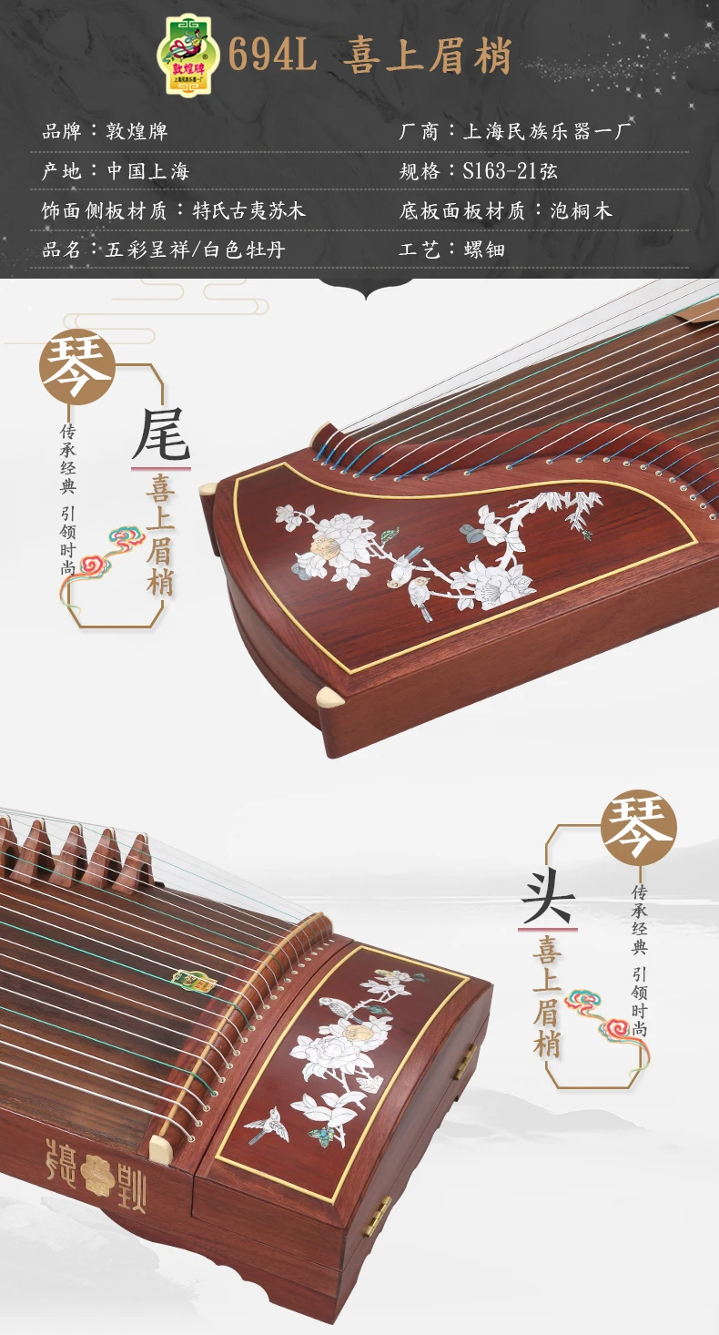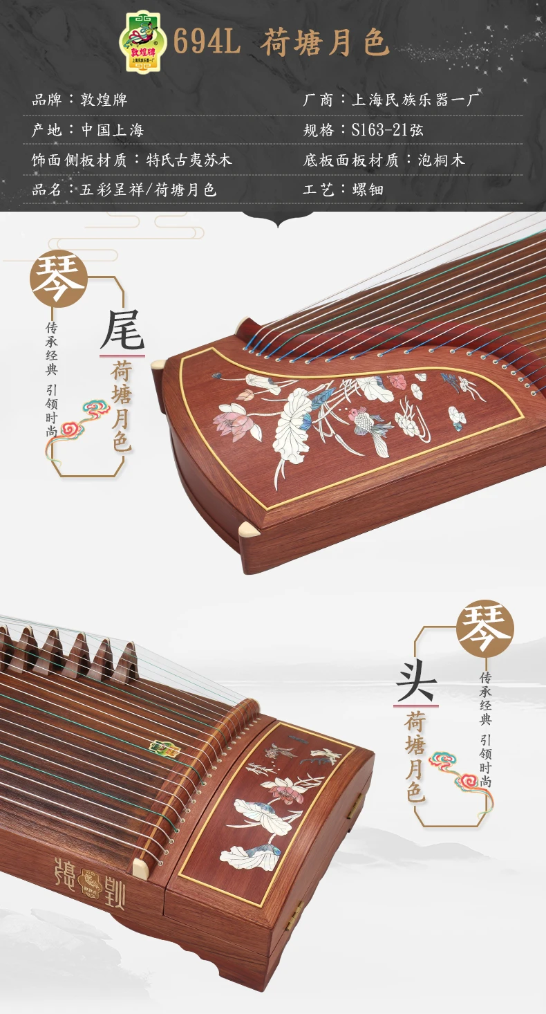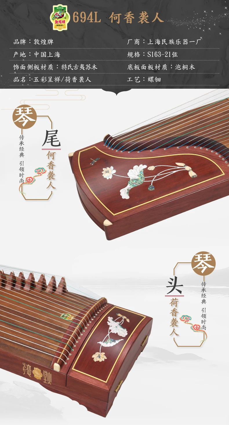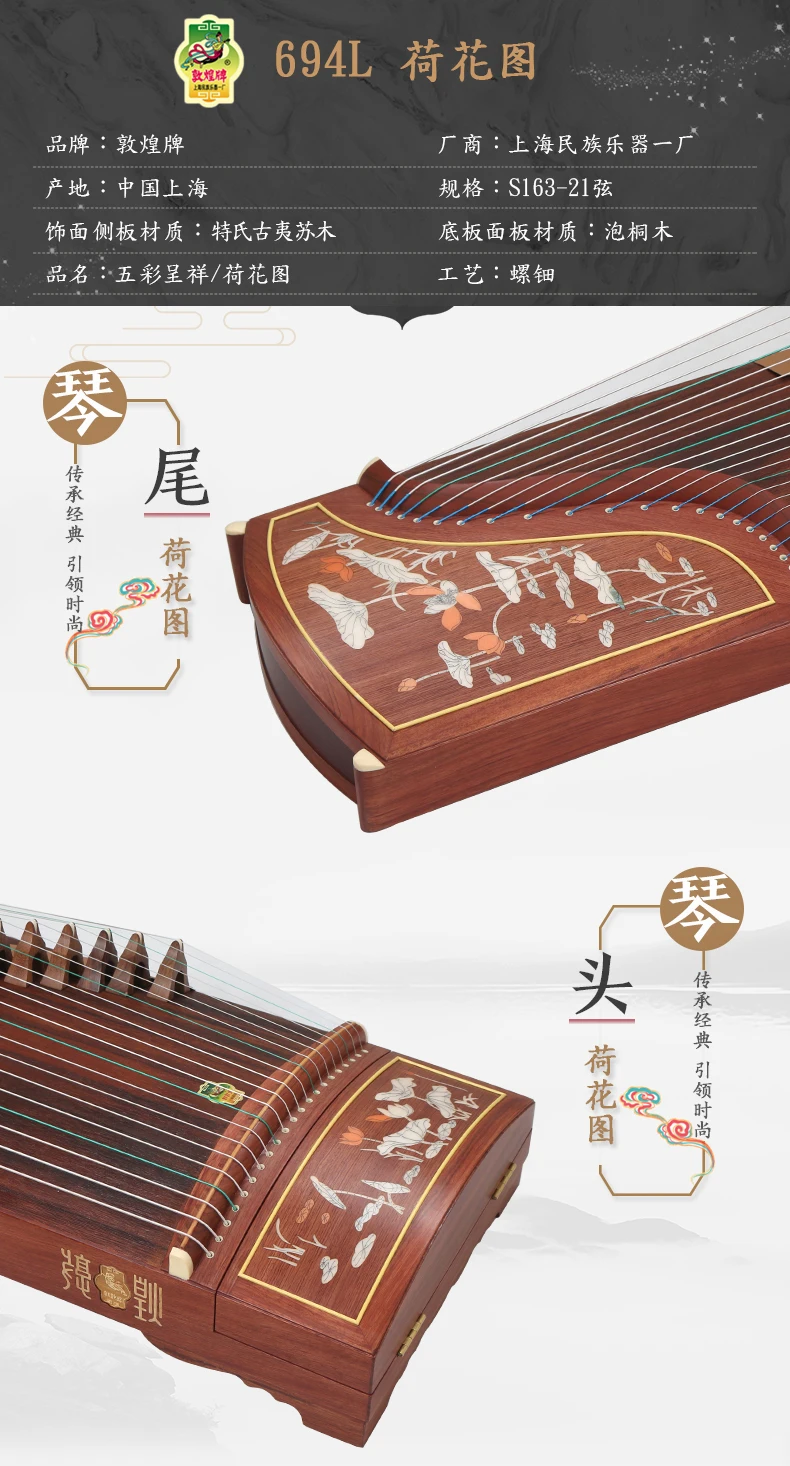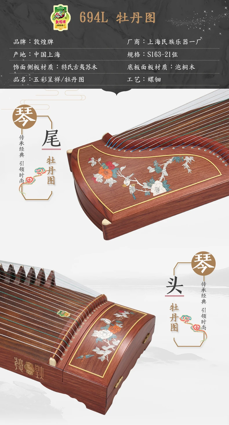 DunHuang GuZheng 694L Chinese 21 strings Musical Instrument Zither 5 pattern High Quality Zither