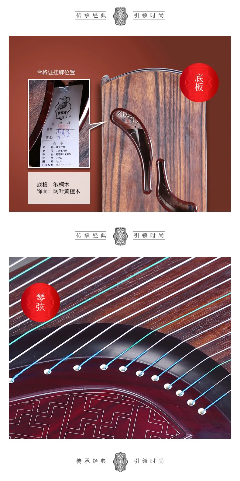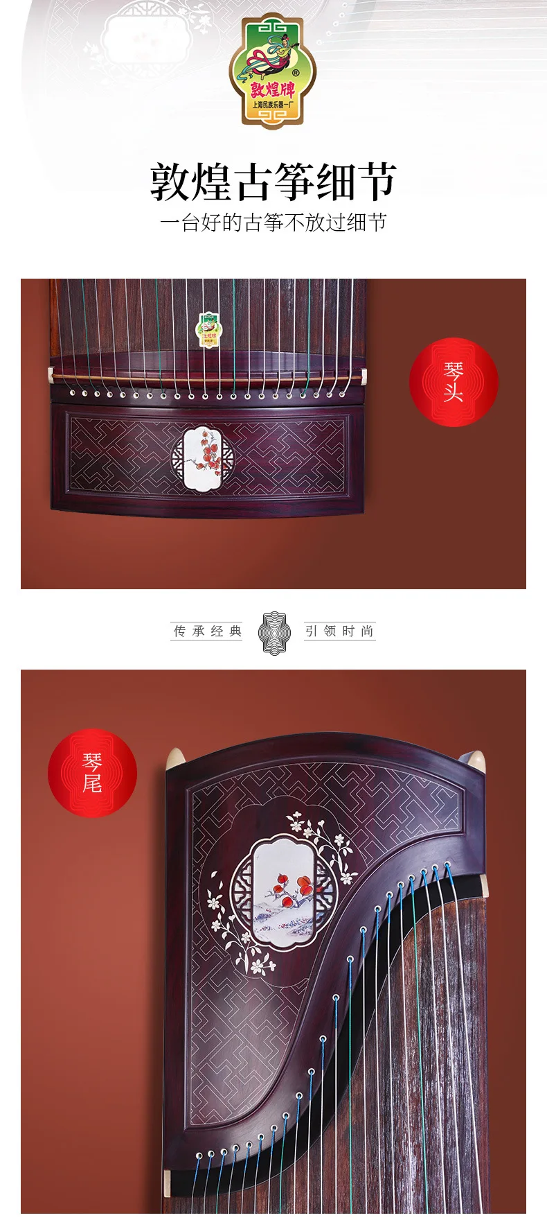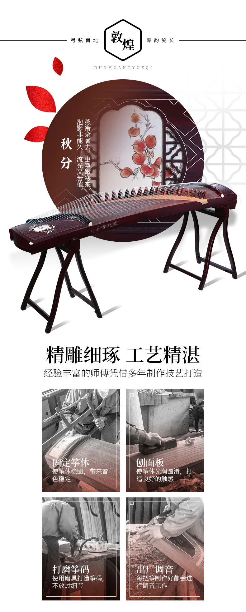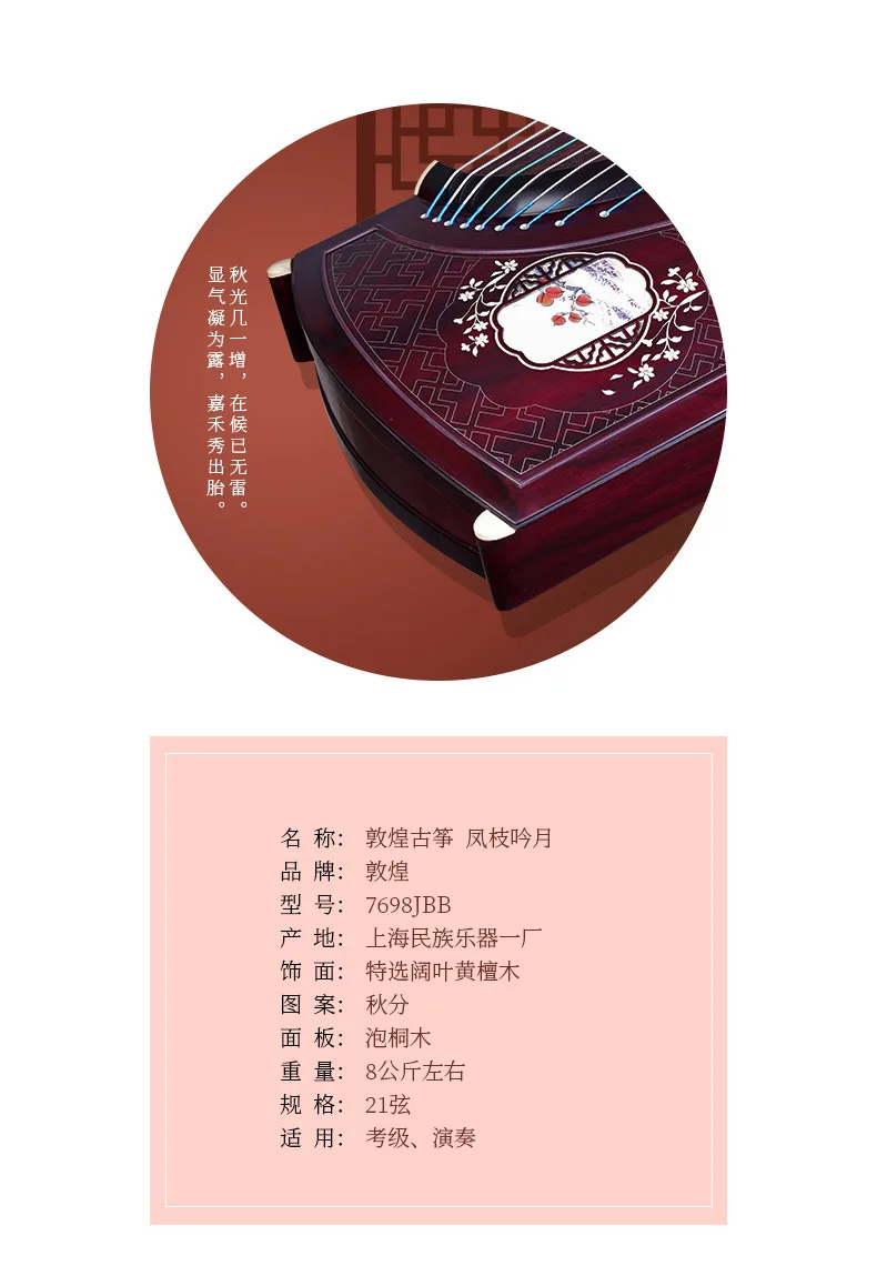 Dunhuang Guzheng 7698JBB Leaved Yellow Sandalwood Autumnal Equinox Pattern Professional Performance Zither Musical Instruments