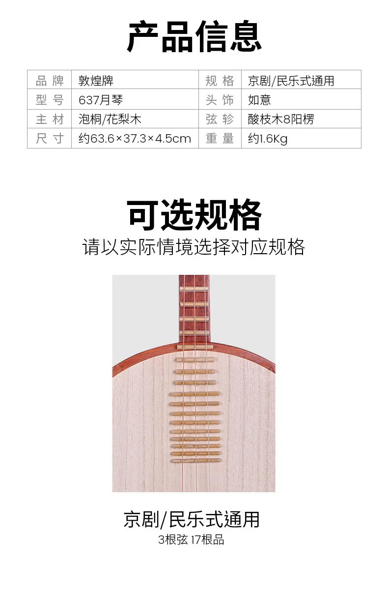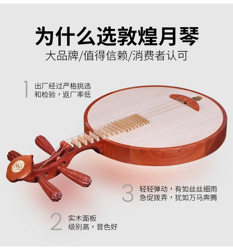 Dunhuang Yueqin 637 Peking Opera/Folk Music General Rosewood 8 Yang Leng Pegs Ruyi Head Beginner Folk Musical Instruments