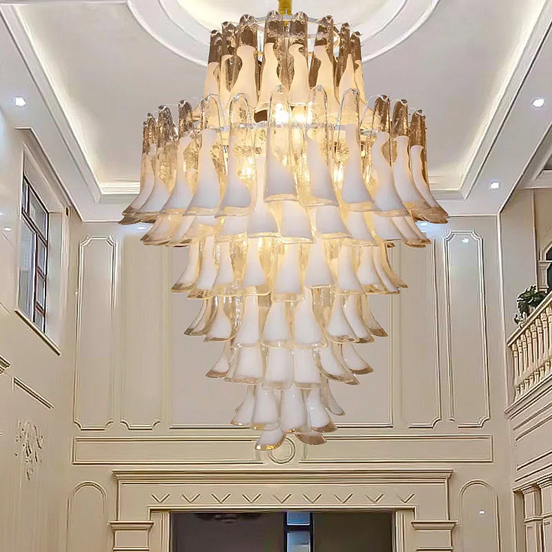 Duplex building glass villa living room lamp light luxury postmodern minimalist hall staircase long chandelier