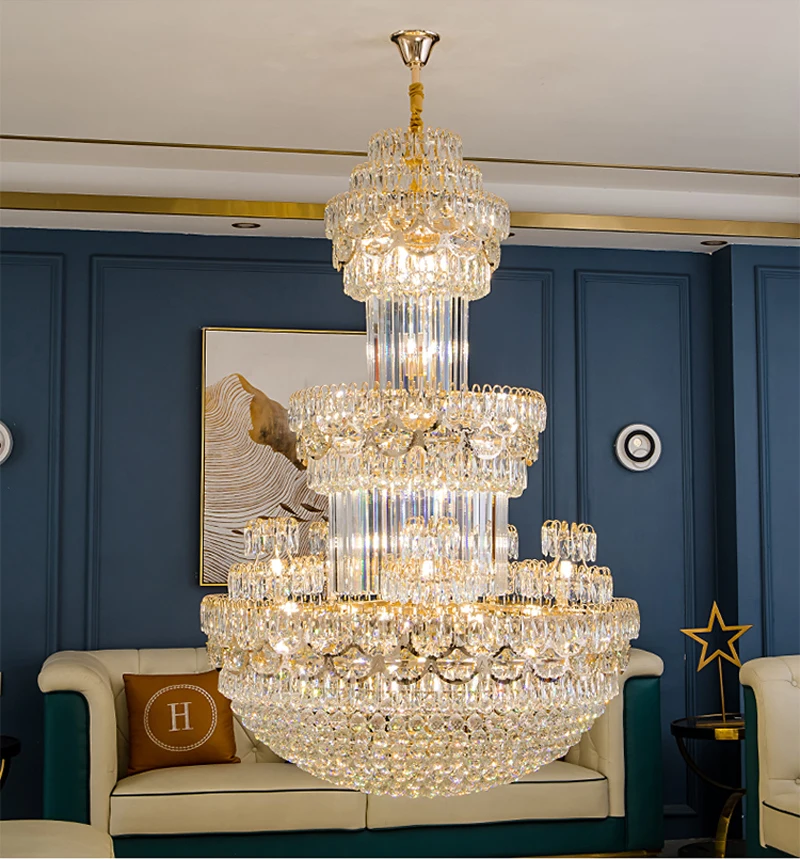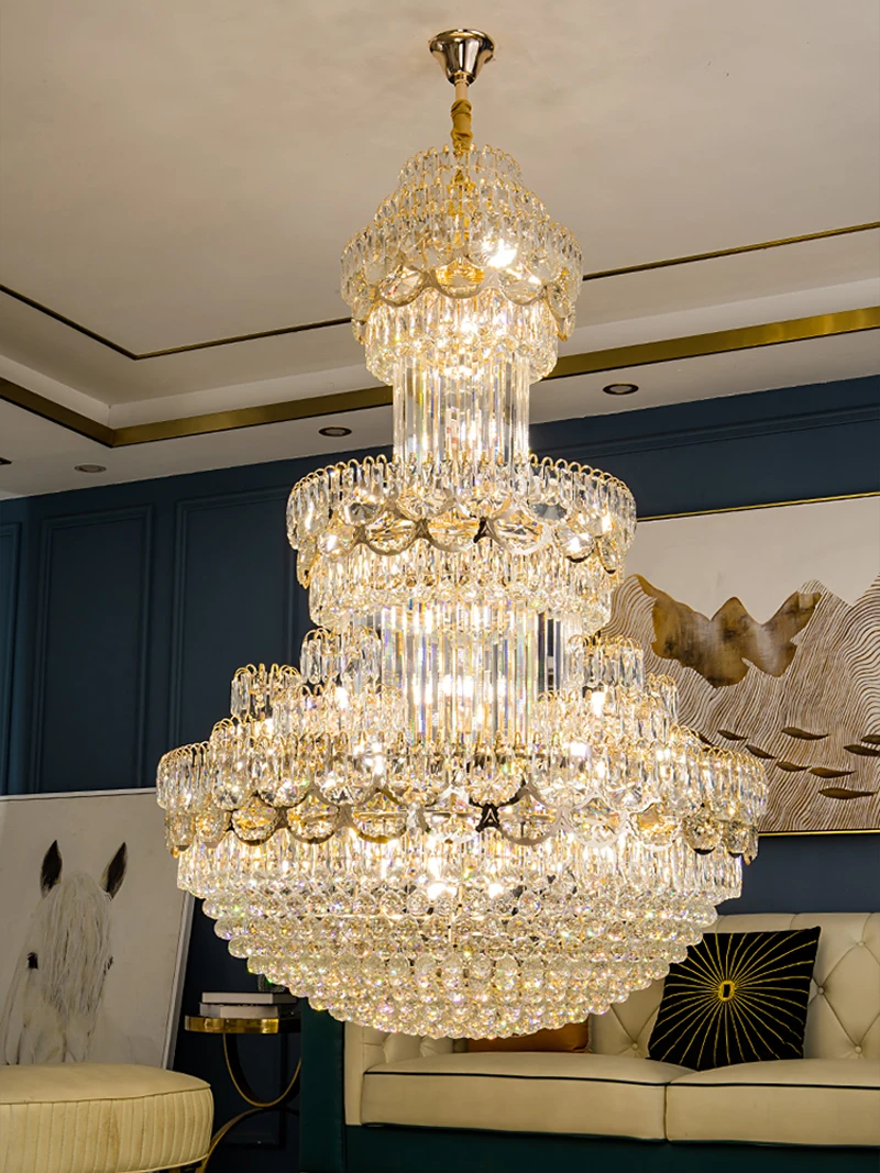 Duplex Building Large Chandelier Living Room Lamp Villa Leaping Middle Floor Hotel Lobby Post-modern Luxury Crystal Lighting