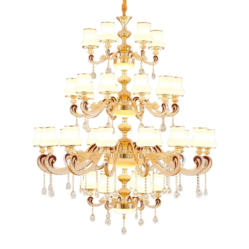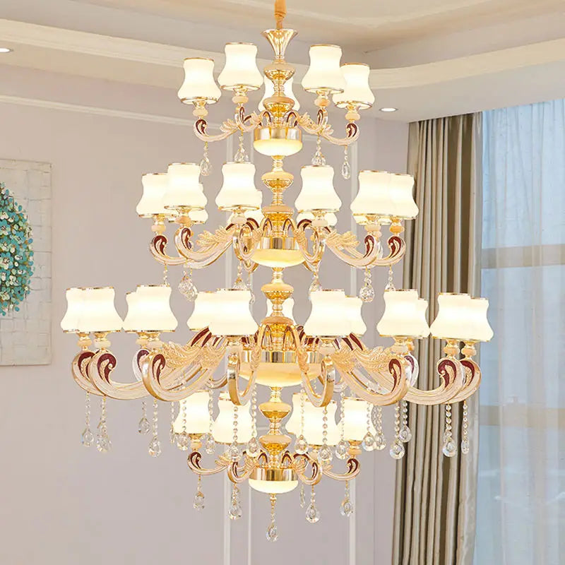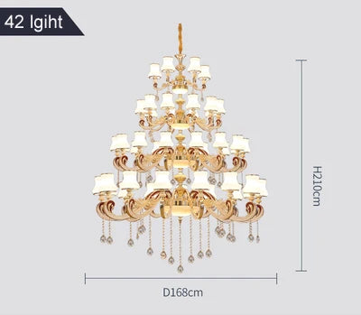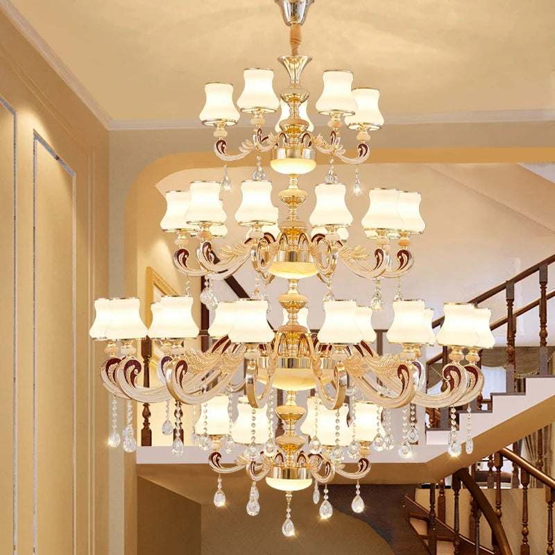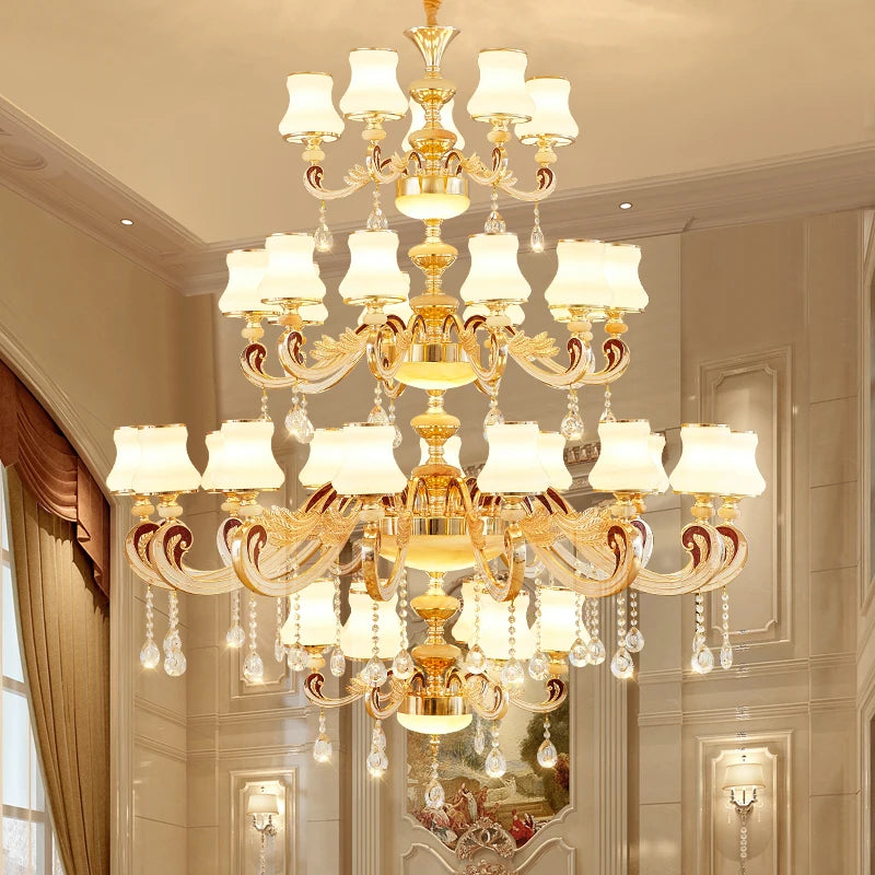 Duplex Building Large Chandelier Modern Villa Living Room Jade Chandelier Light Hotel Lobby Stair Long Gold Crystal Lamp Nordic