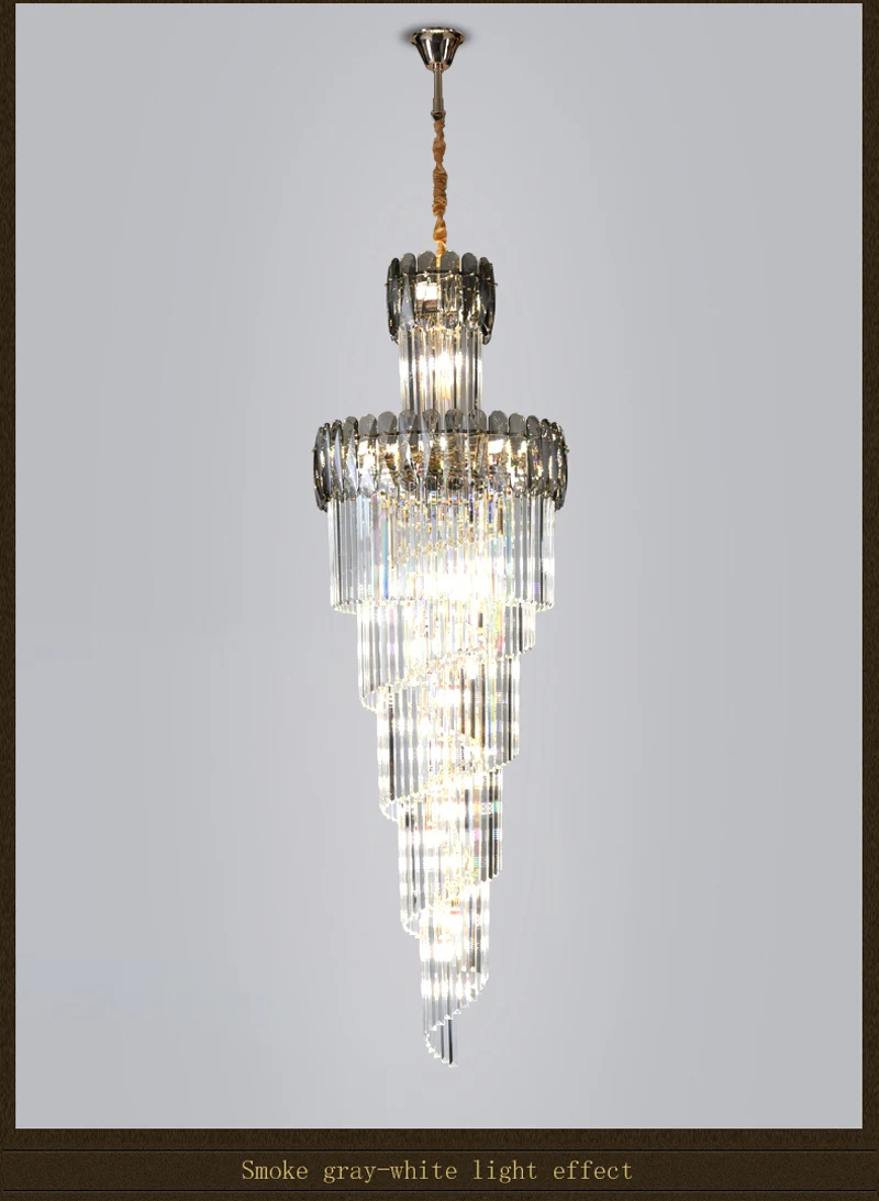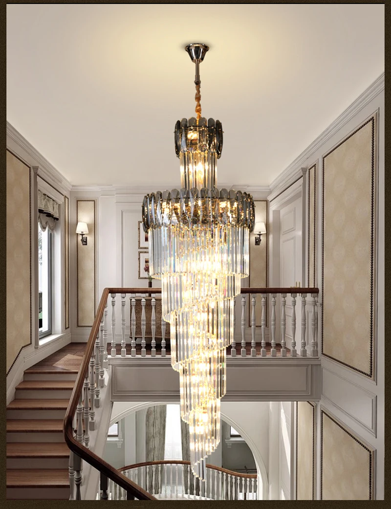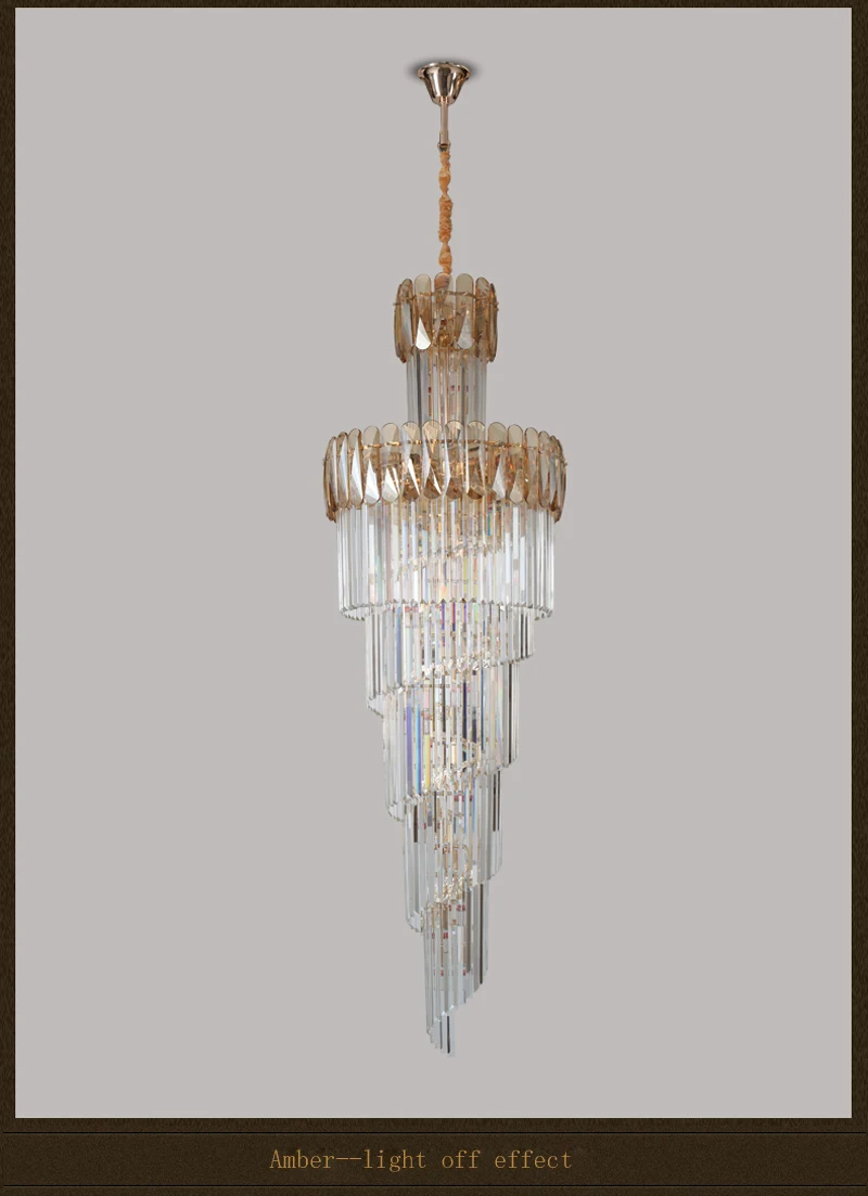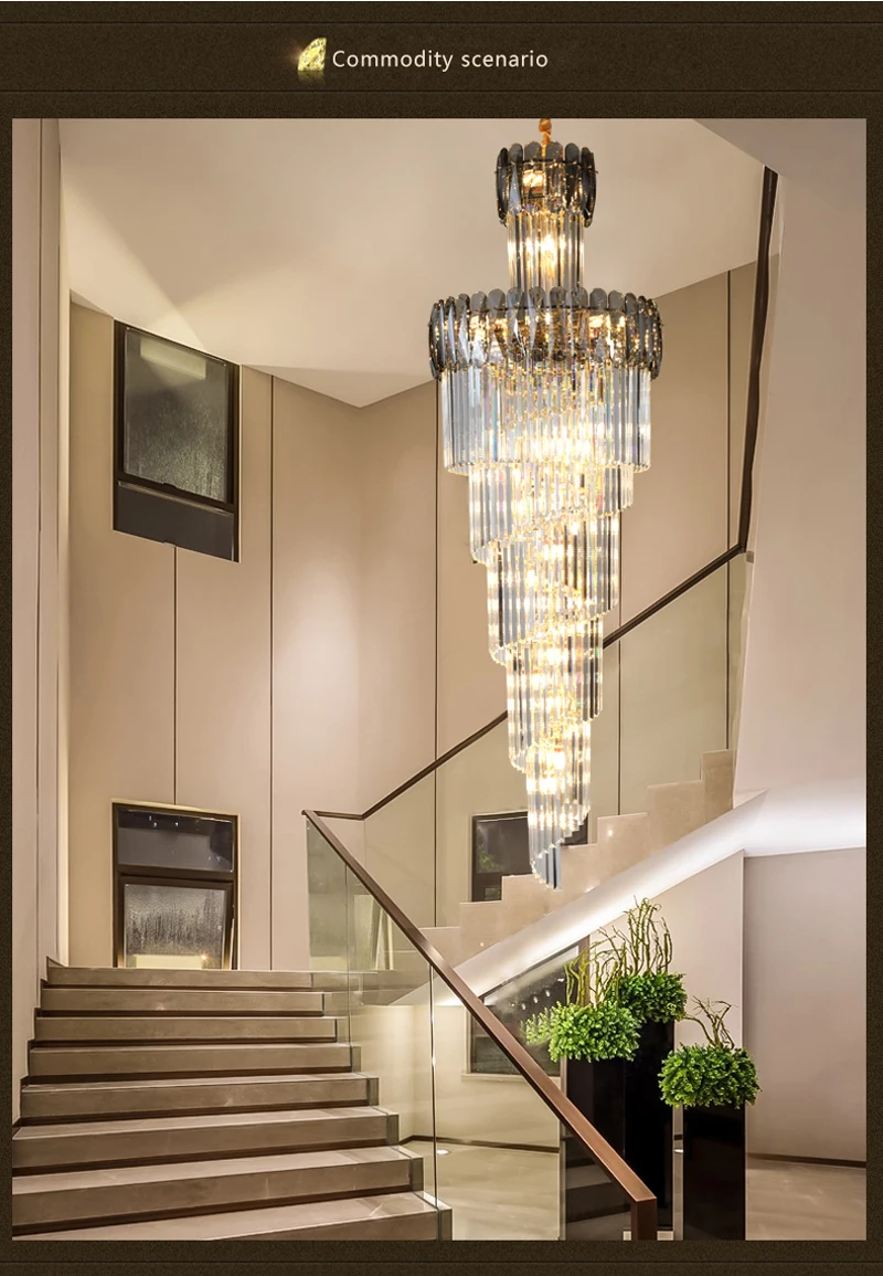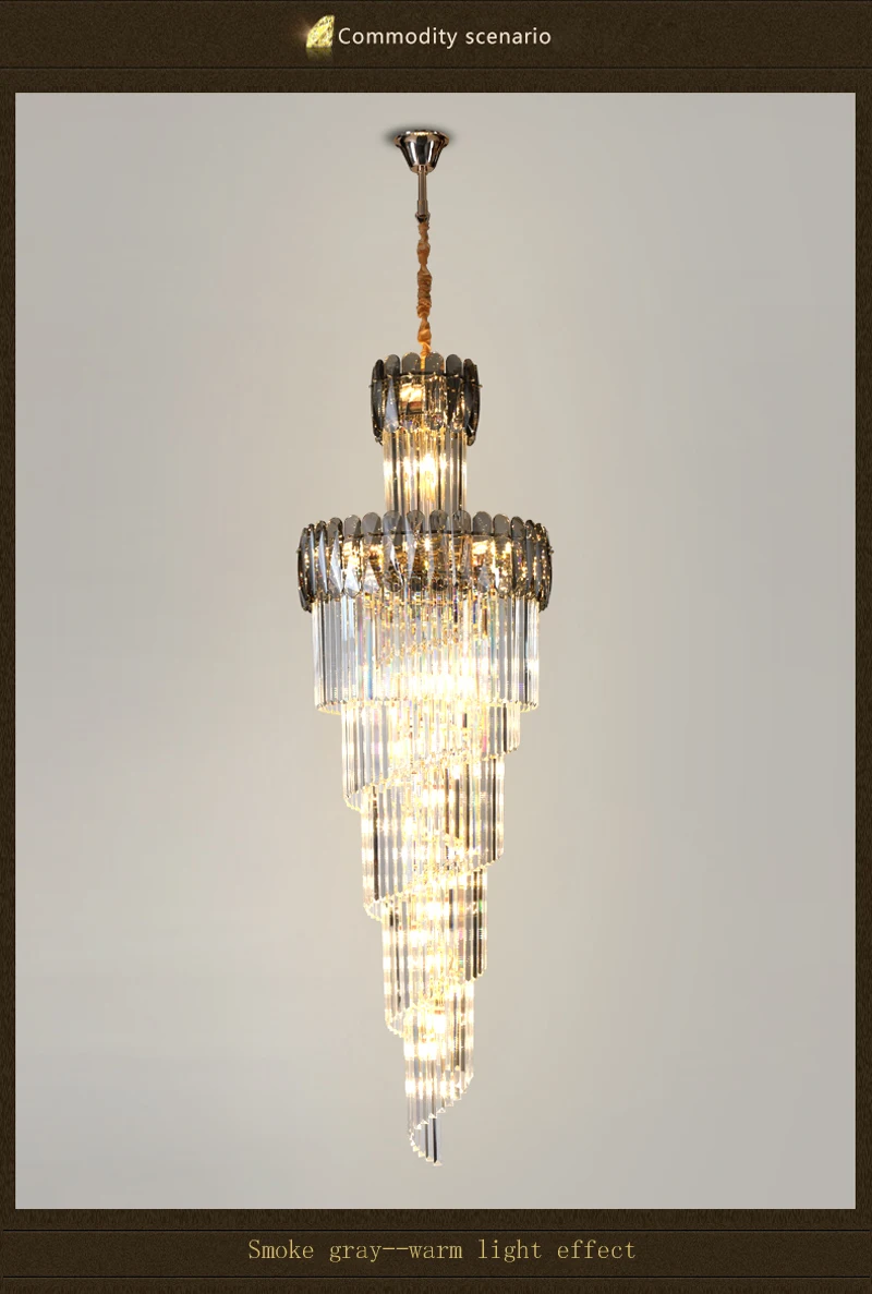 Duplex Building Large Crystal Chandelier Lighting Villa Staircase Long Chandelier Modern Hotel Dining Room Crystal Hanging Lamps
