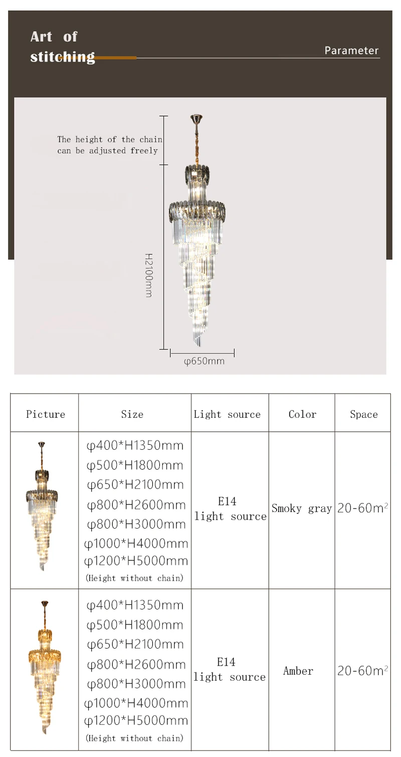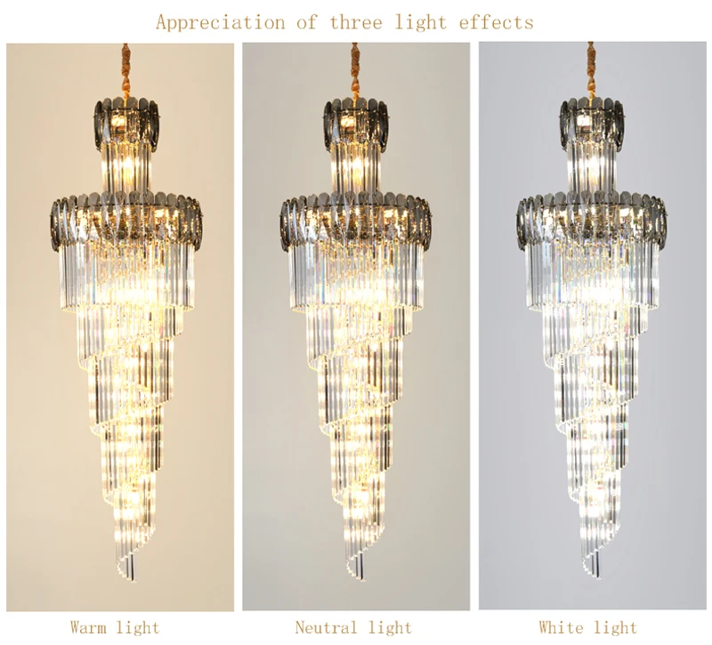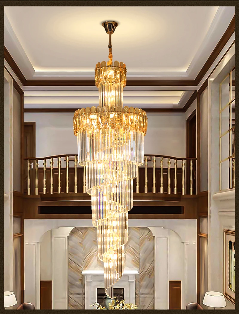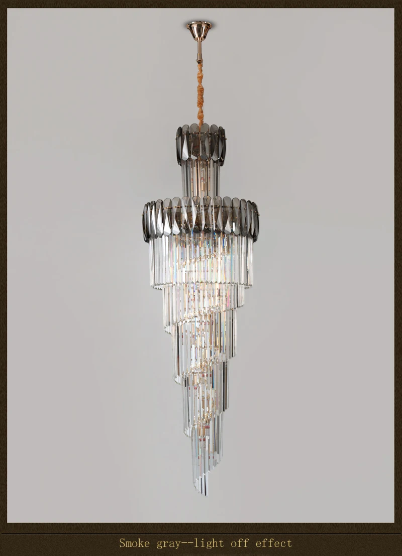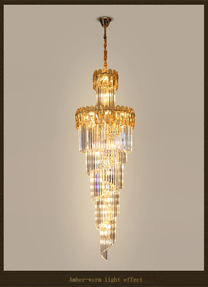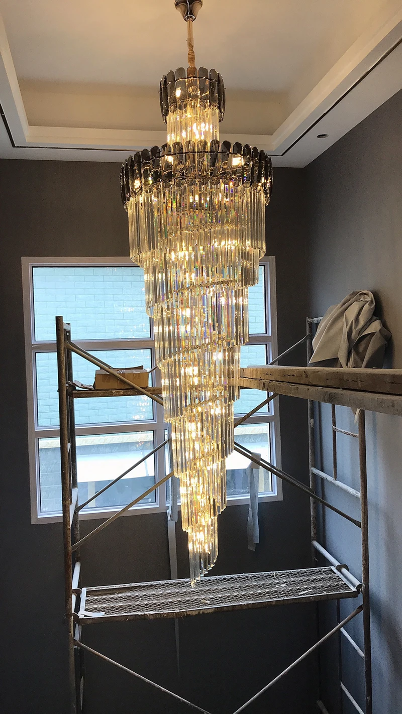 Duplex Building Large Crystal Chandelier Lighting Villa Staircase Long Chandelier Modern Hotel Dining Room Crystal Hanging Lamps
