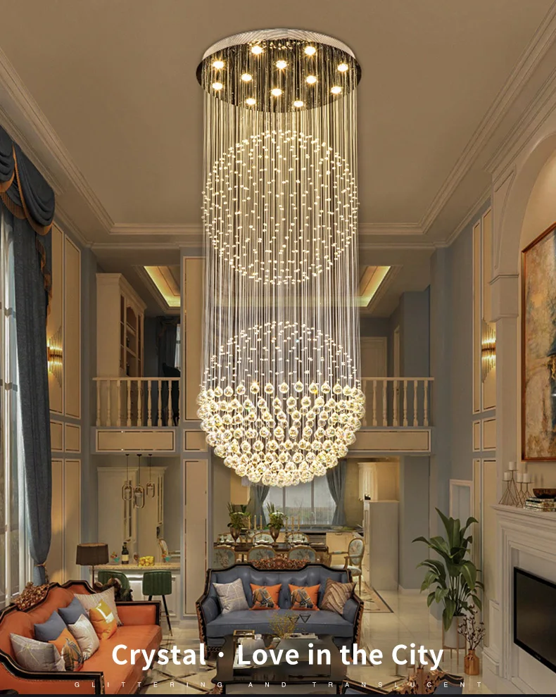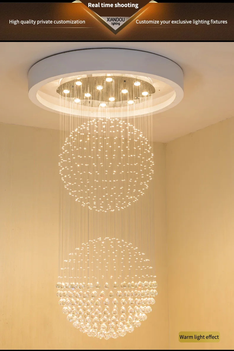 Duplex Staircase Chandelier Villa Building Middle Floor Living Room Chandelier Staircase Creative Dining Room Crystal Chandelier