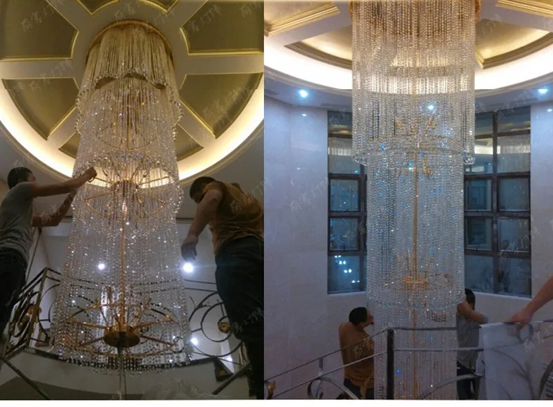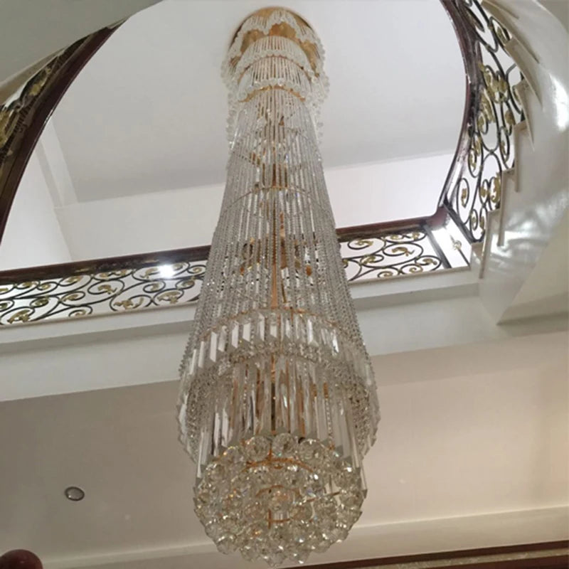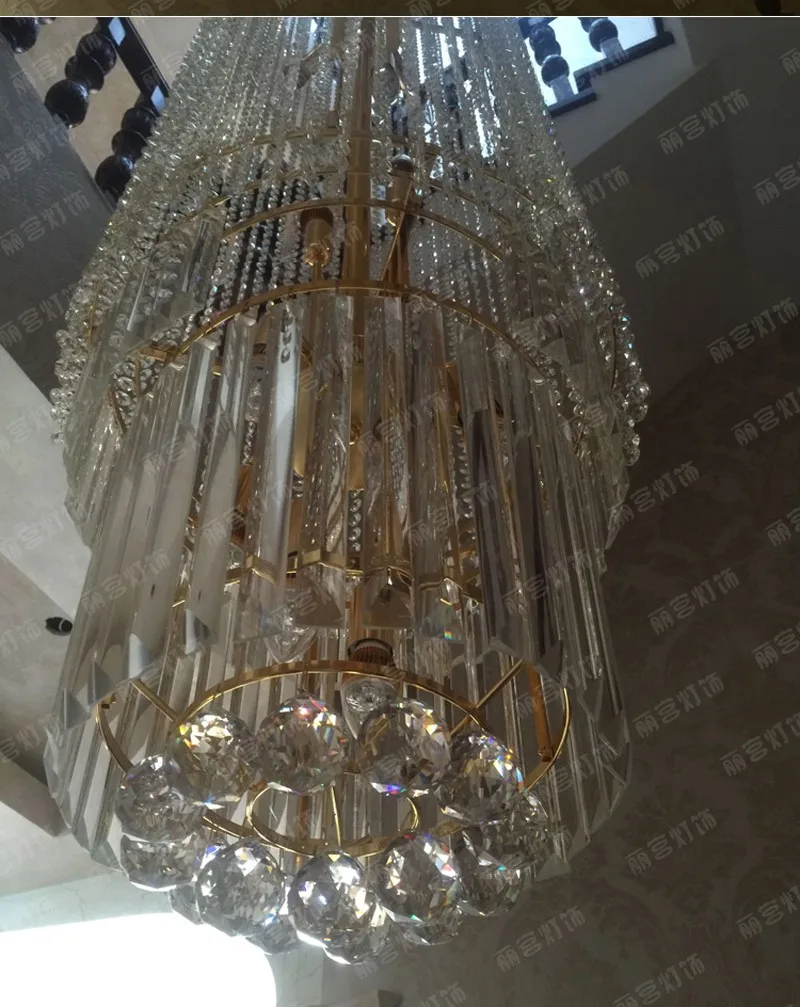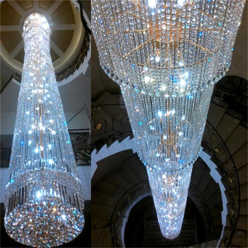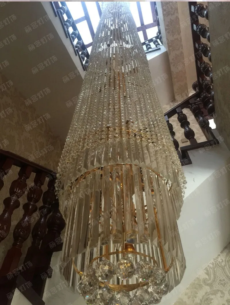 Duplex Villa Spiral Stair Chandelier Long Crystal Chandelier Lighting Modern Living Room Luxury Large Commercial Building Light