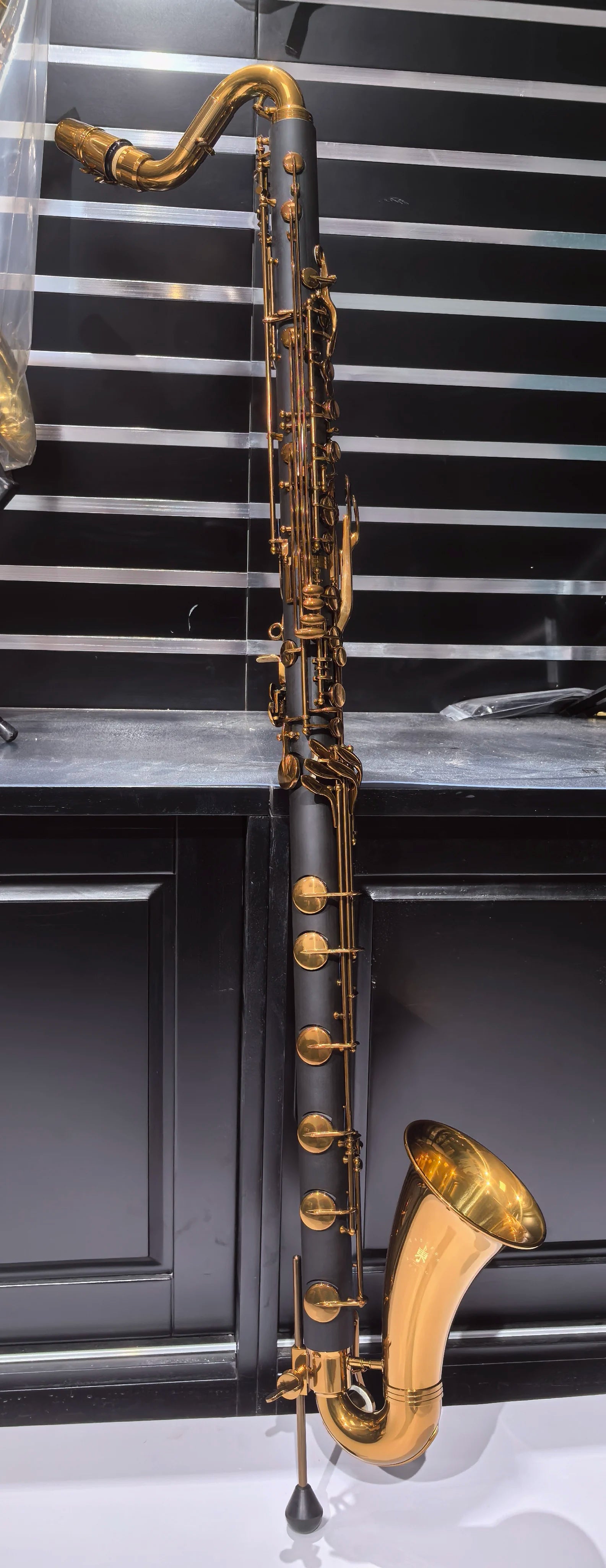 Eastern music B flat hard rubber bass clarinet Low C with vintage lacquered keys